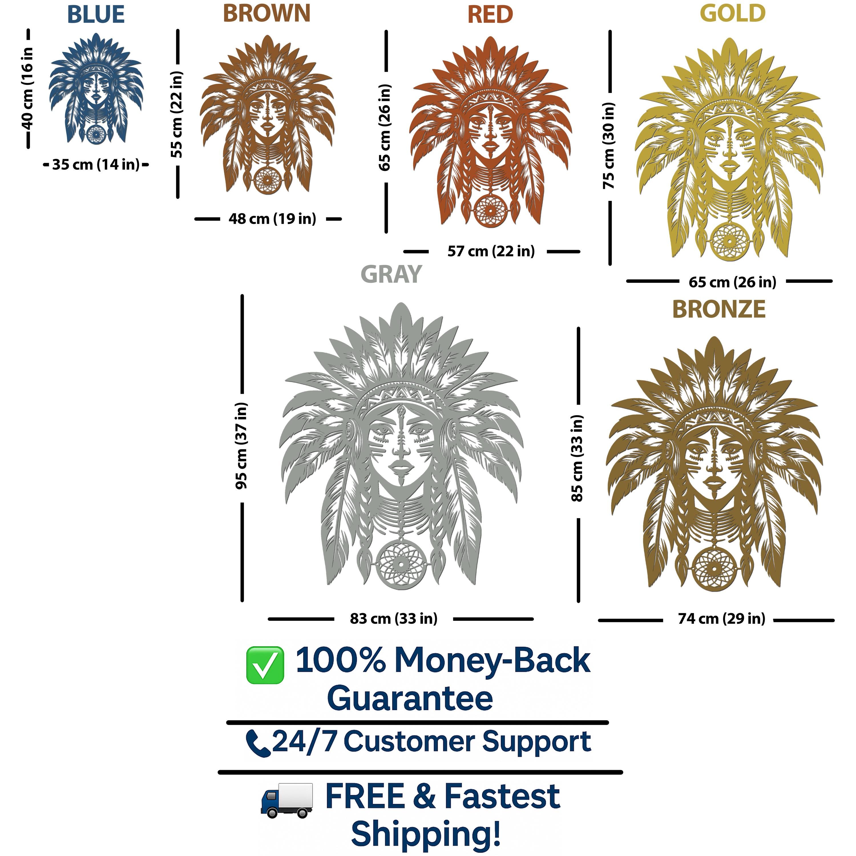 Female Tribe Chief Metal Wall Art Indian Woman With Warbonnet Wall Decor Indian Headdress War Bonnet Art Living Room Wall Art Bedroom Decor
