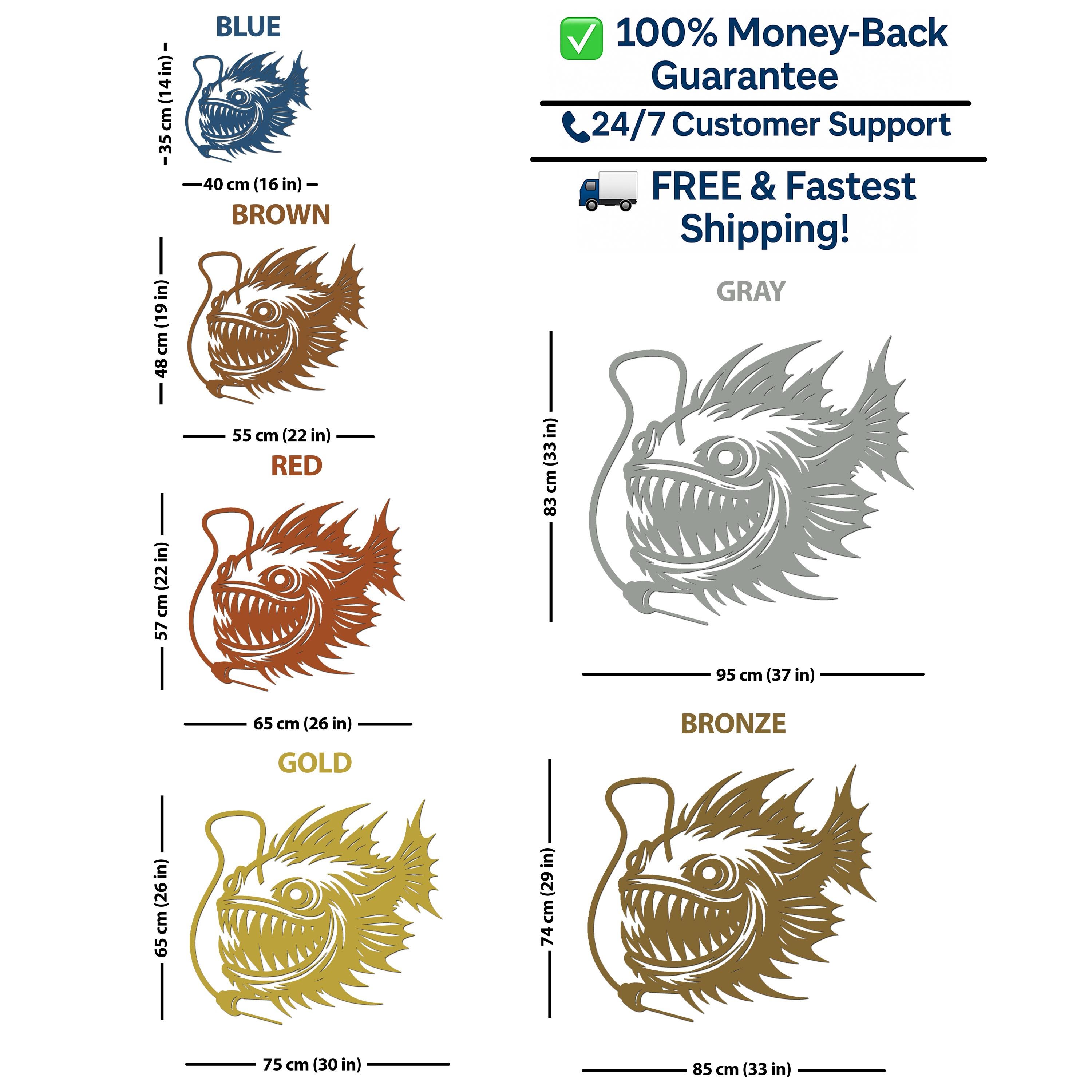 Anglerfish Metal Wall Art: Deep Sea Fish Wall Decor
