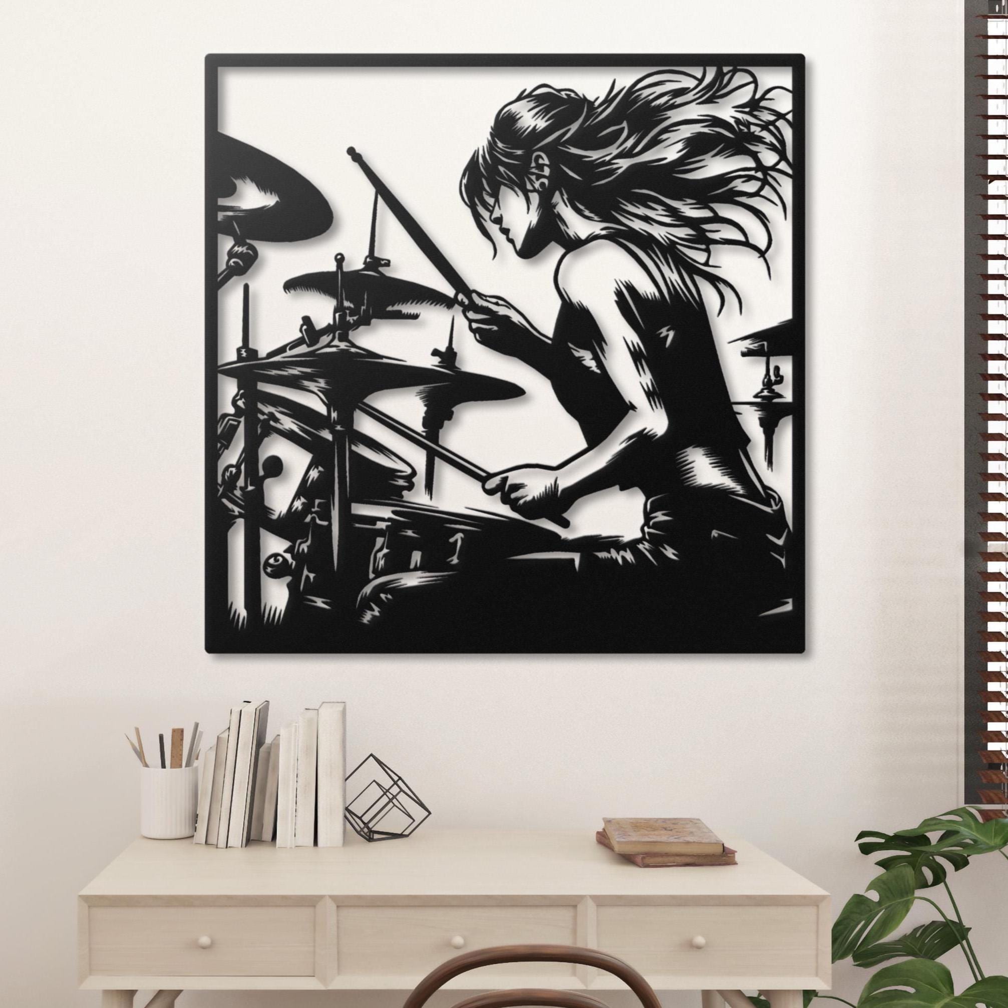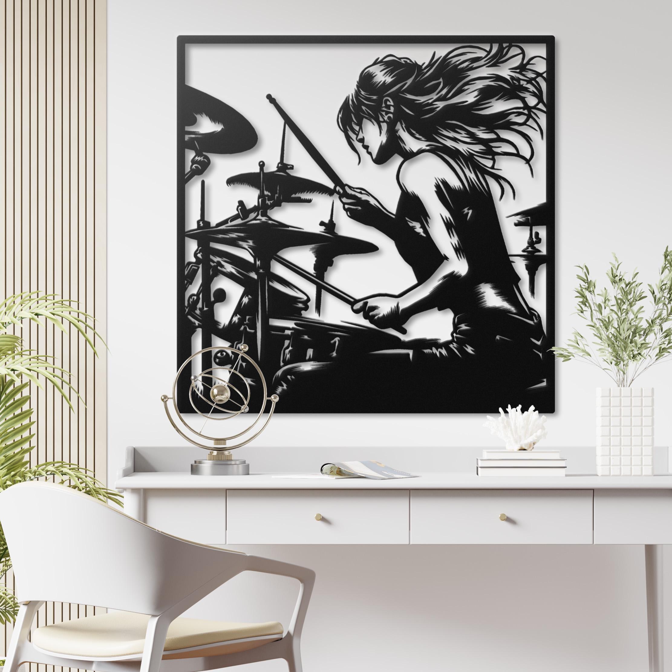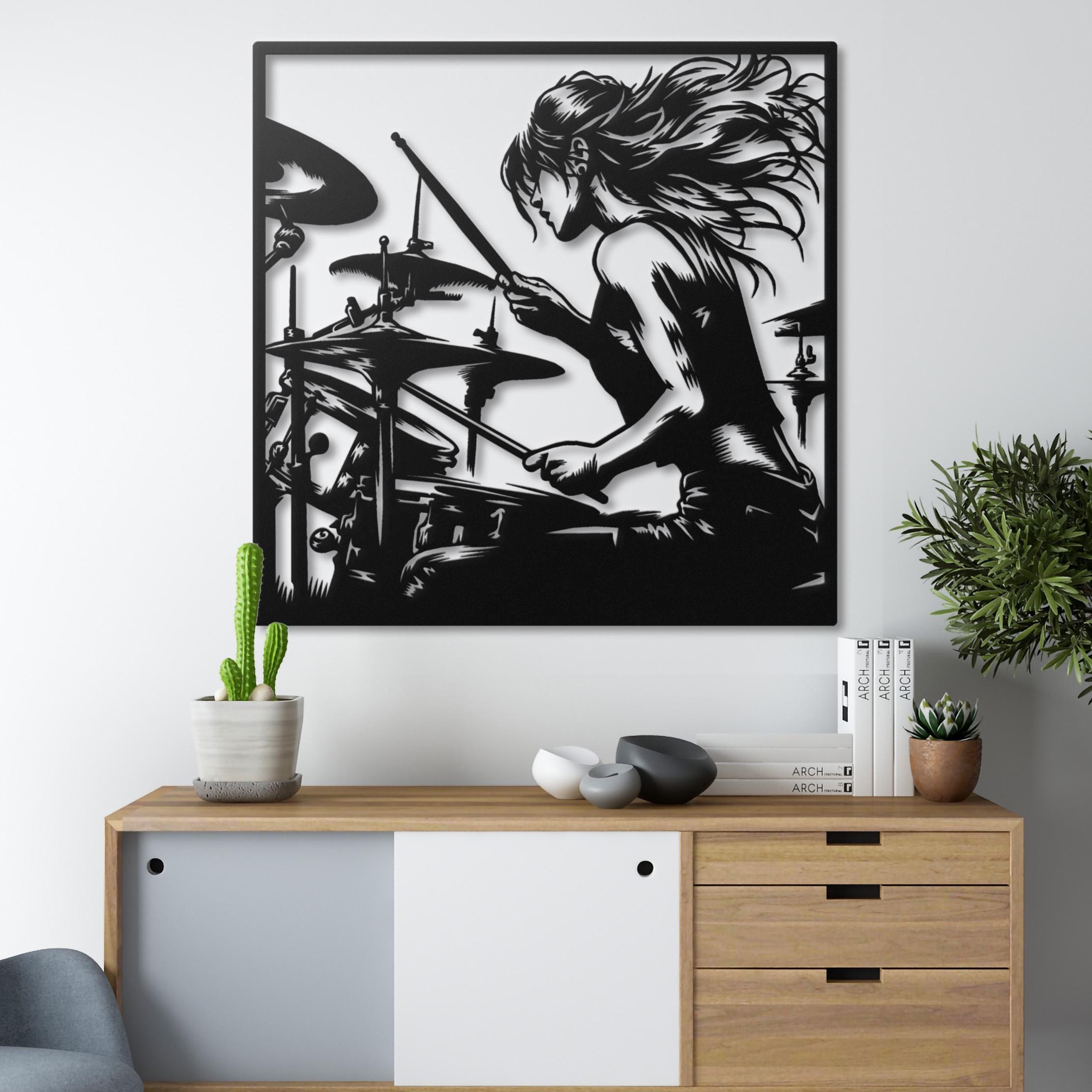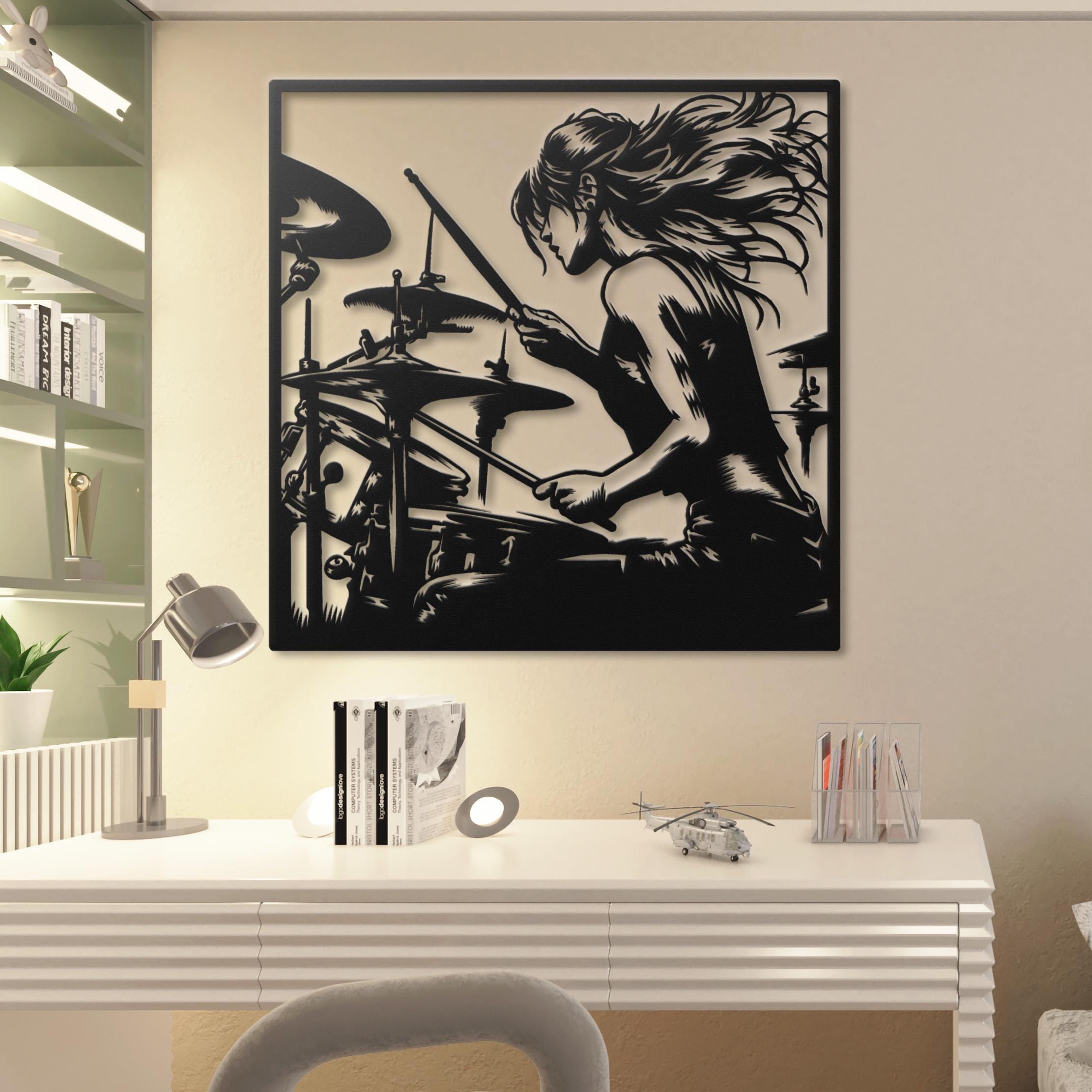 Female Drummer Metal Wall Art for Music Enthusiasts