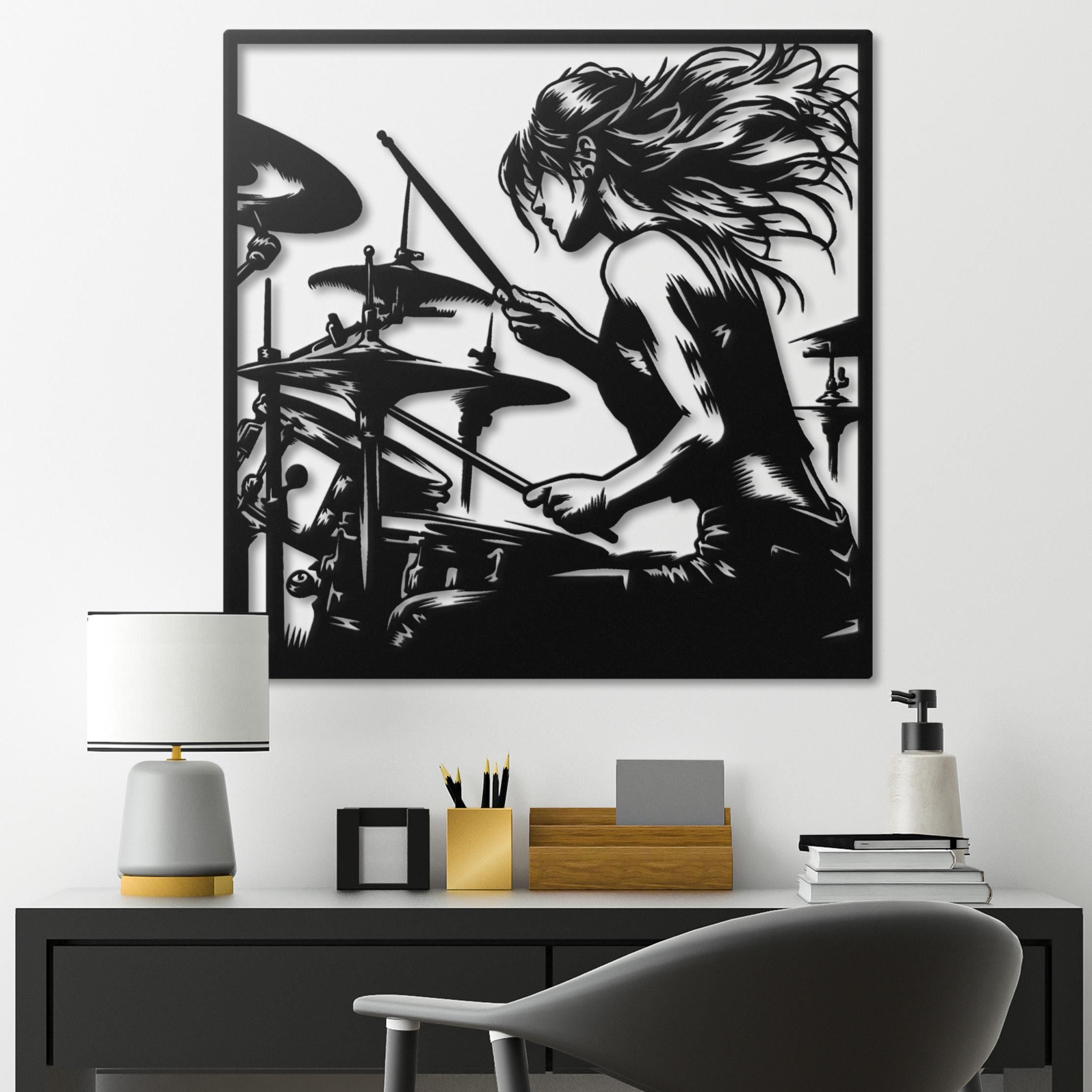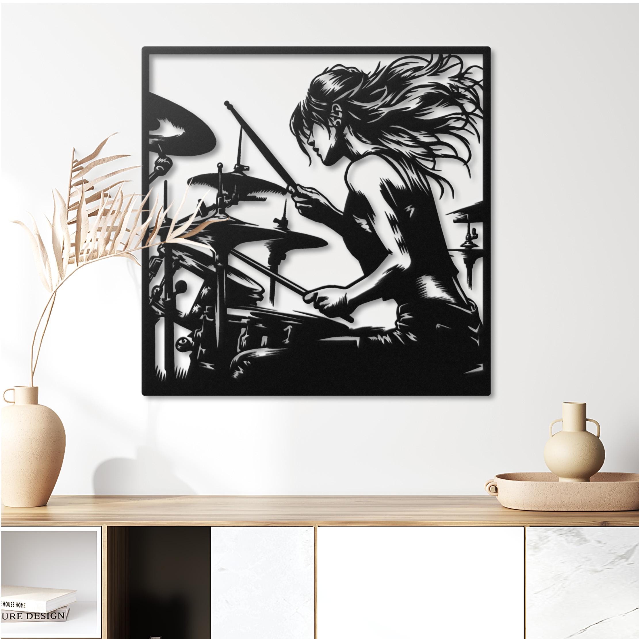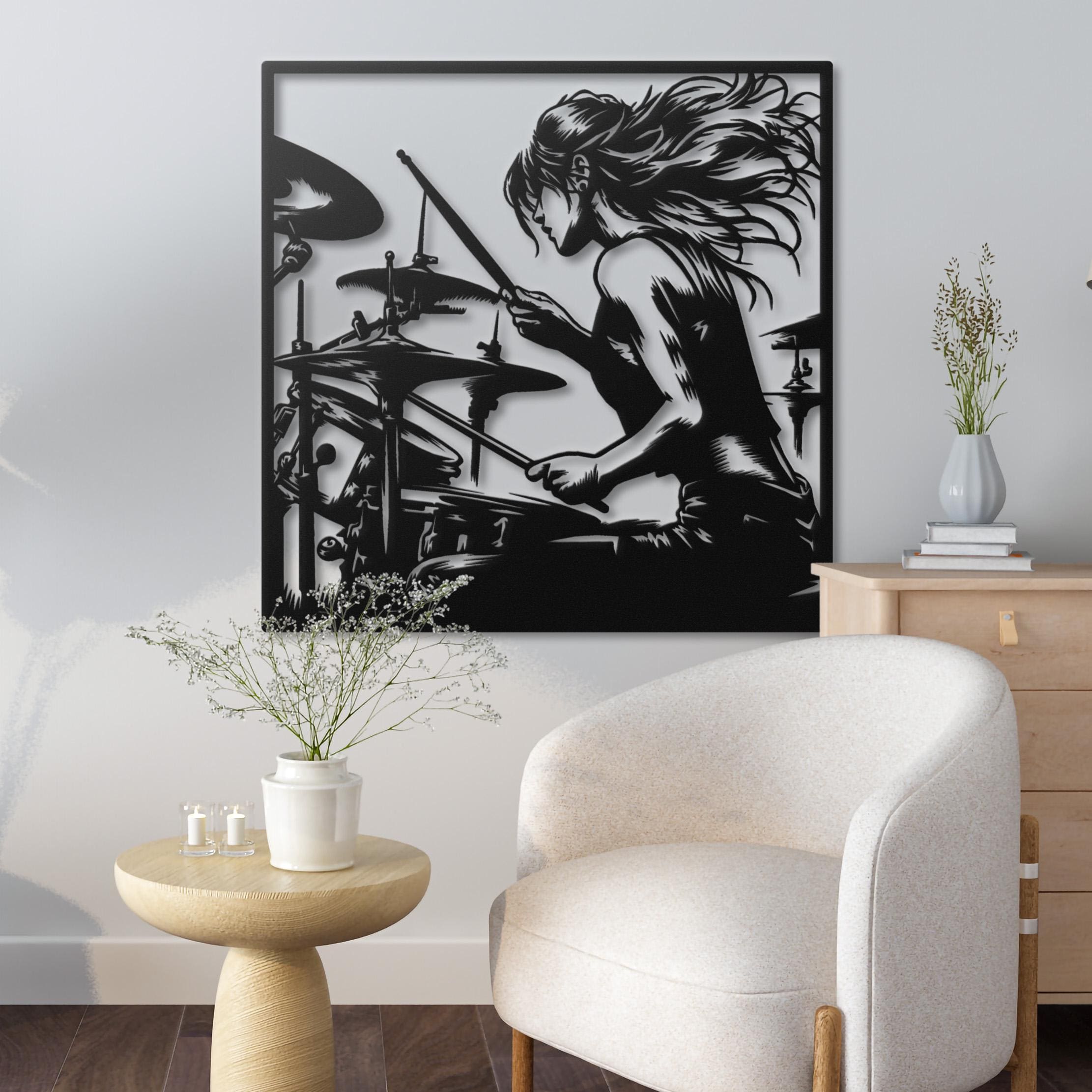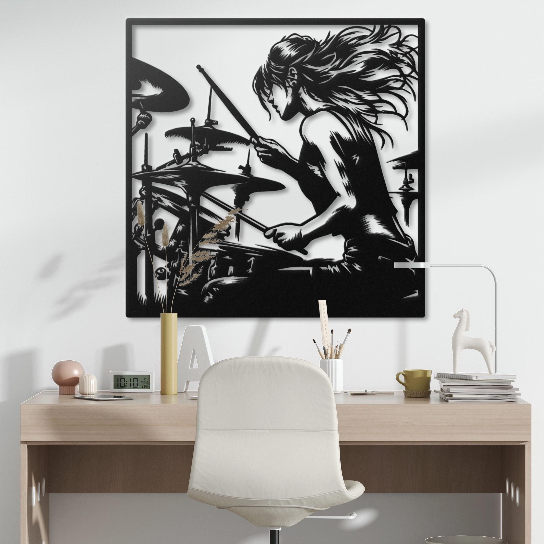 Female Drummer Metal Wall Art for Music Enthusiasts