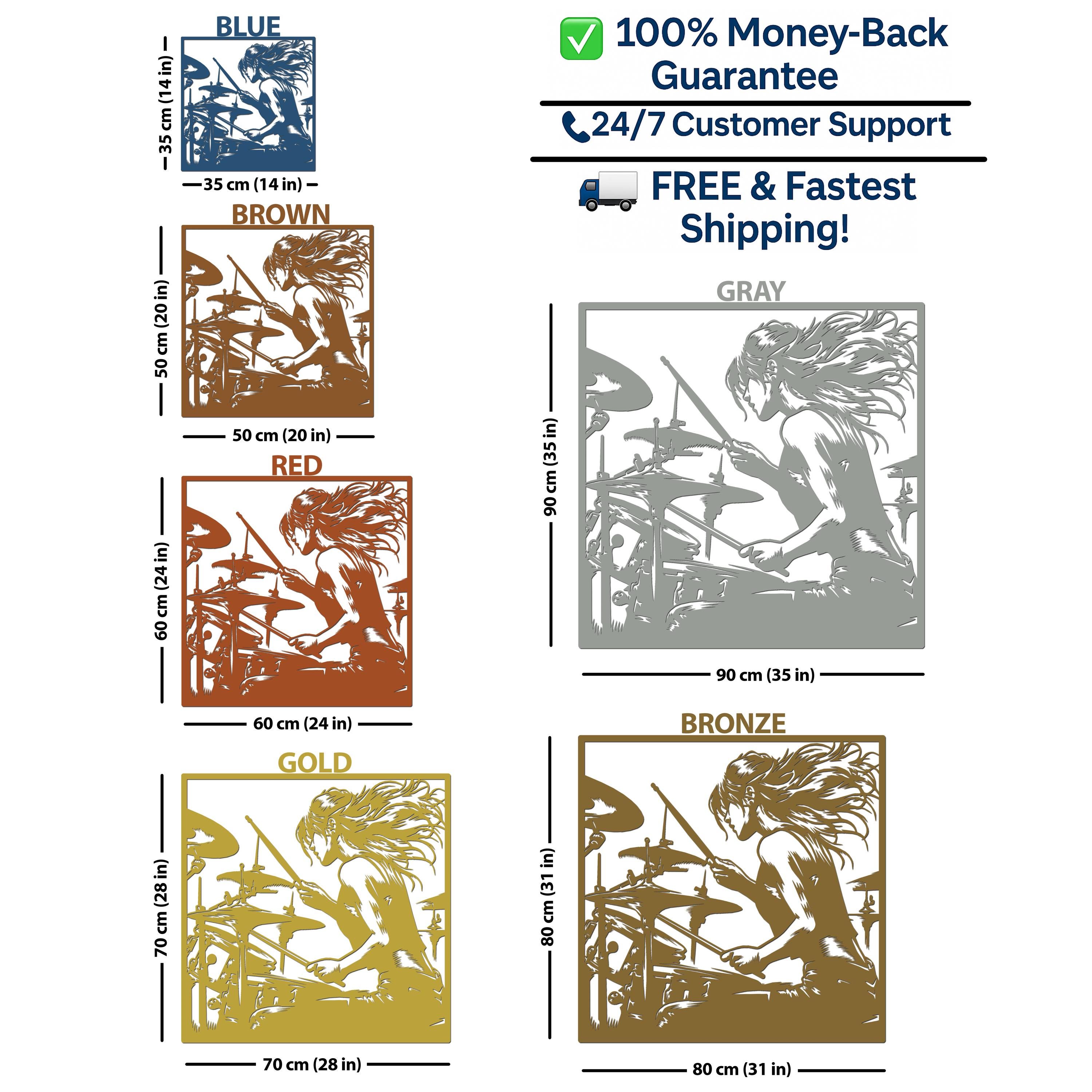 Introducing our stunning female drummer metal wall art! Add a touch of rhythmic energy and powerful vibes to your space with this captivating piece. Crafted with meticulous attention to detail, this artwork showcases a talented female drummer in action, encapsulating the essence of strength and passion. Made from high-quality metal, this wall art is not only visually striking but also durable, ensuring it will adorn your walls for years to come. Whether you're a music lover, a devoted drummer, or simply someone who appreciates unique decor, this female drummer metal wall art will be the perfect addition to your home, studio, or office. Embrace the melody and embrace the artistry with this one-of-a-kind piece.