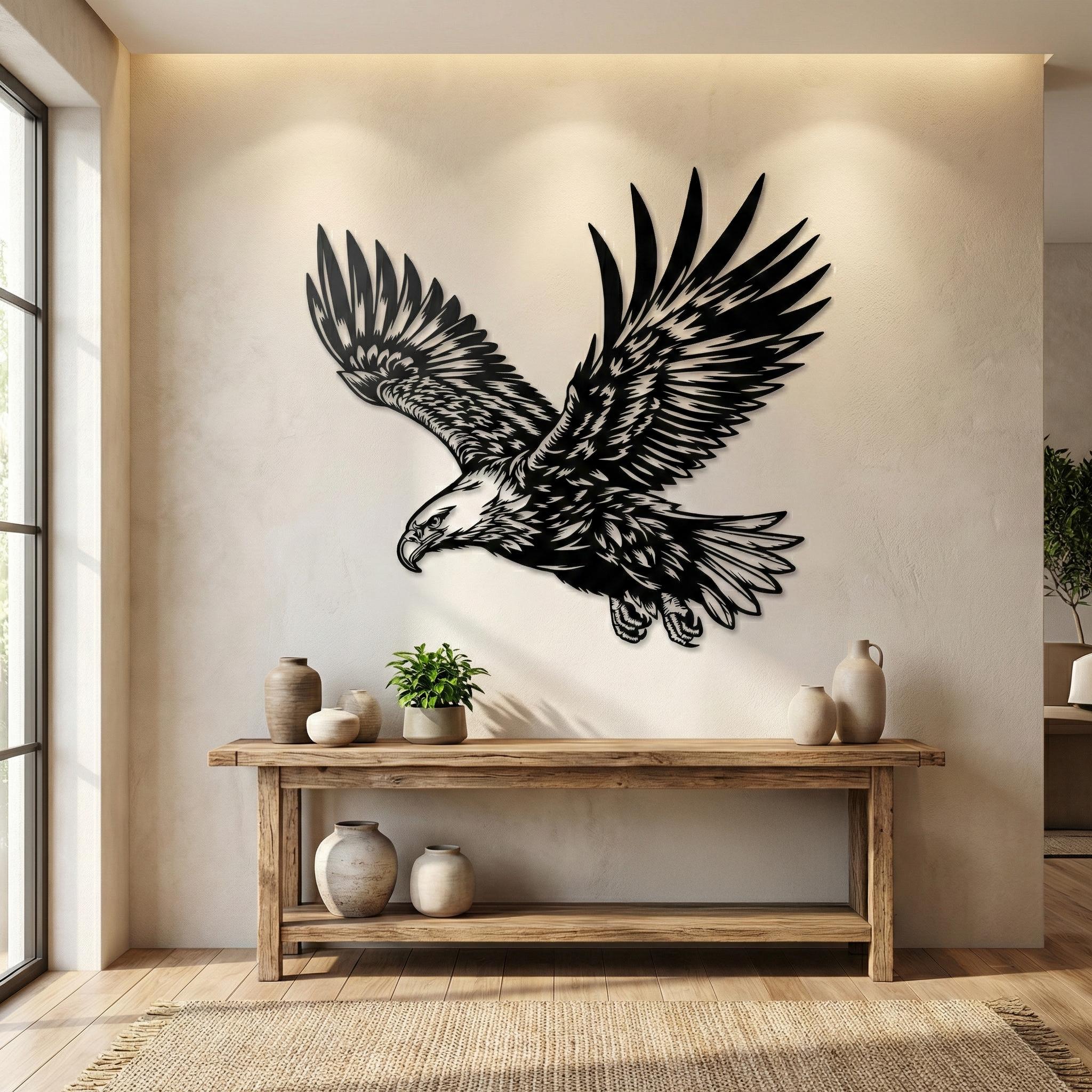 Elevate your space with the grandeur of the wild with "Wings of Glory," a breathtaking metal wall art piece that captures the essence of a majestic eagle in flight. π¦