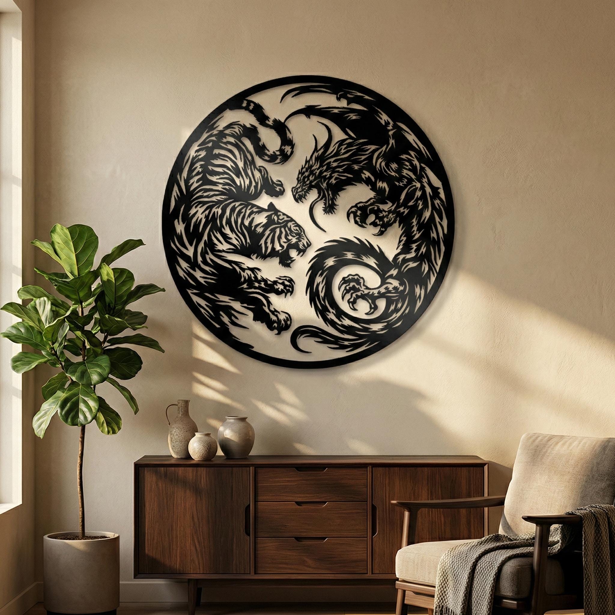 Yin Yang Tiger and Dragon Metal Wall Art, Feng Shui Decor
