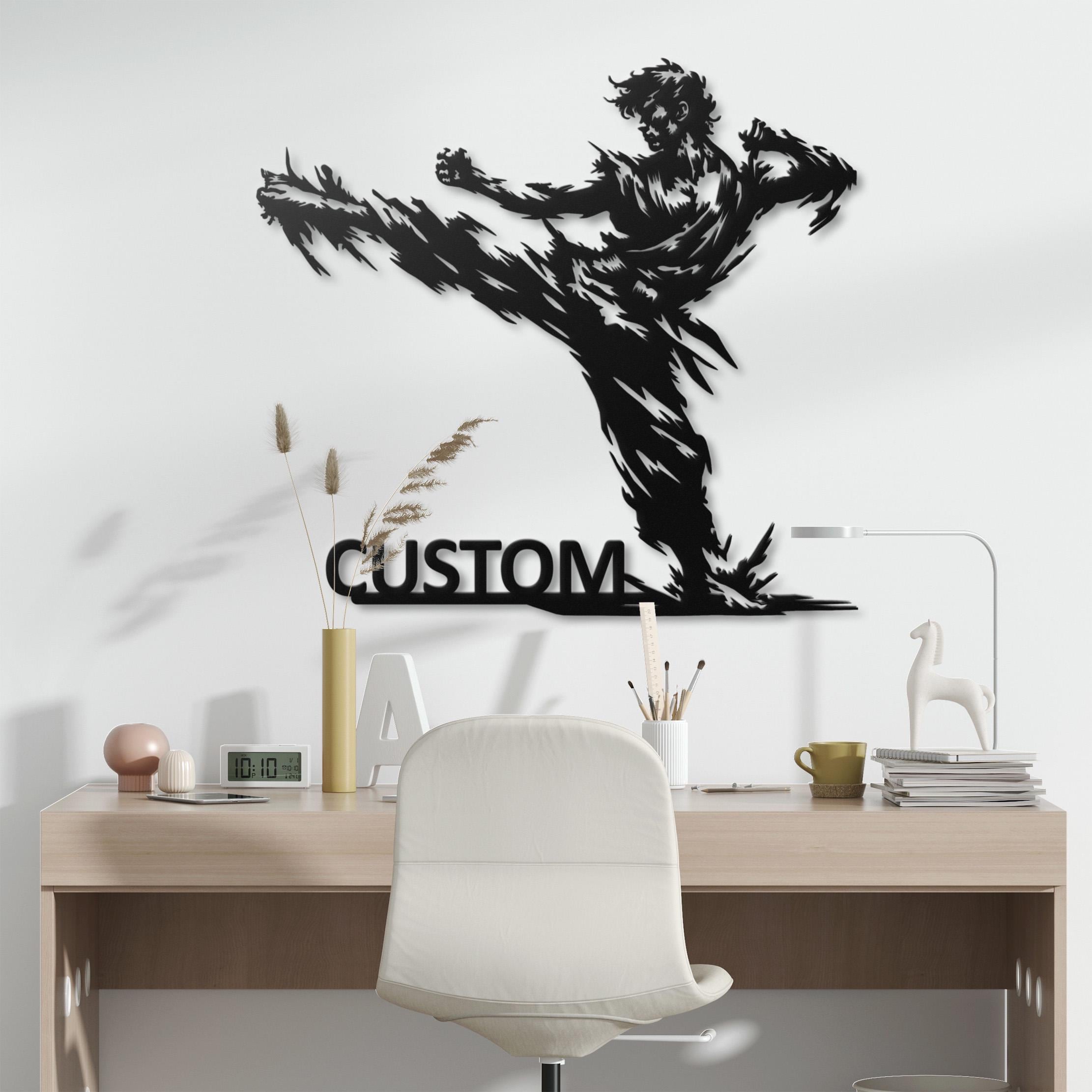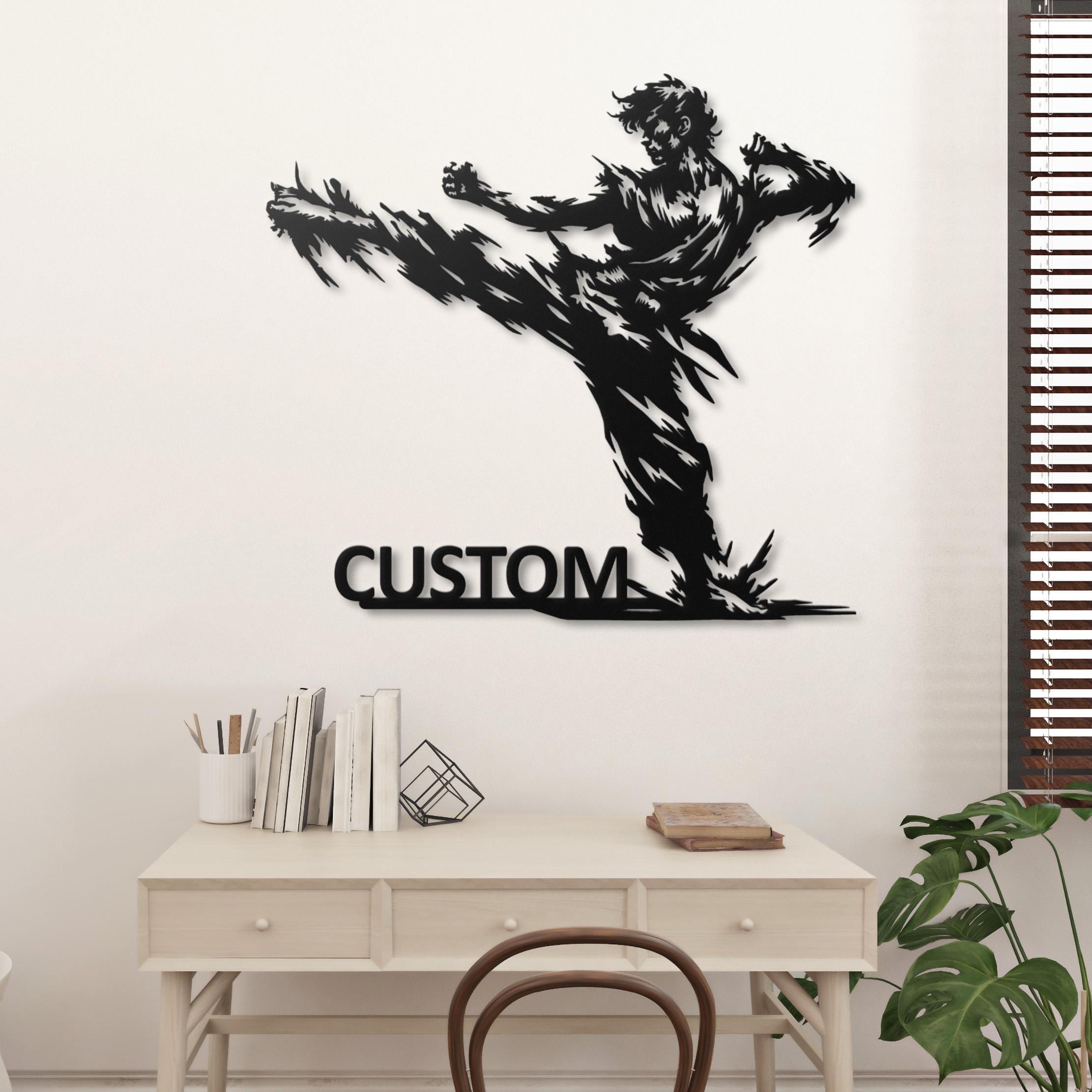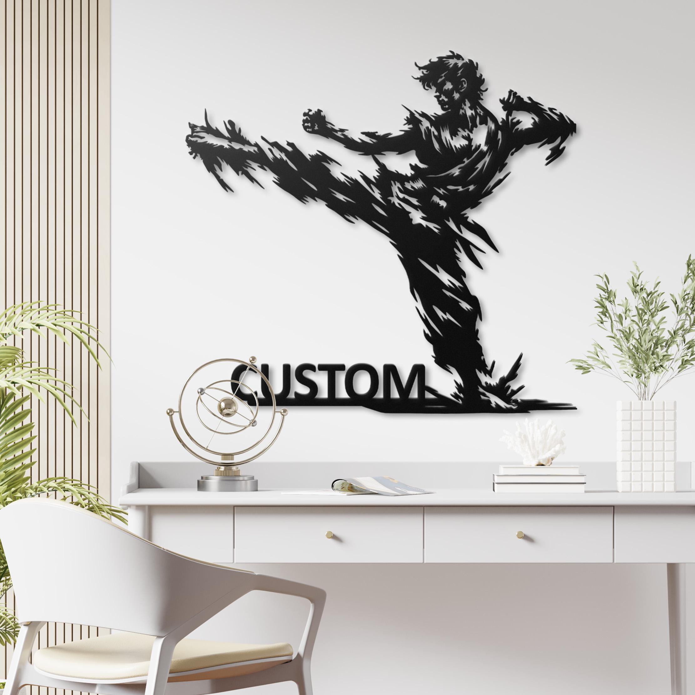 Karate Kick Metal Wall Art, Martial Arts Dojo Decor