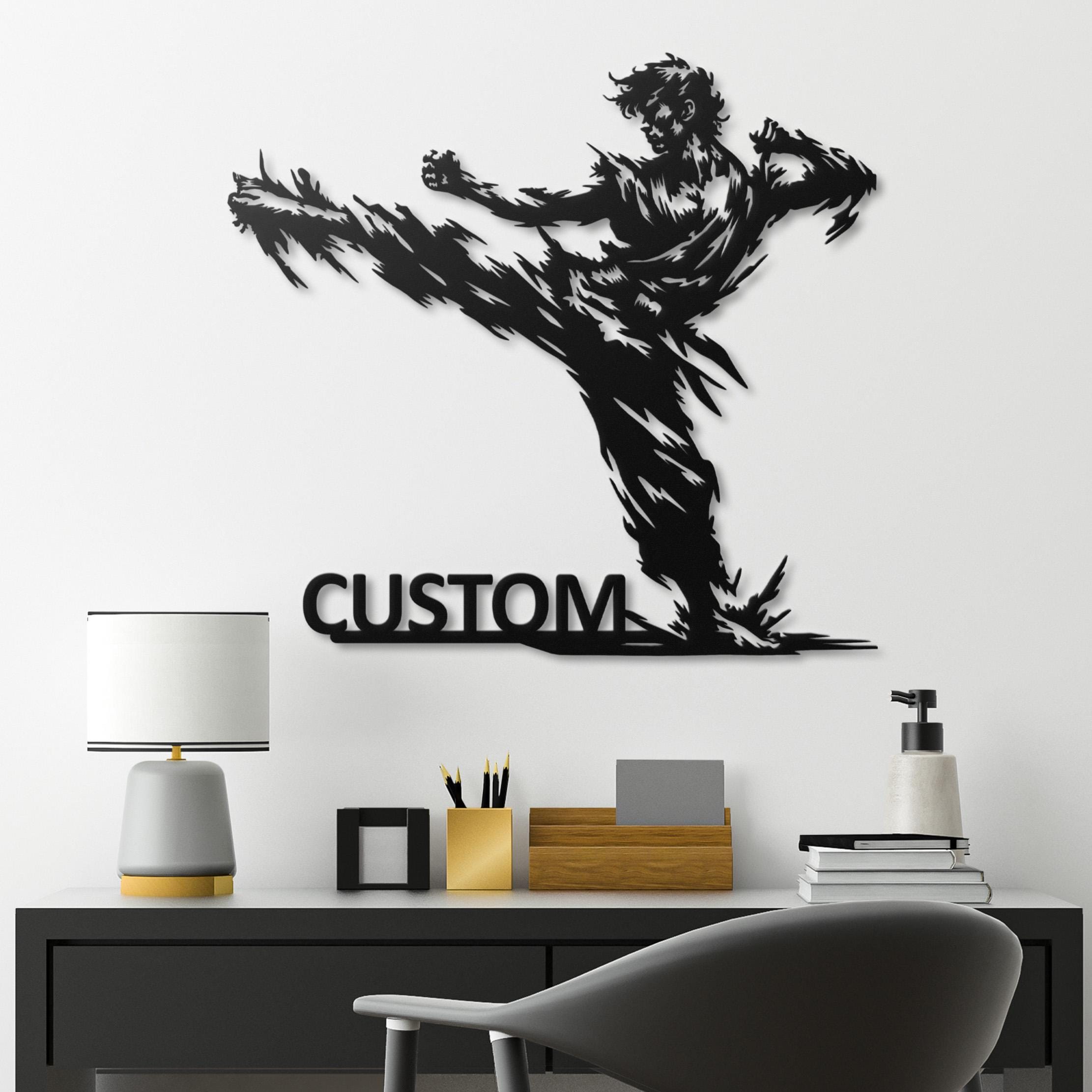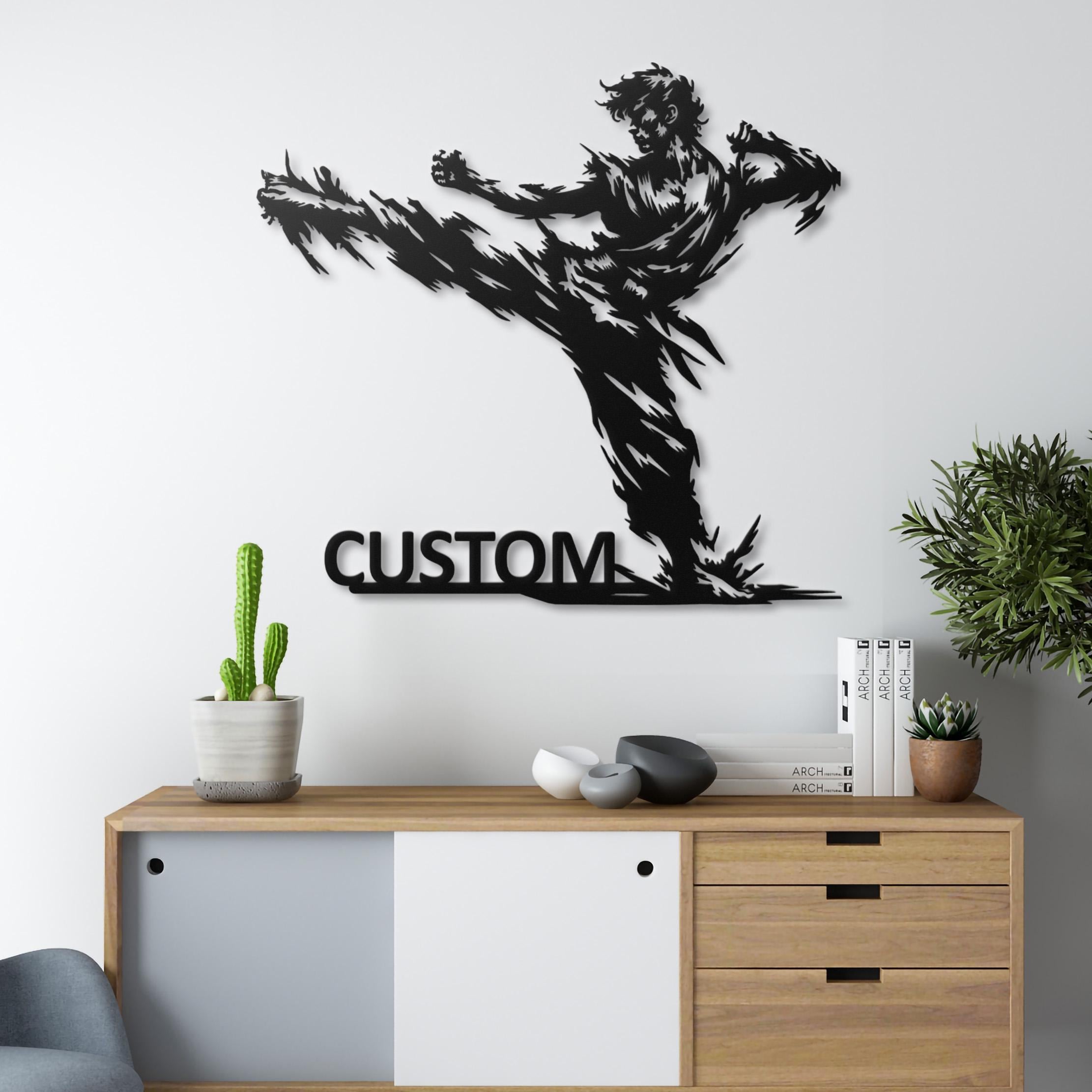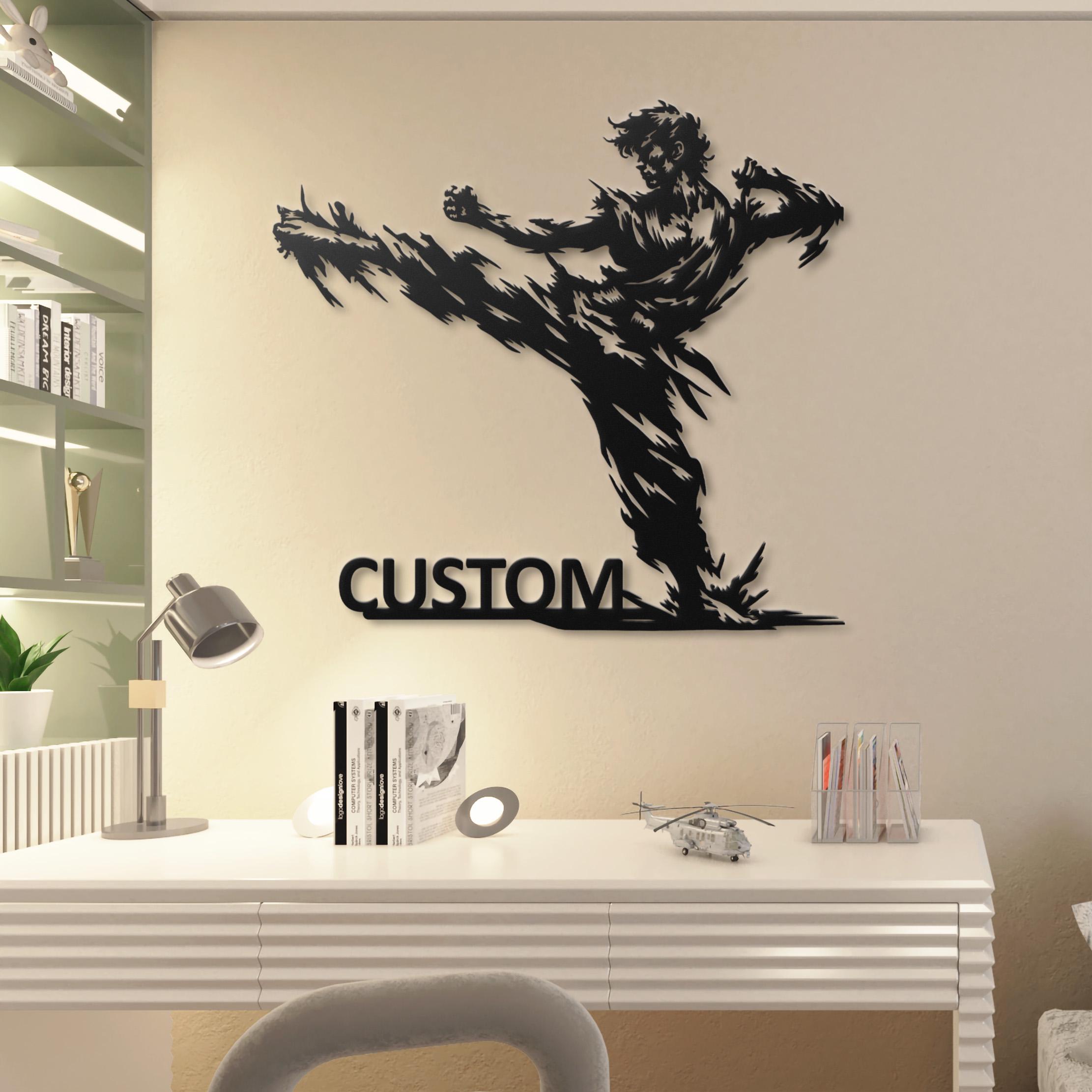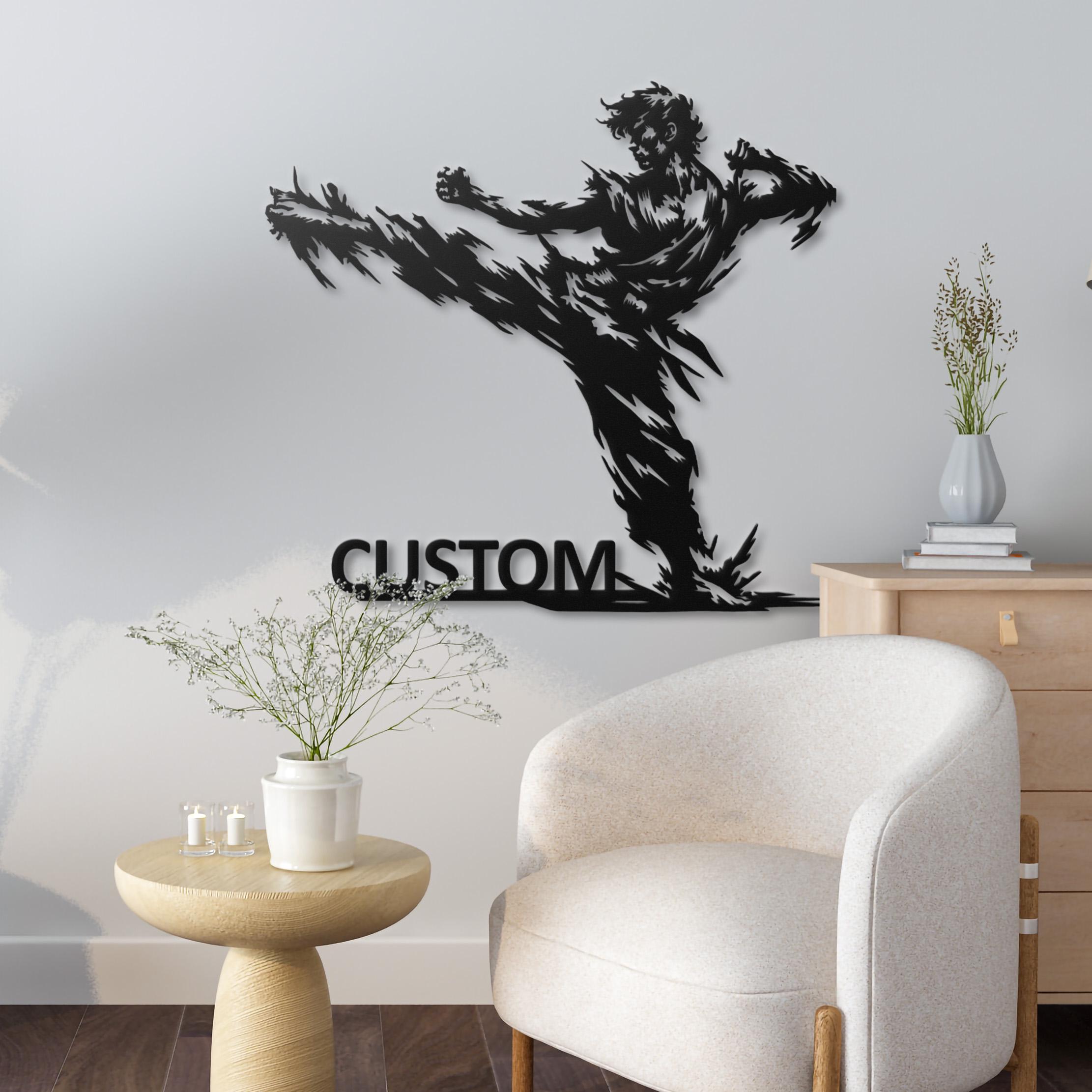 Karate Kick Metal Wall Art, Martial Arts Dojo Decor