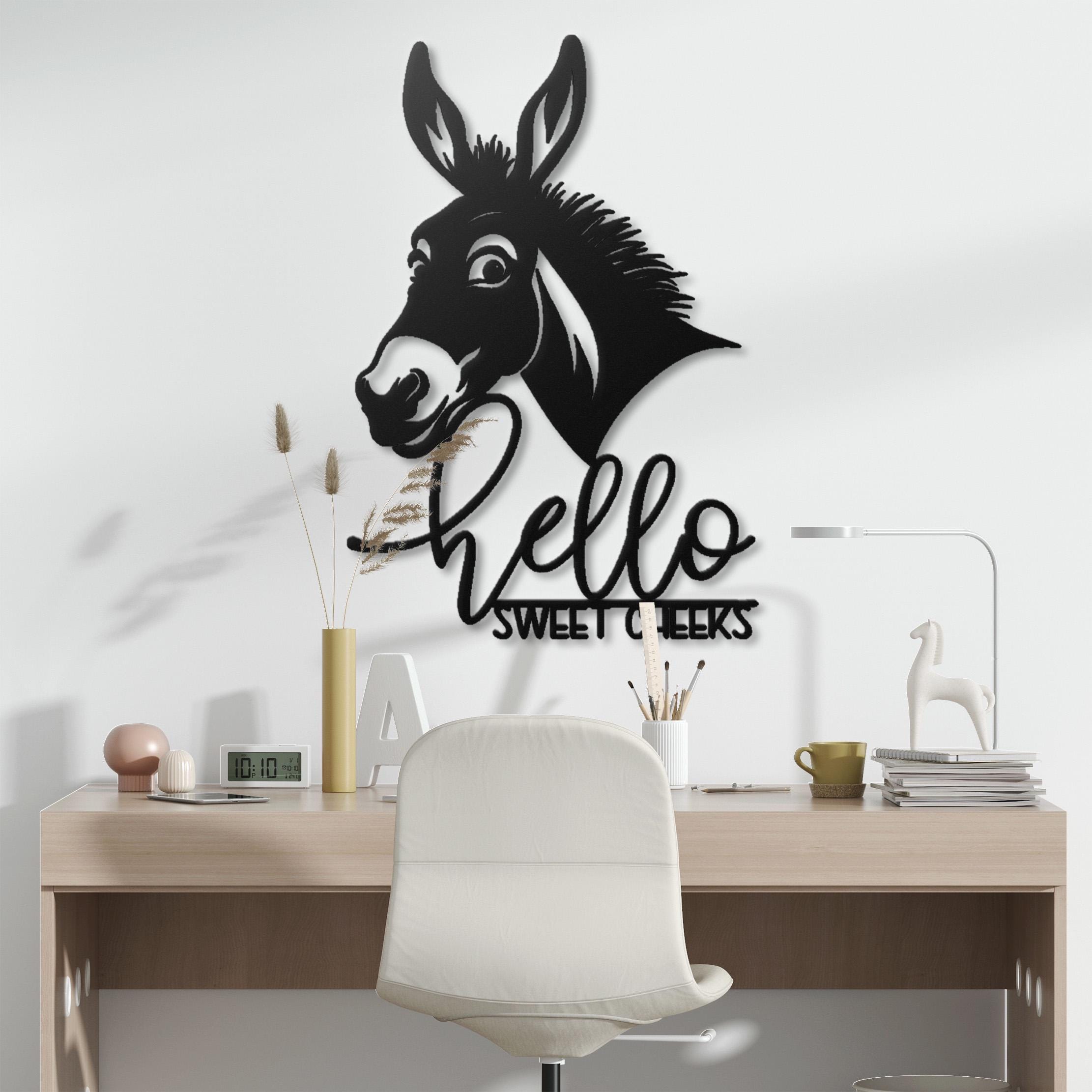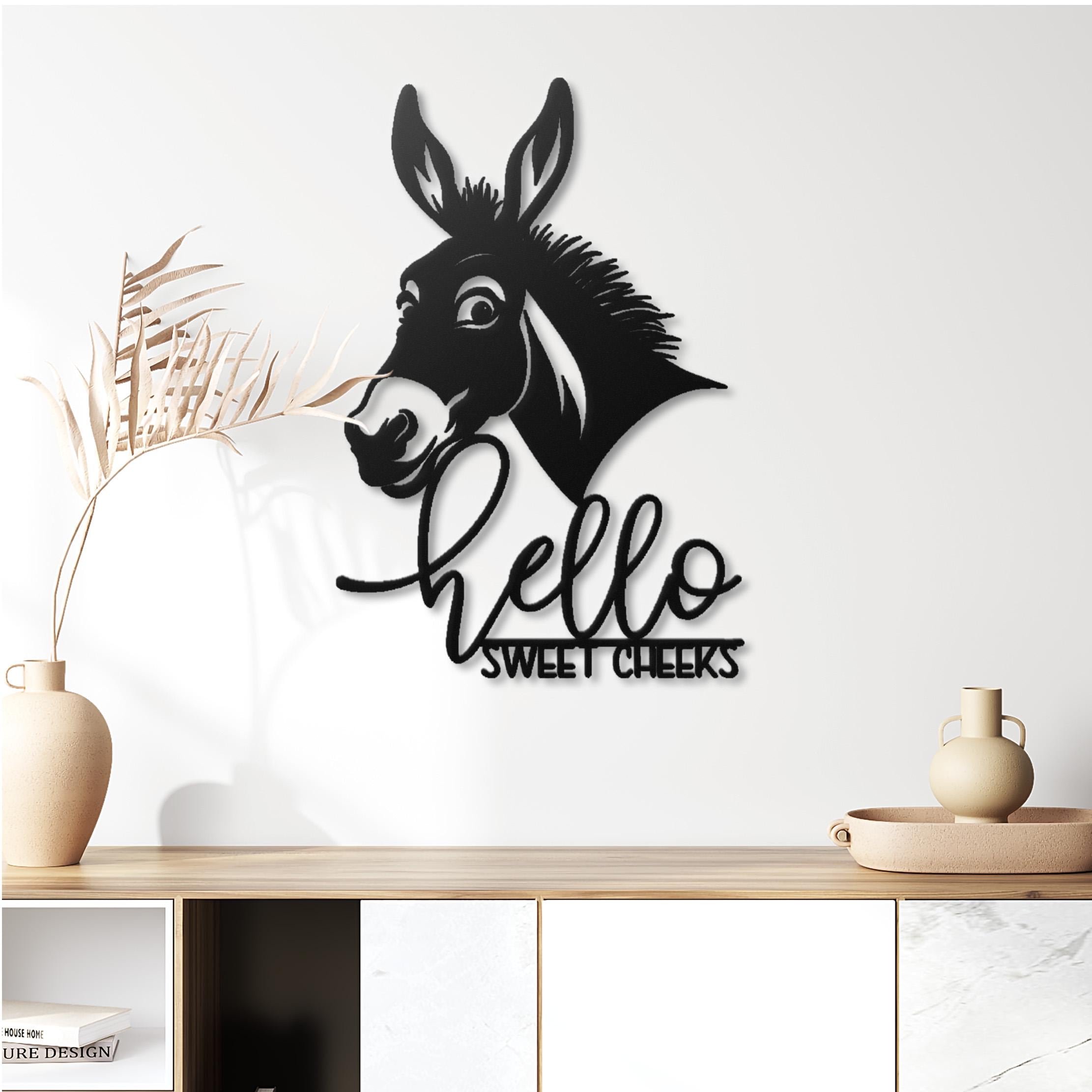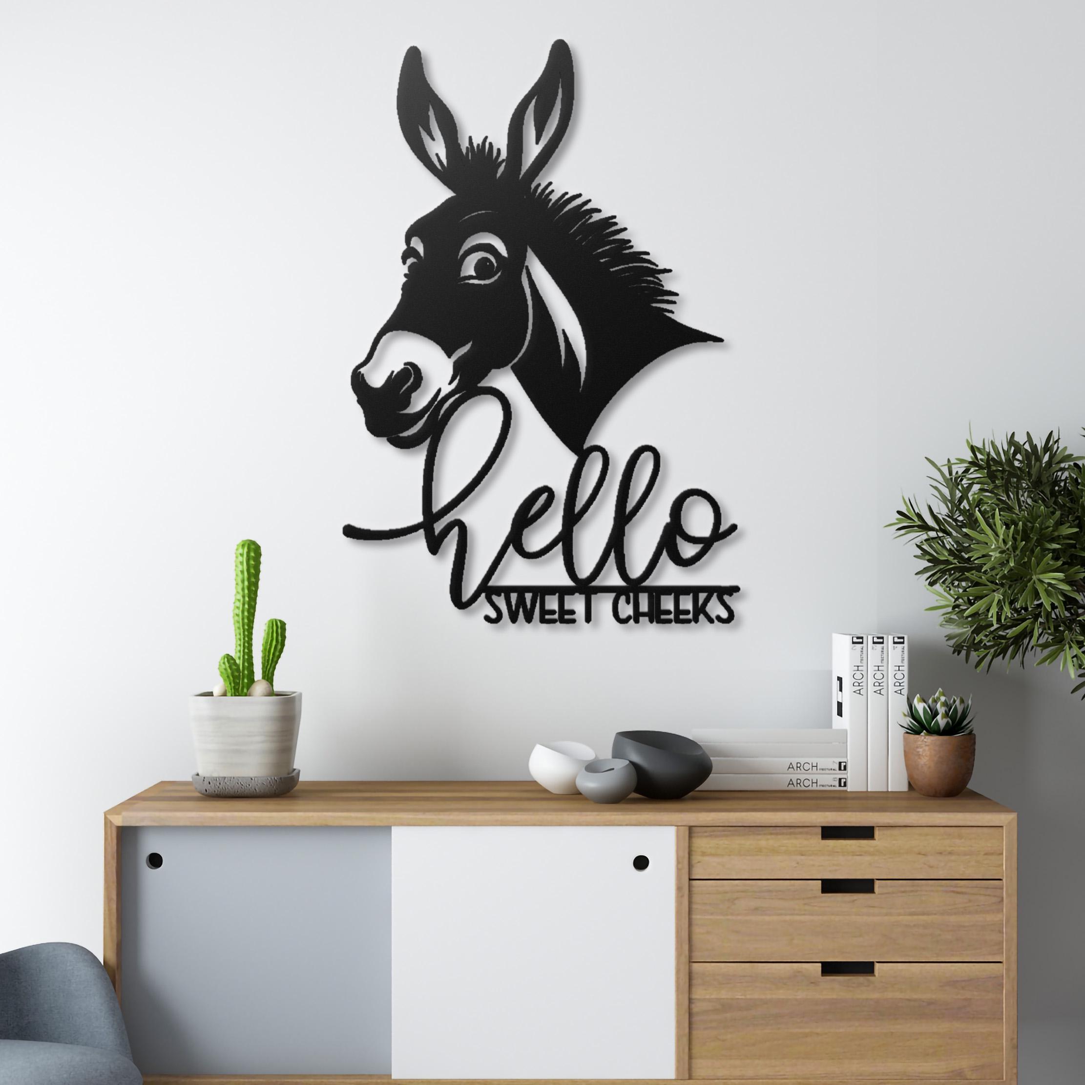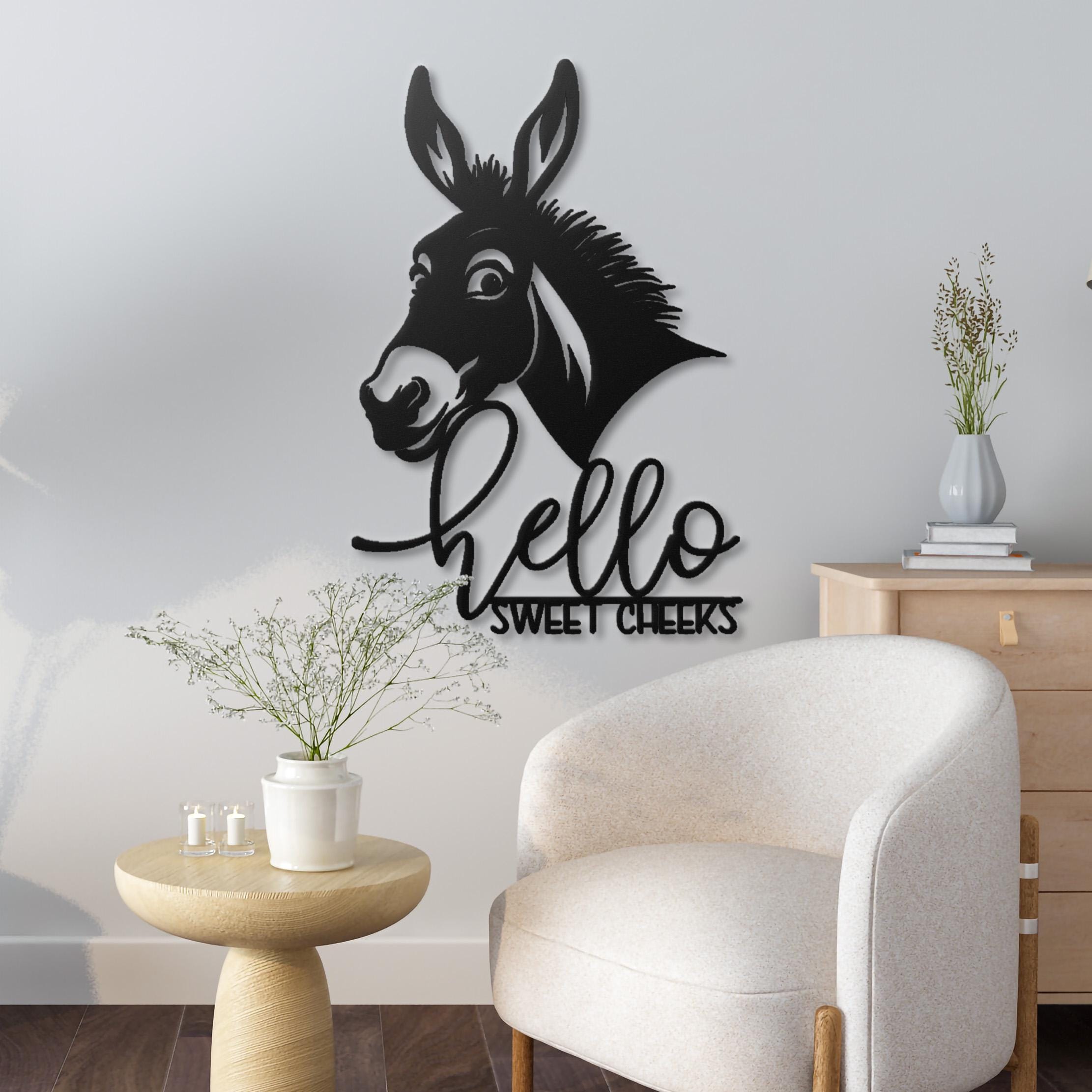Hello Sweet Cheeks Donkey Metal Wall Art: Humorous Farmhouse Decor