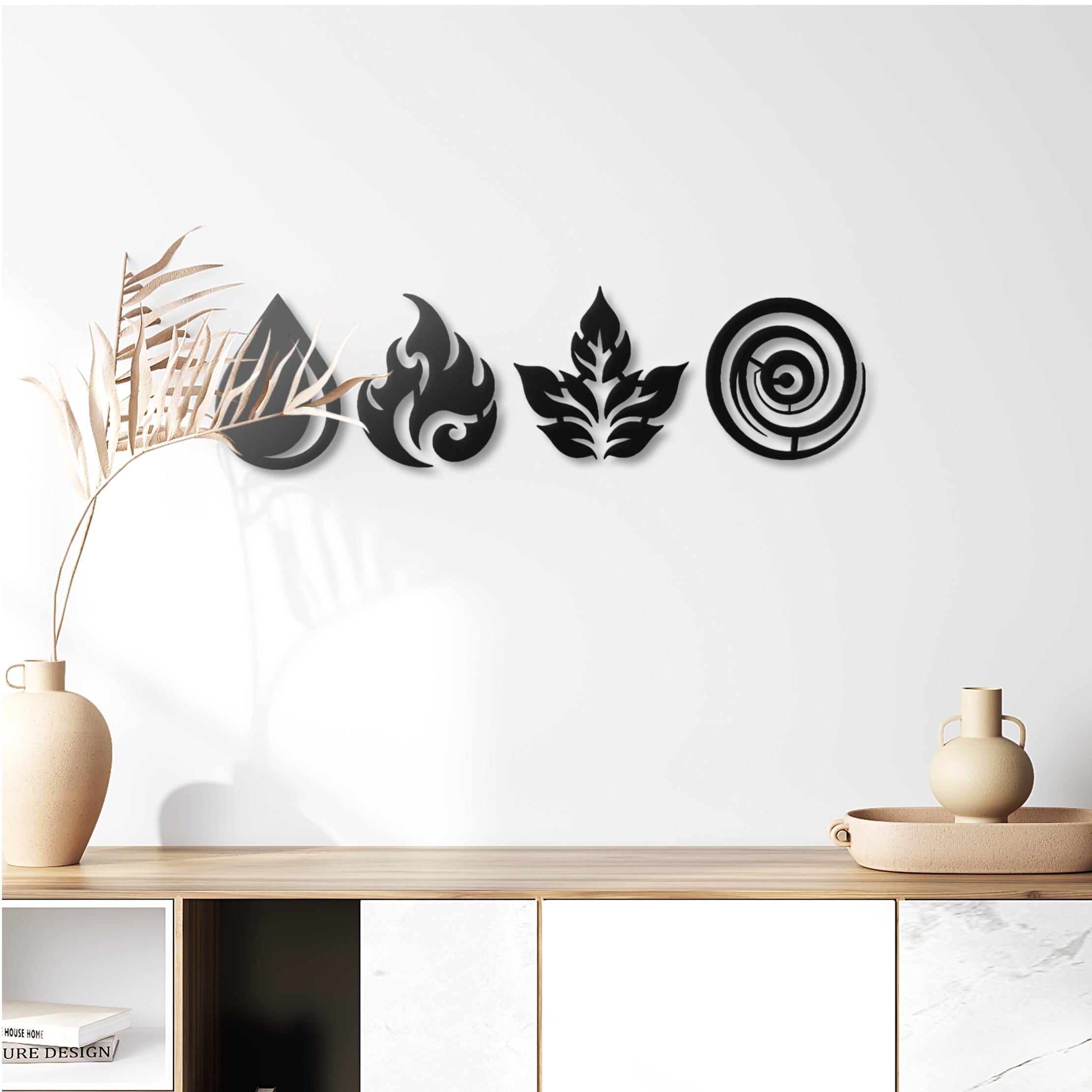 Four Elements Metal Wall Art: Abstract Geometric Nature Symbols