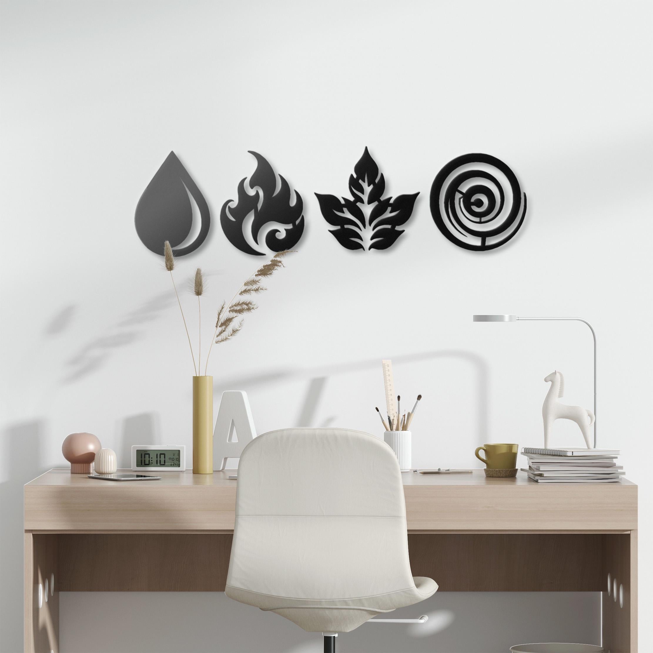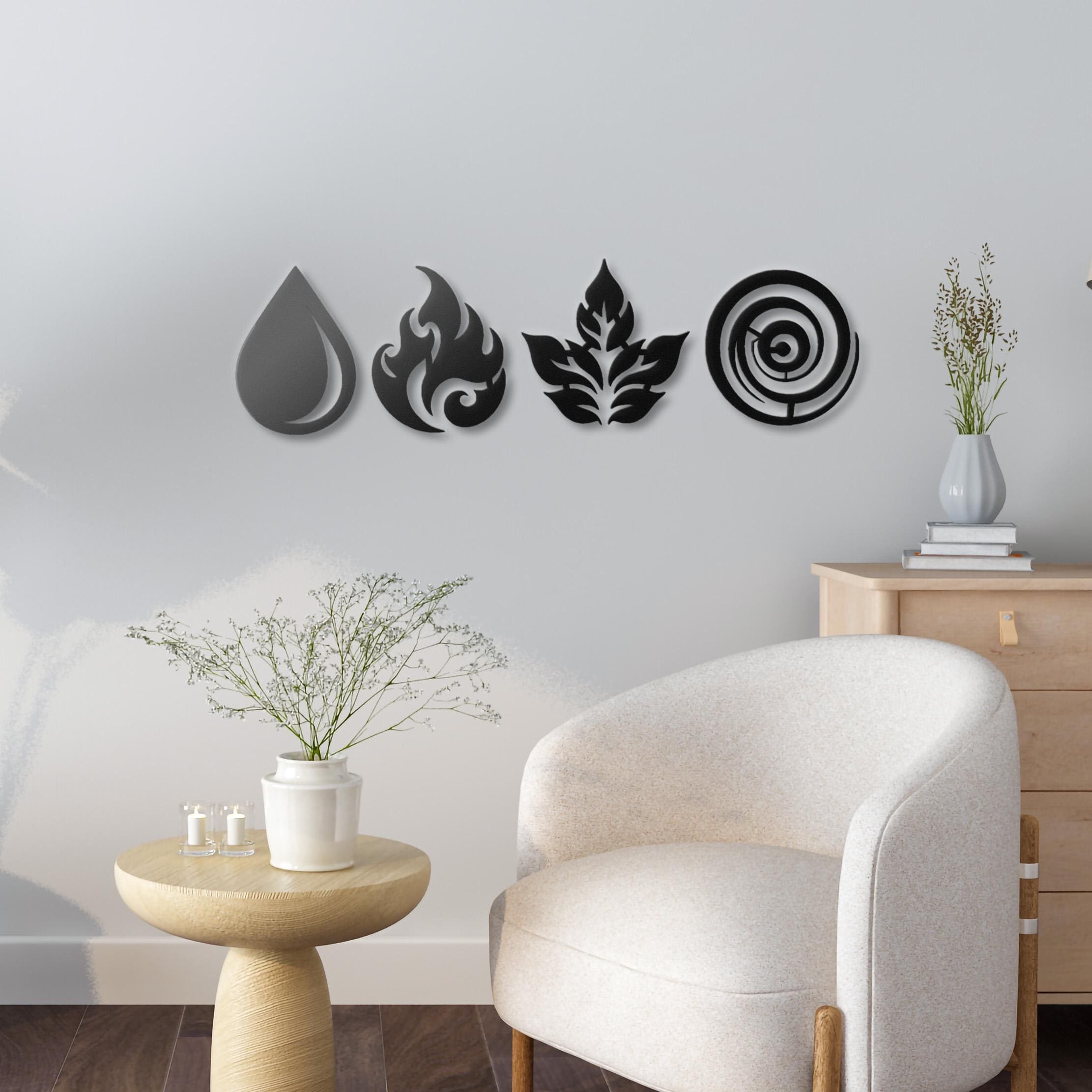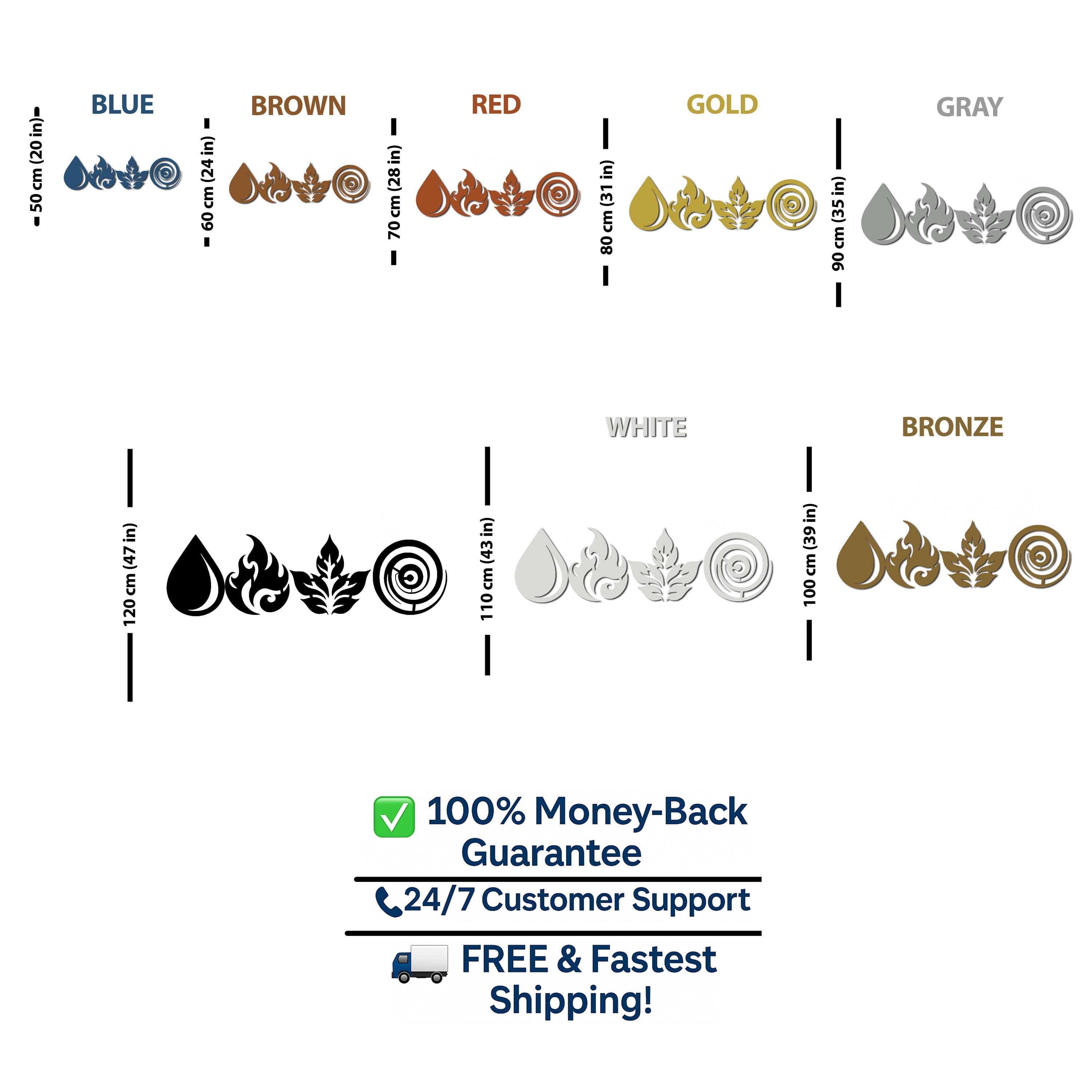 Unveil the harmony of the elements in your home with this striking metal wall art! Each piece represents one of the four classic elements, crafted with care and precision to bring a balanced vibe to any space.