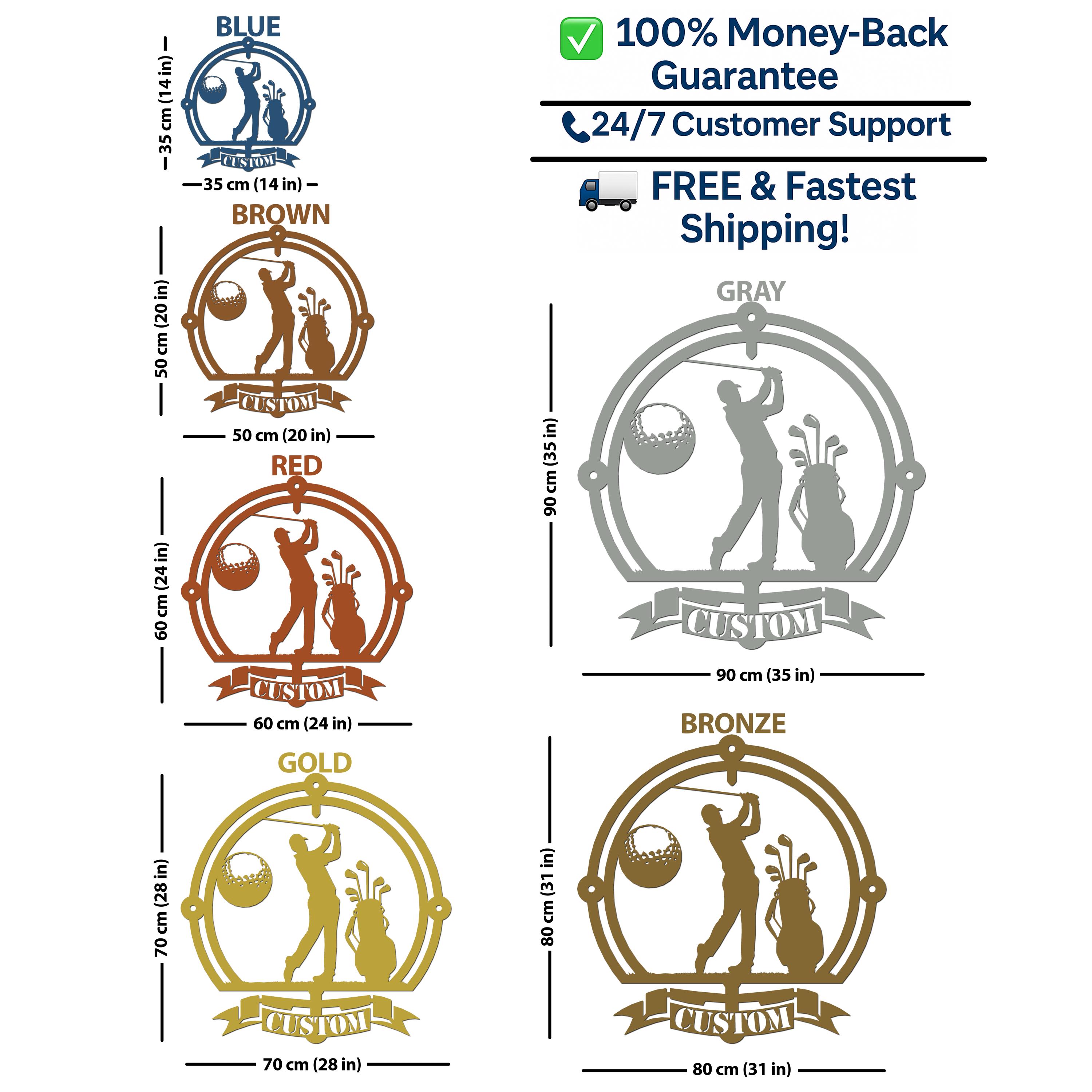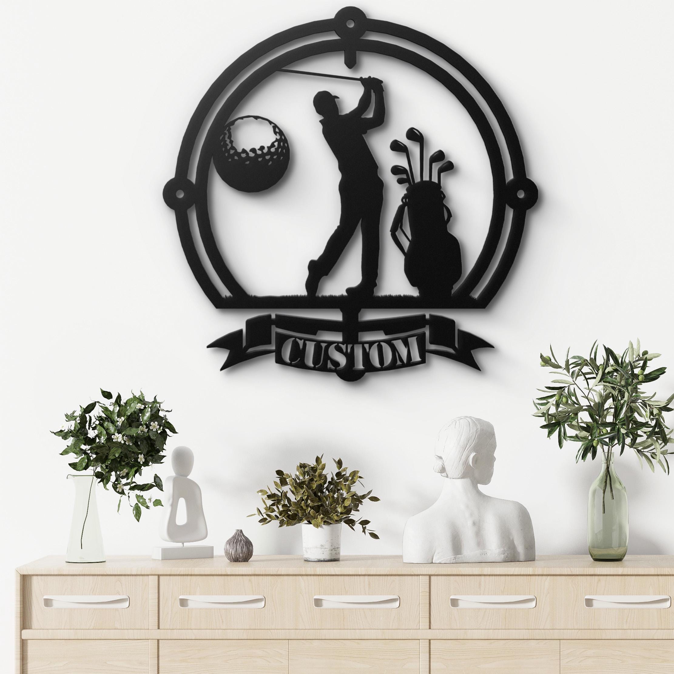 Celebrate your passion for golf with this Personalized Golfer Metal Wall Art, featuring a stylish golfer silhouette, golf gear, and a customizable name banner. This elegant metal piece is perfect for any golf enthusiast ποΈββοΈβ³, adding a personal and sporty touch to your home or office decor.