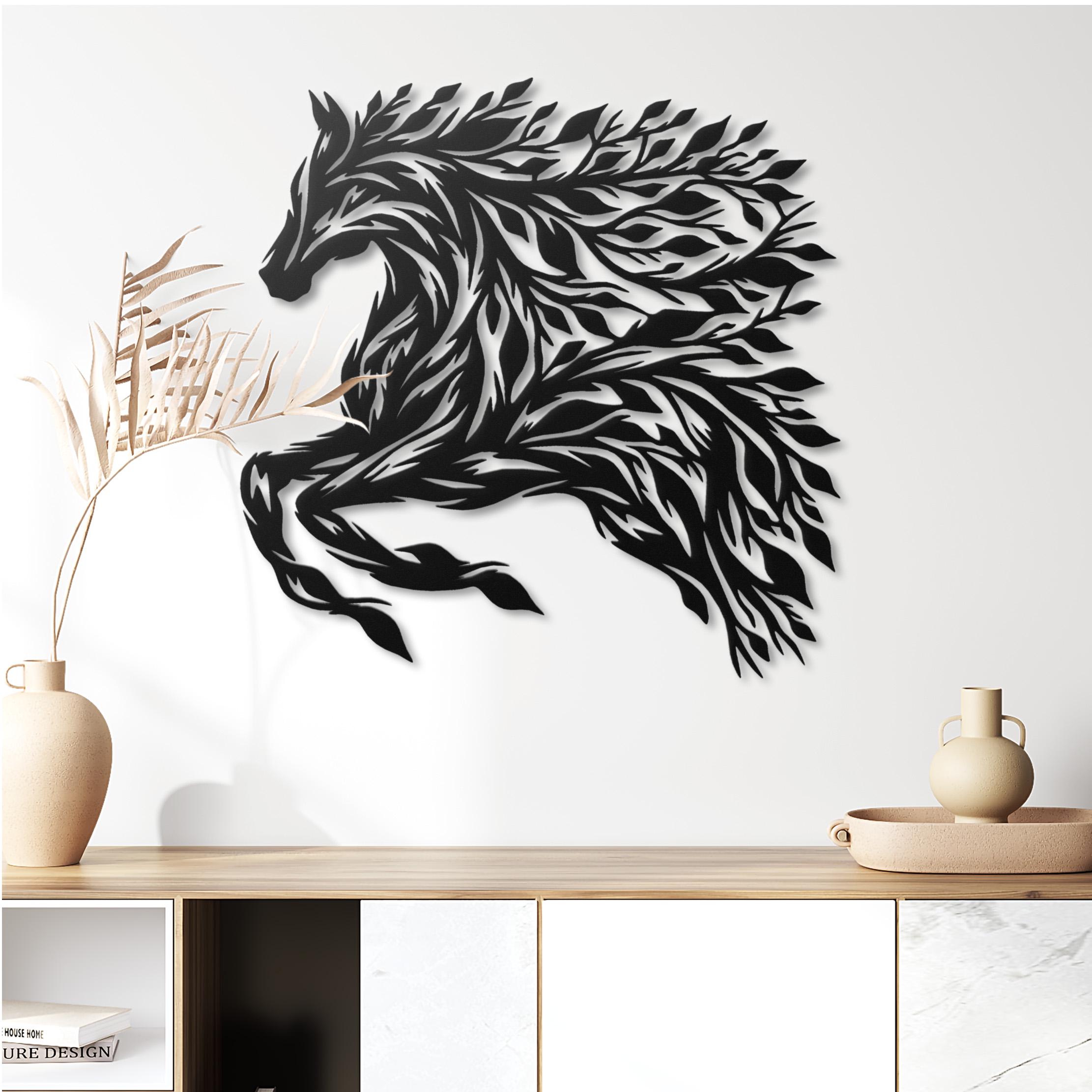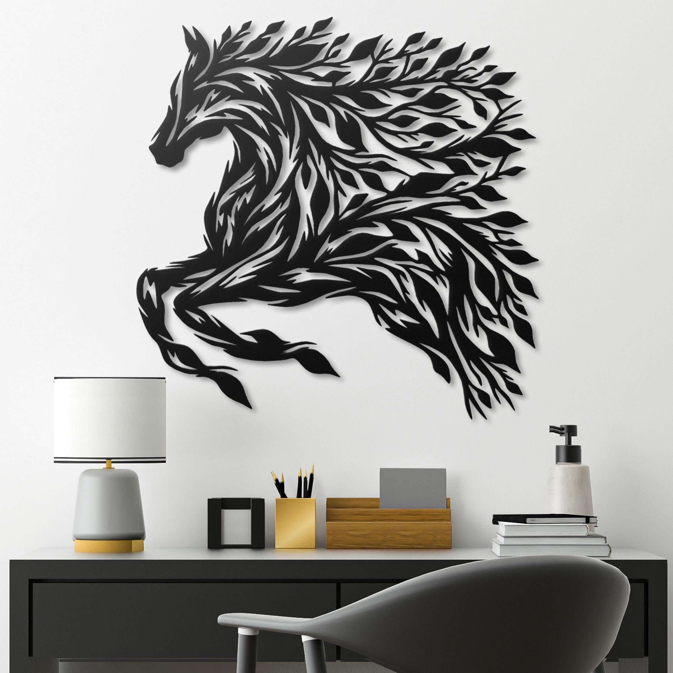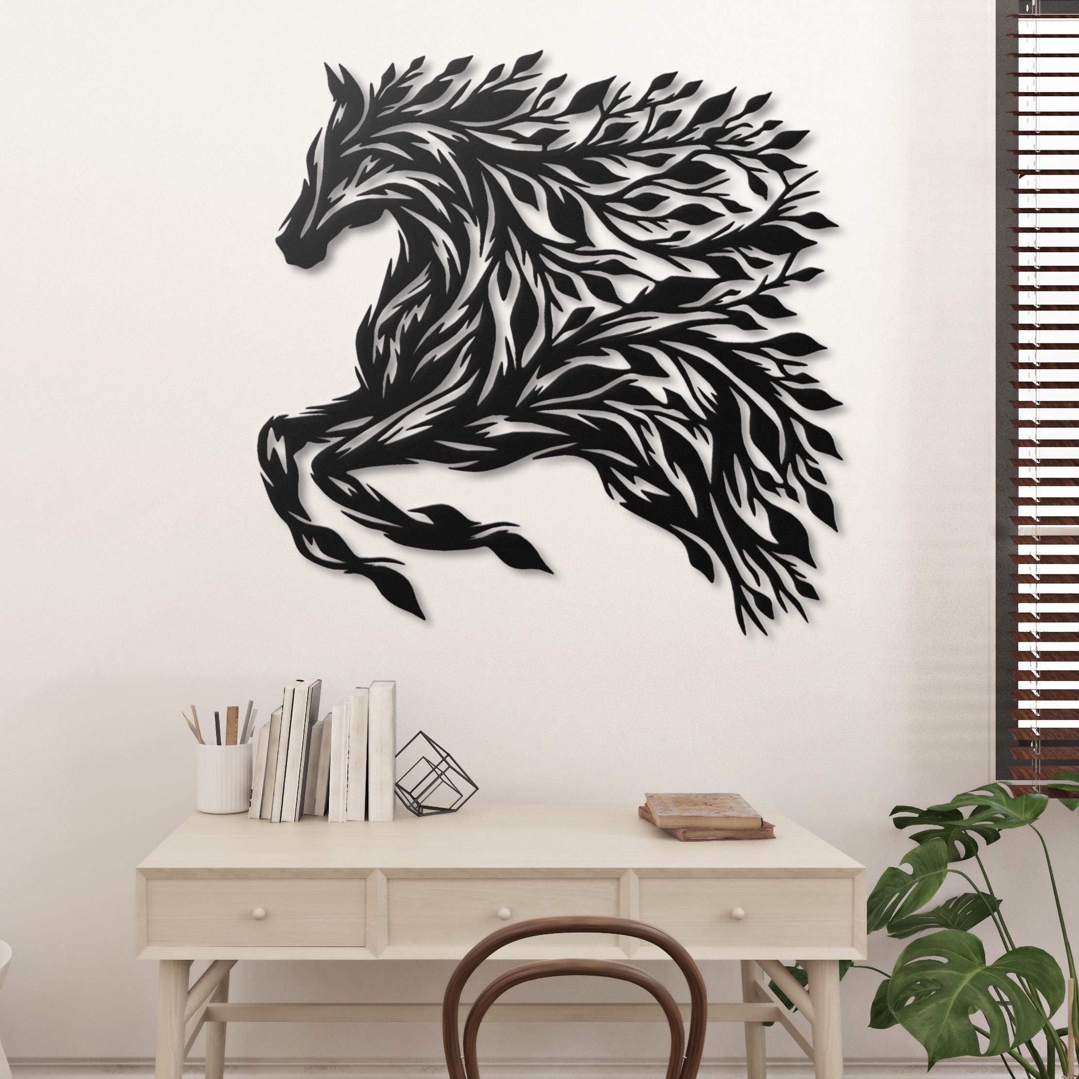 Horse Metal Wall Art: Leaf Mane Equine Silhouette Horse Wall Decor