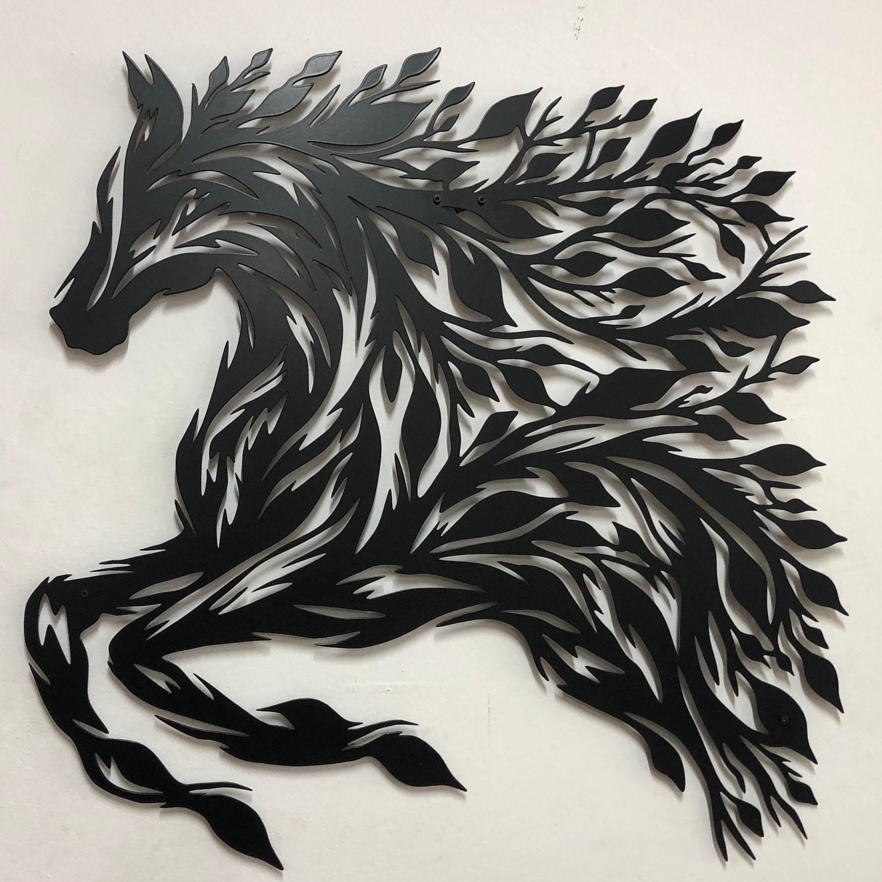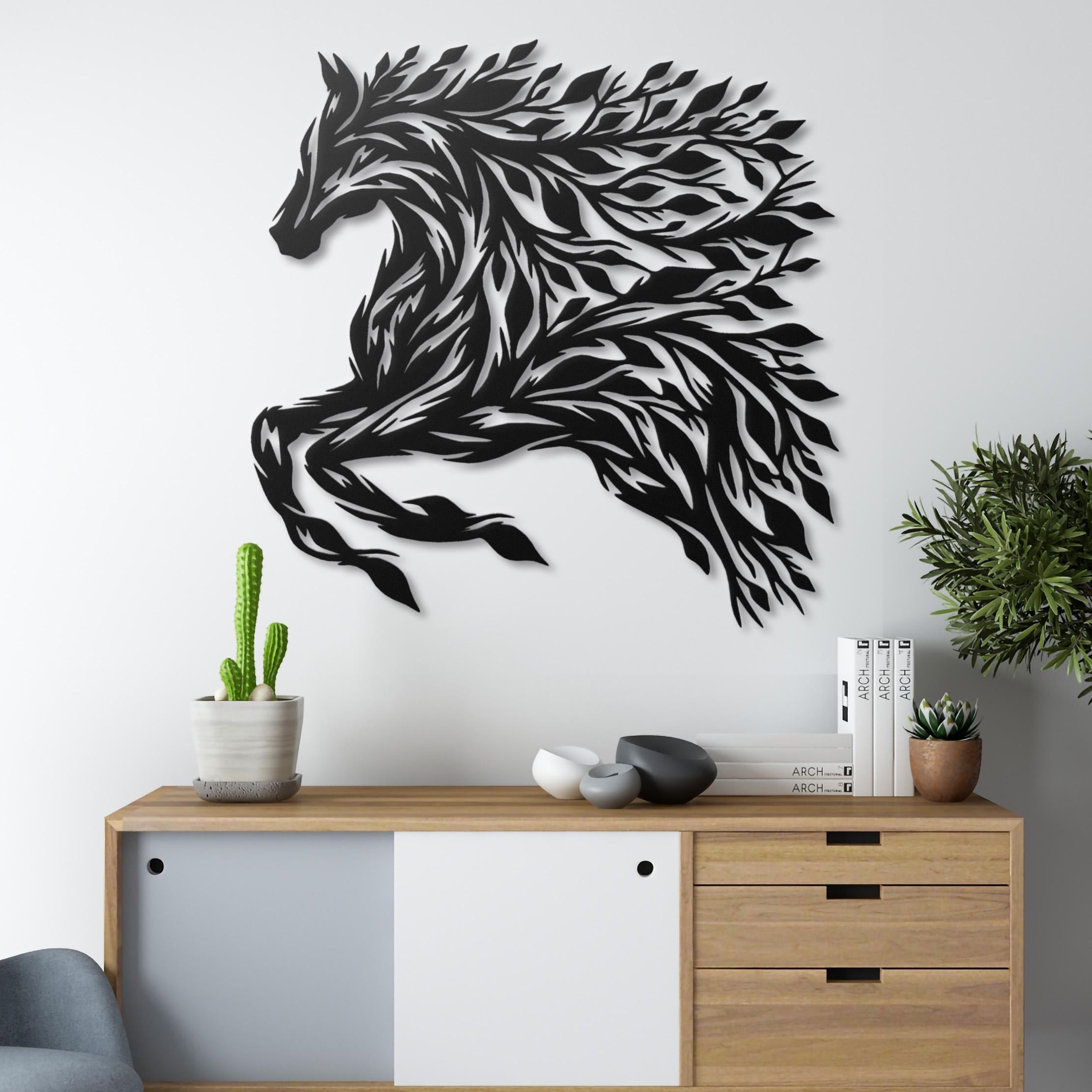 Whether it's the centerpiece of your living room or a magical addition to a child's bedroom, this "Mystical Forest Horse Metal Wall Art" is sure to enchant and inspire all who lay eyes upon it.