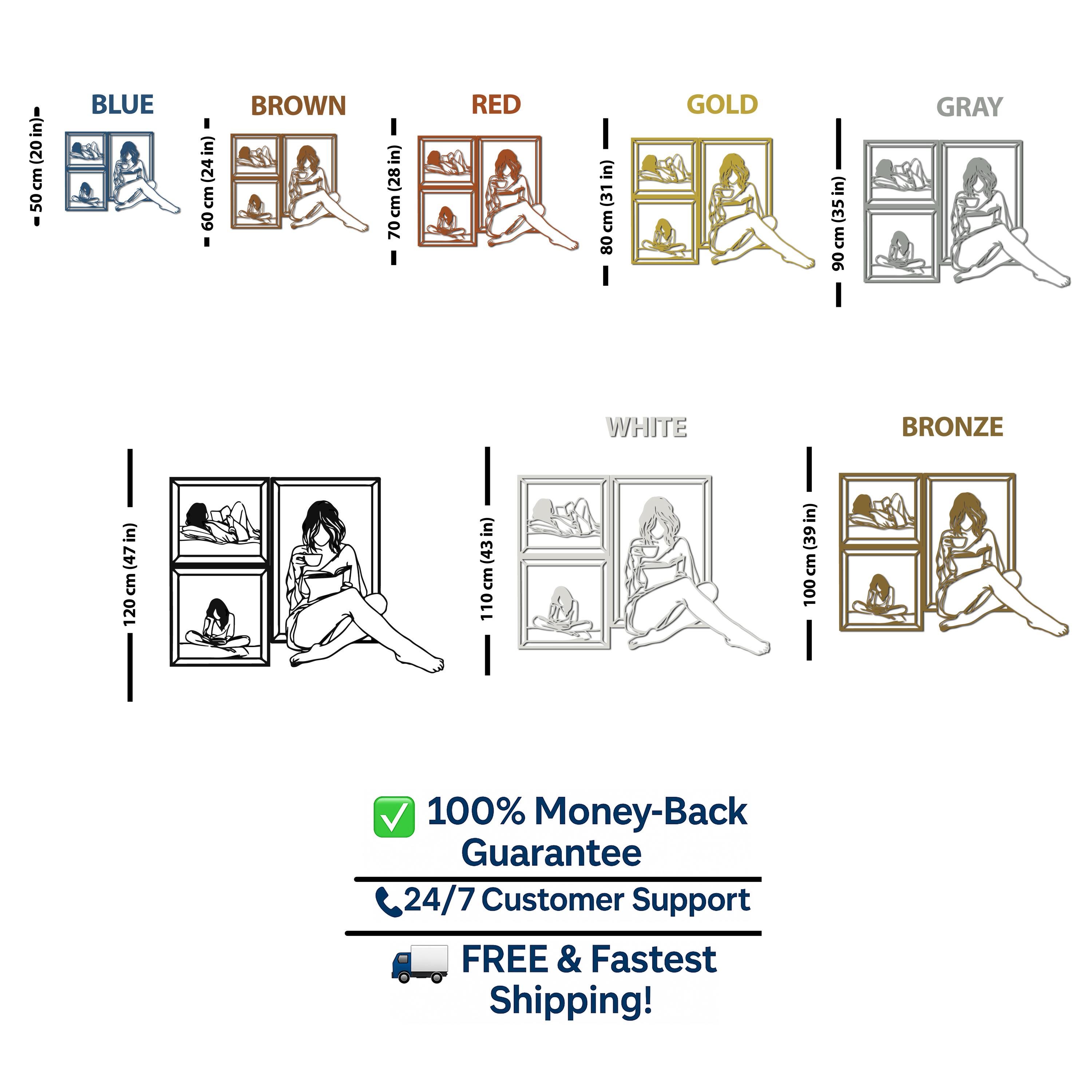 Immerse yourself in the quiet joy of literature with our " Reader Set Of 3 Metal Wall Art," which captures the elegance of a woman lost in her books through three different poses. ππ Each panel depicts a separate scene, together creating a narrative of peaceful contemplation and the timeless allure of a good read.