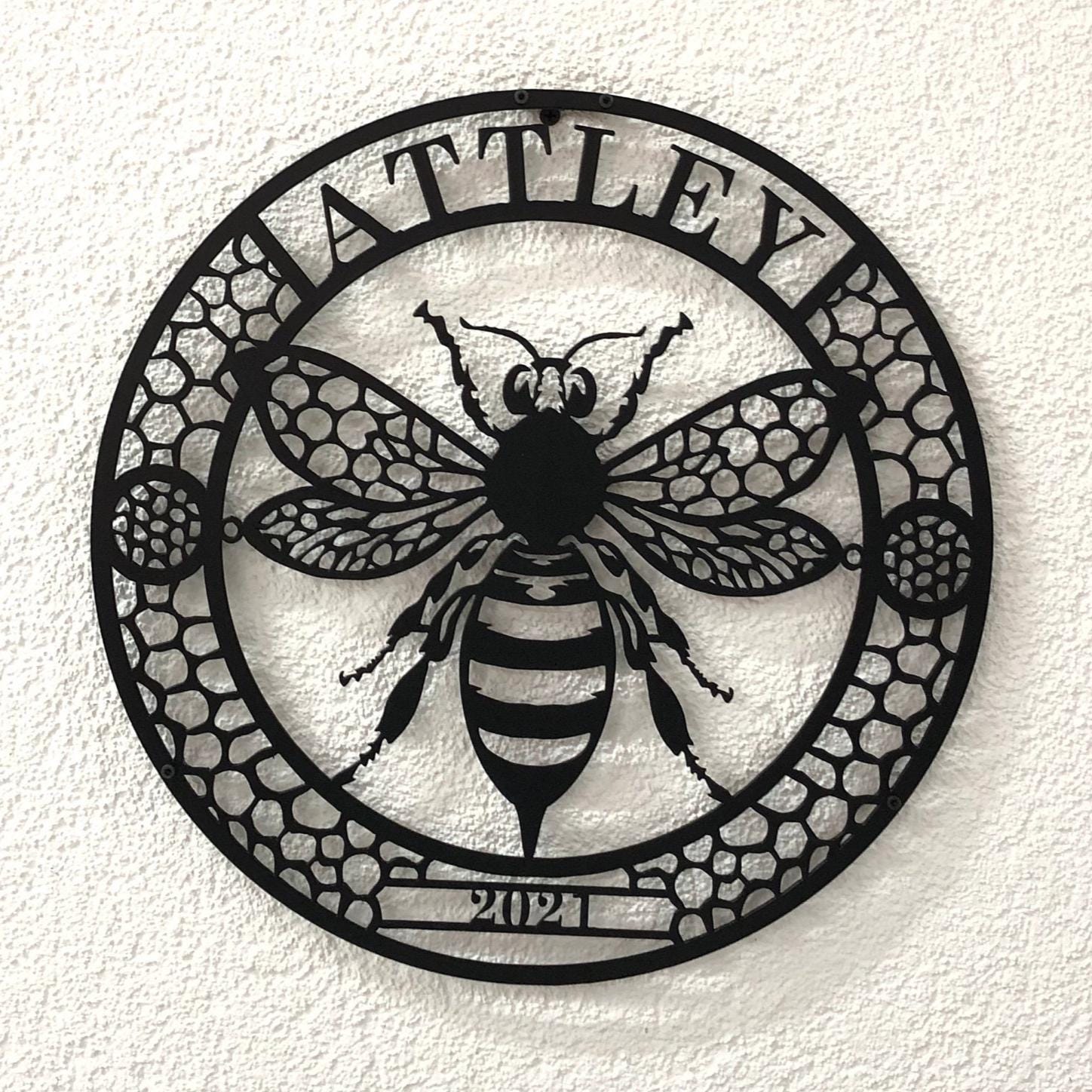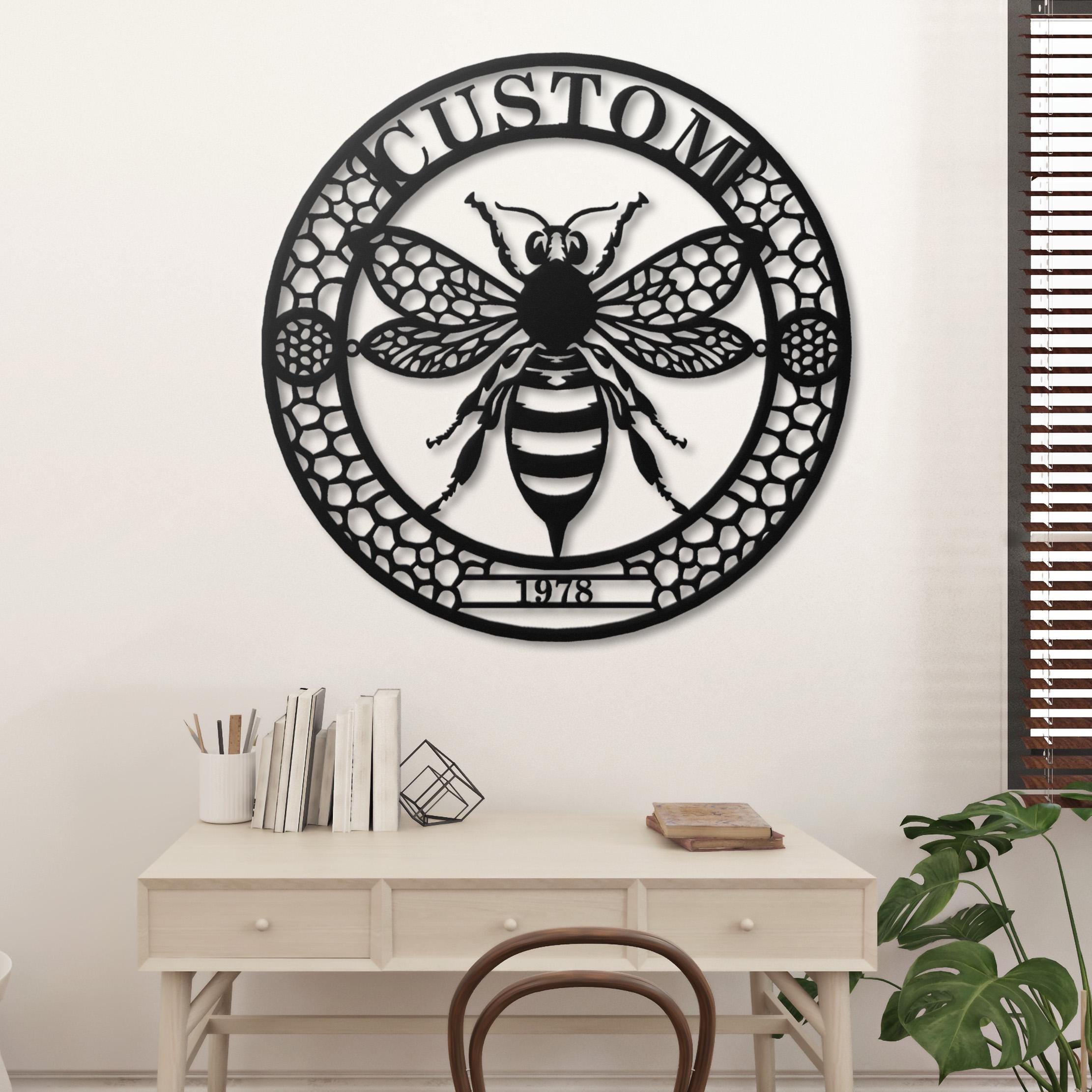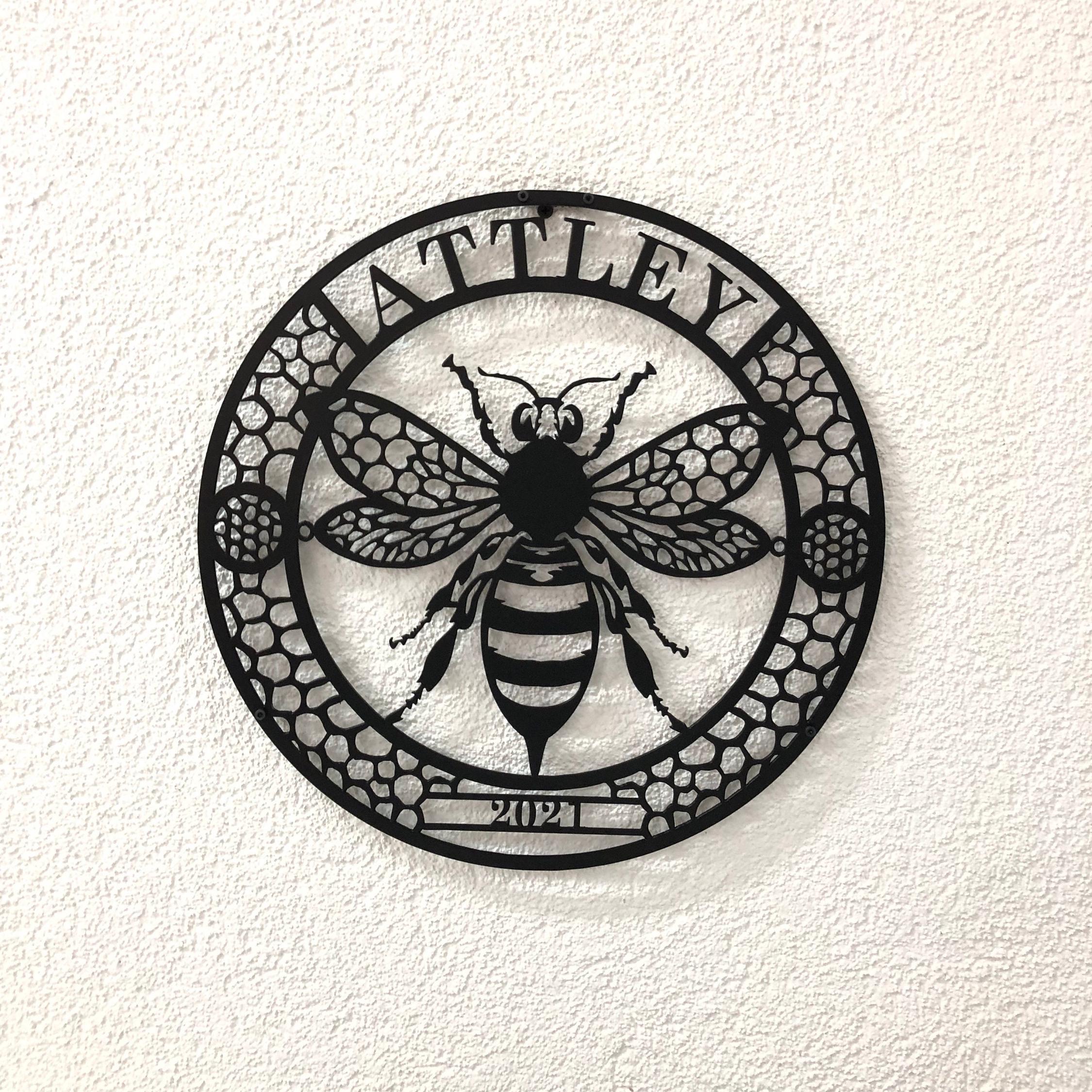 Custom Bee Metal Wall Art, Honeybee and Hives Sculpture, Personalized Apiary Decor, Unique Bee Farm Circular Artwork Beekeeper Gift