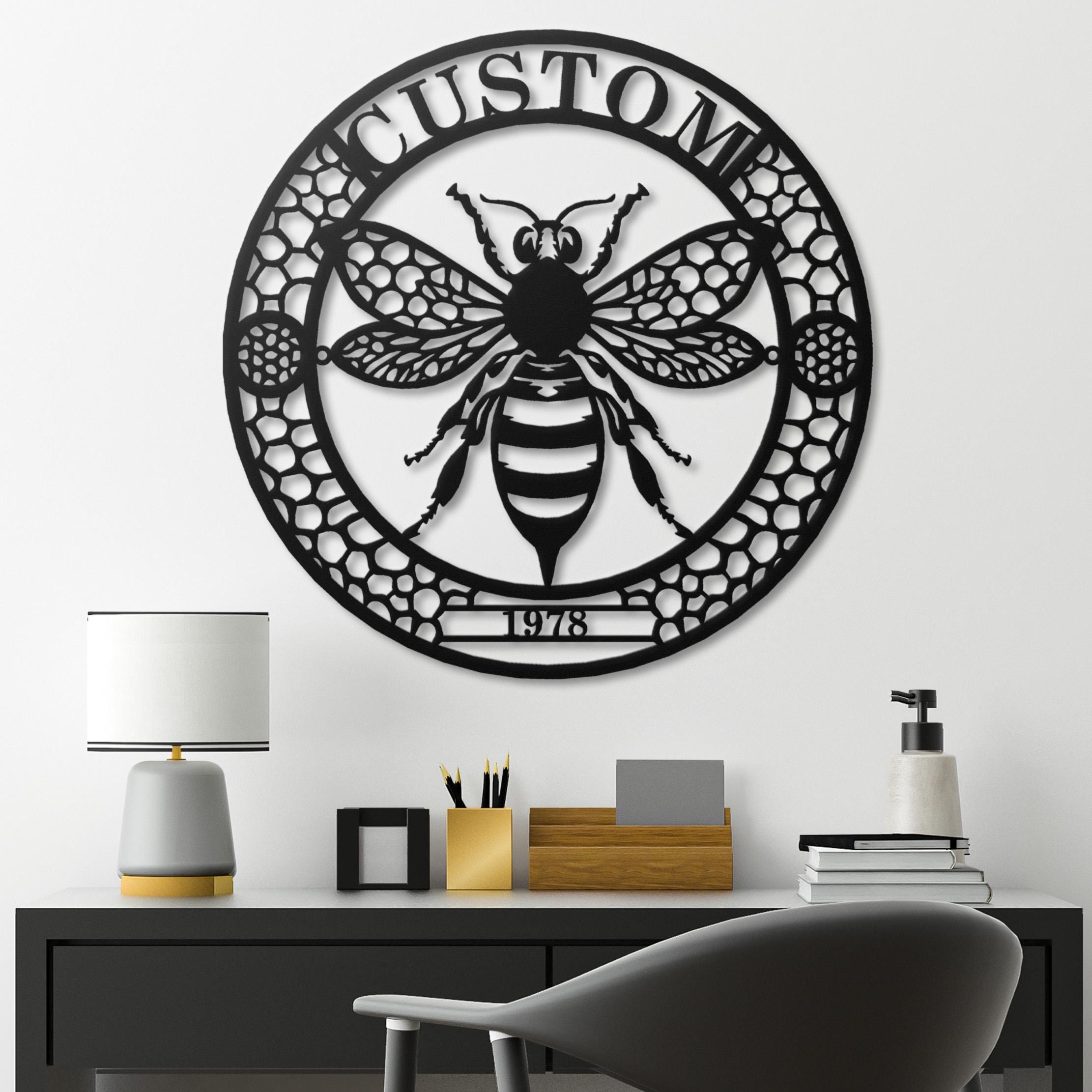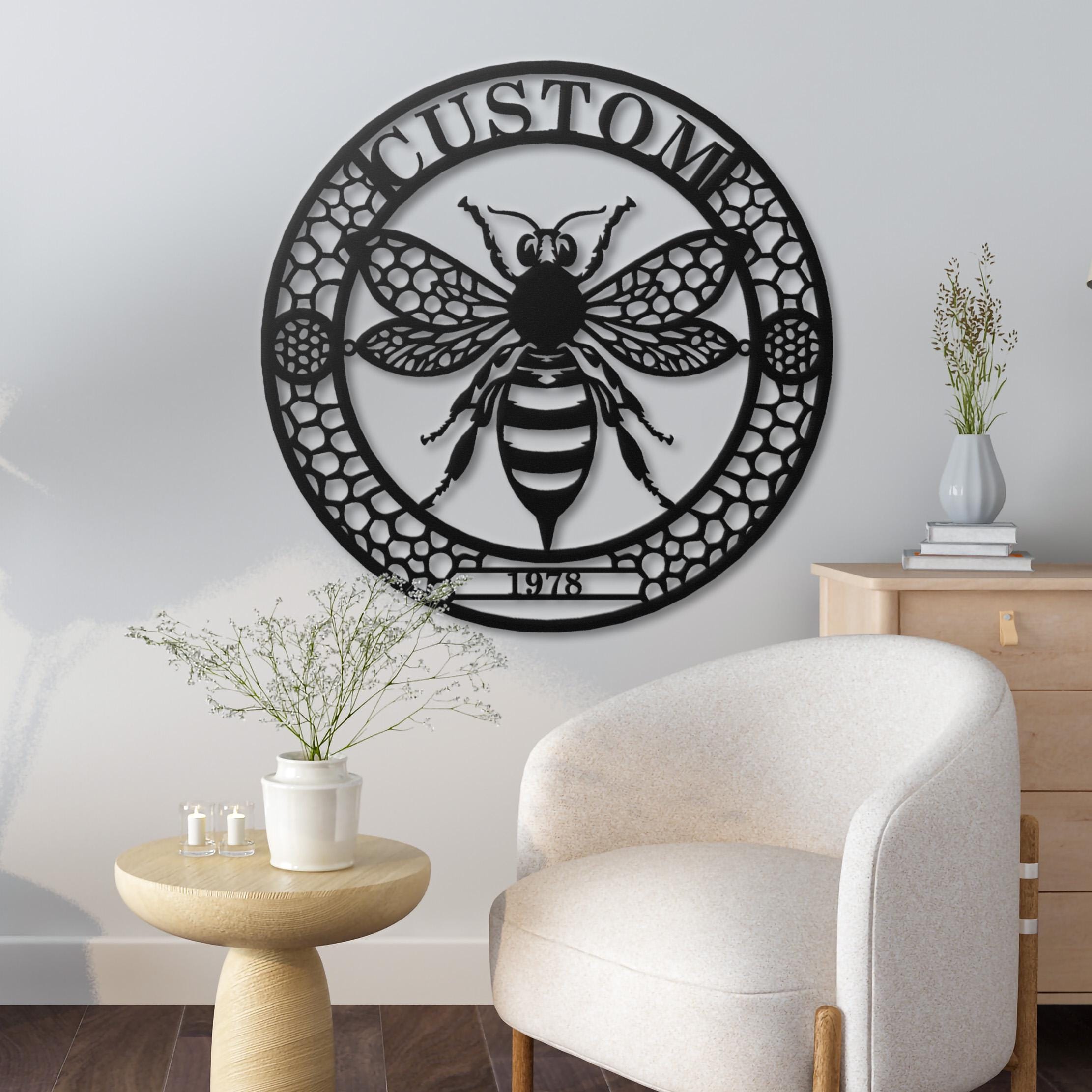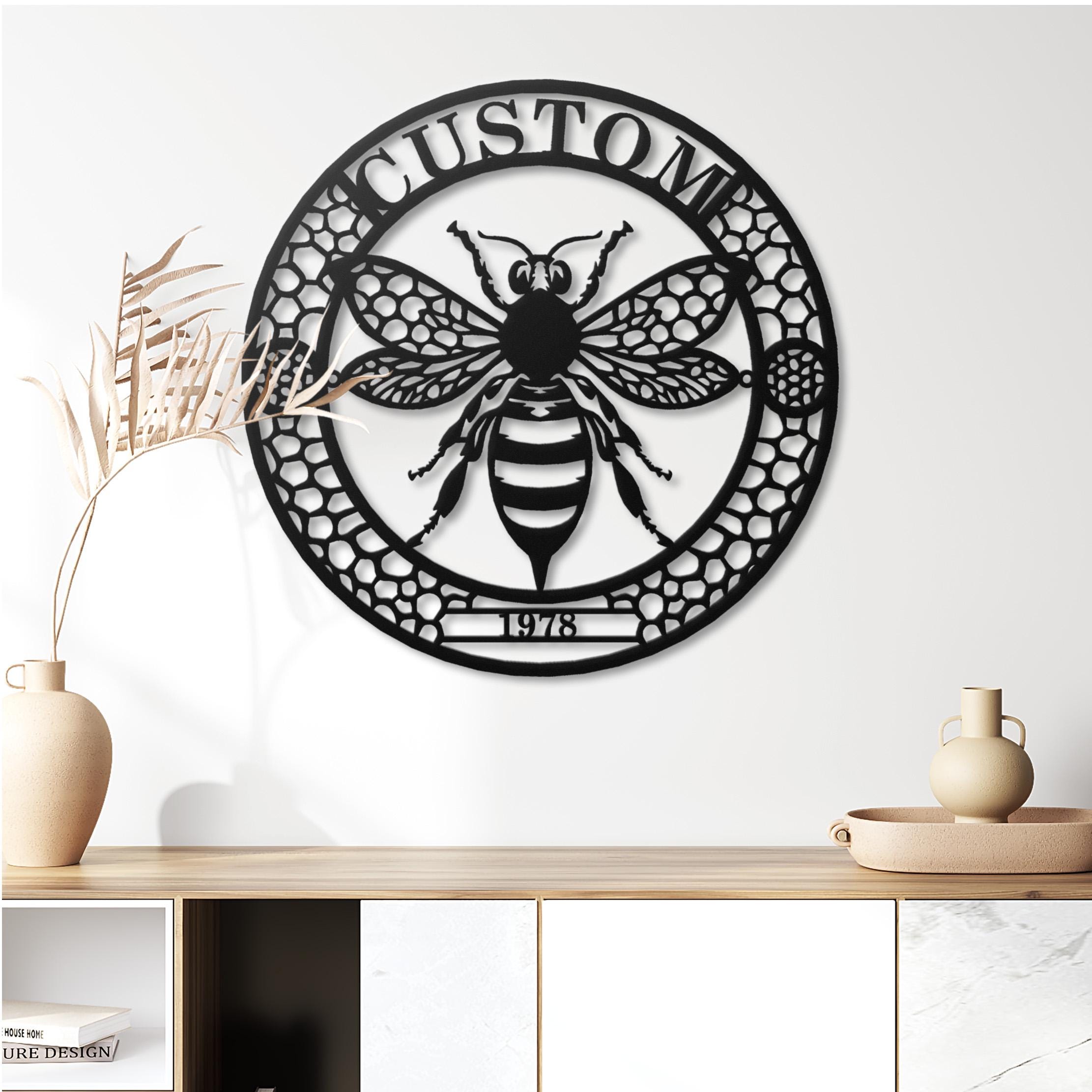 Custom Bee Metal Wall Art, Honeybee and Hives Sculpture, Personalized Apiary Decor, Unique Bee Farm Circular Artwork Beekeeper Gift