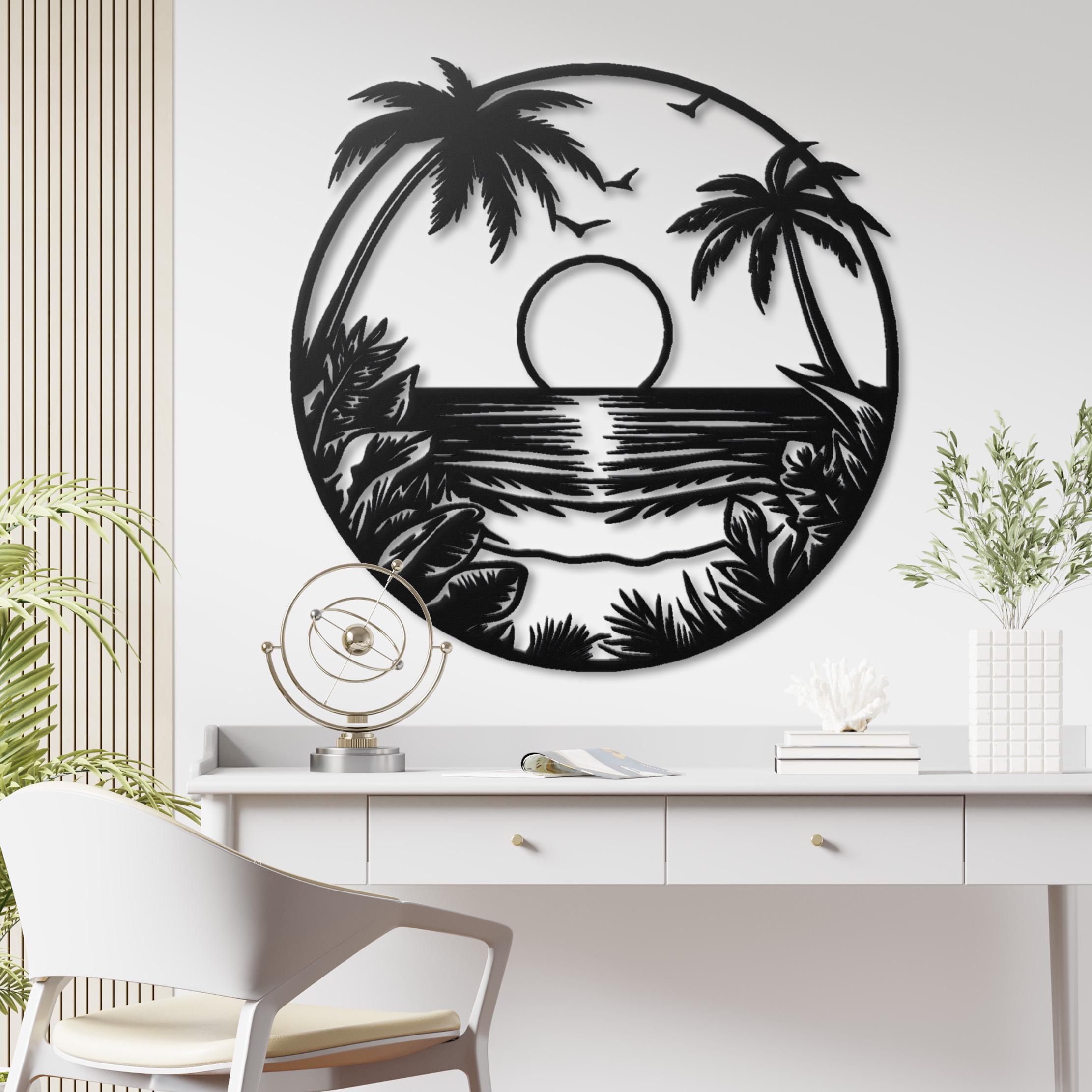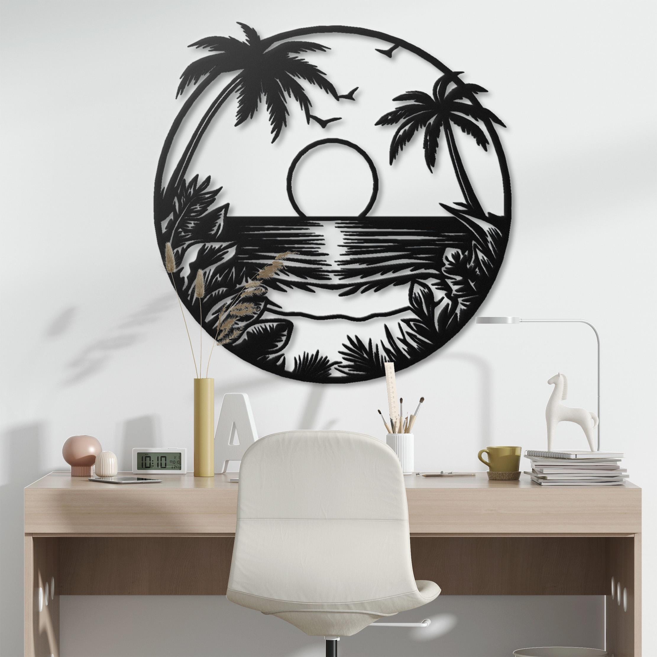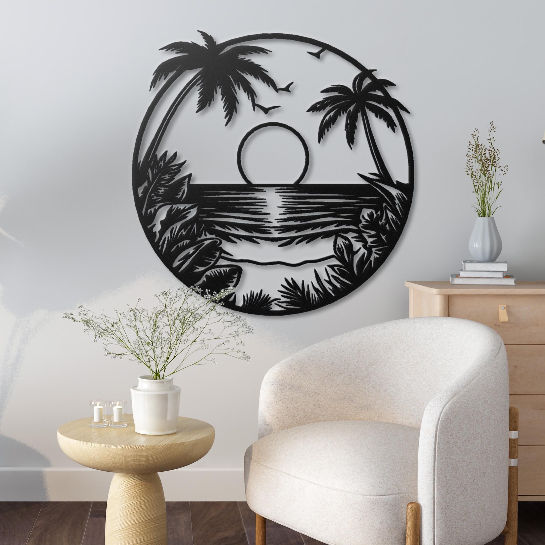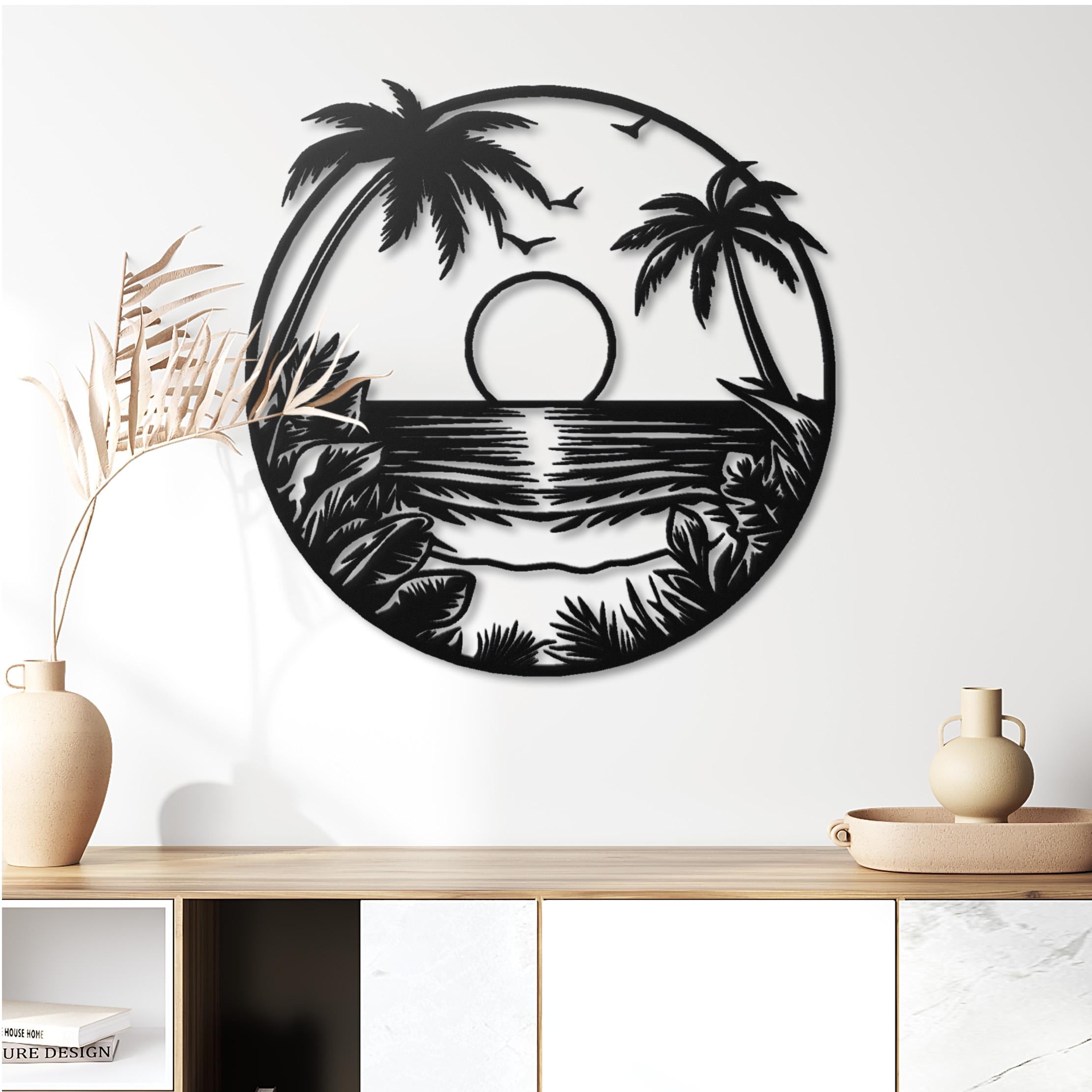 Tropical Sunset Metal Wall Art: Palm Tree Beach Decor, Coastal Accent