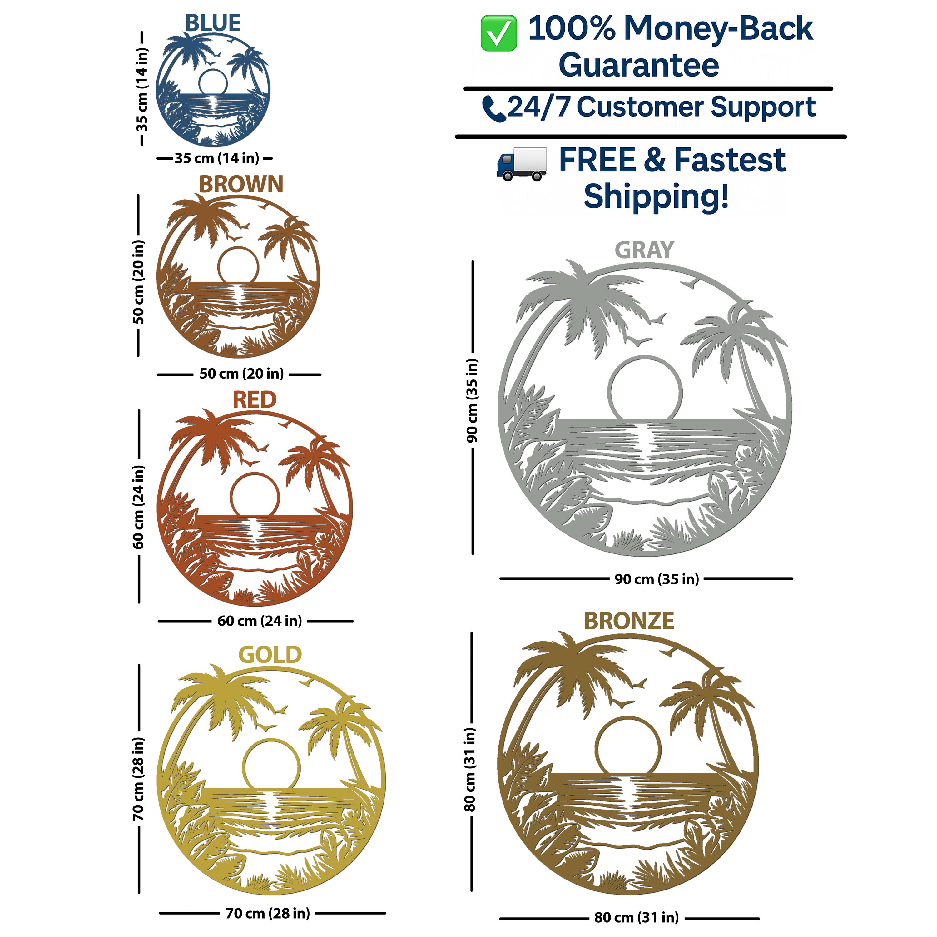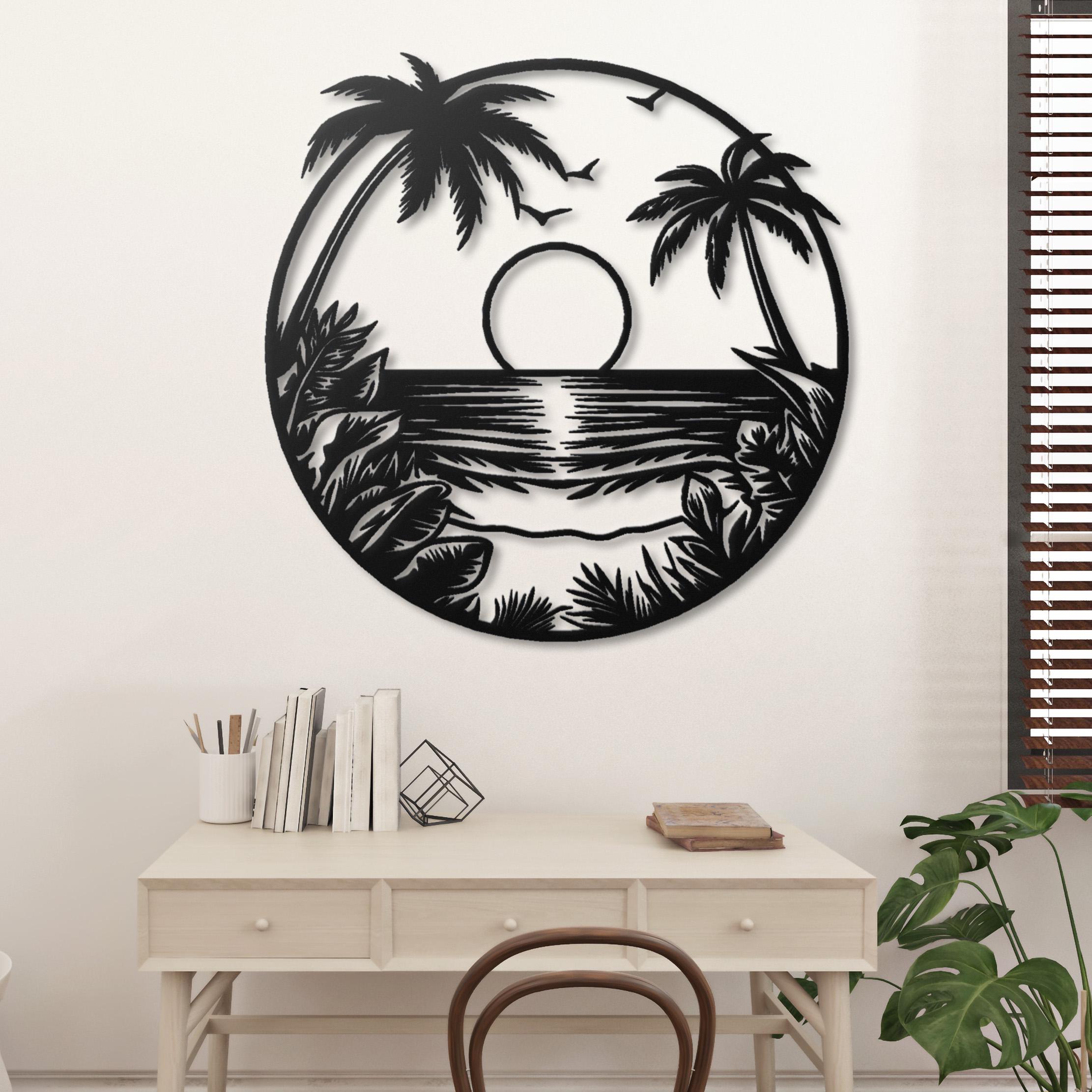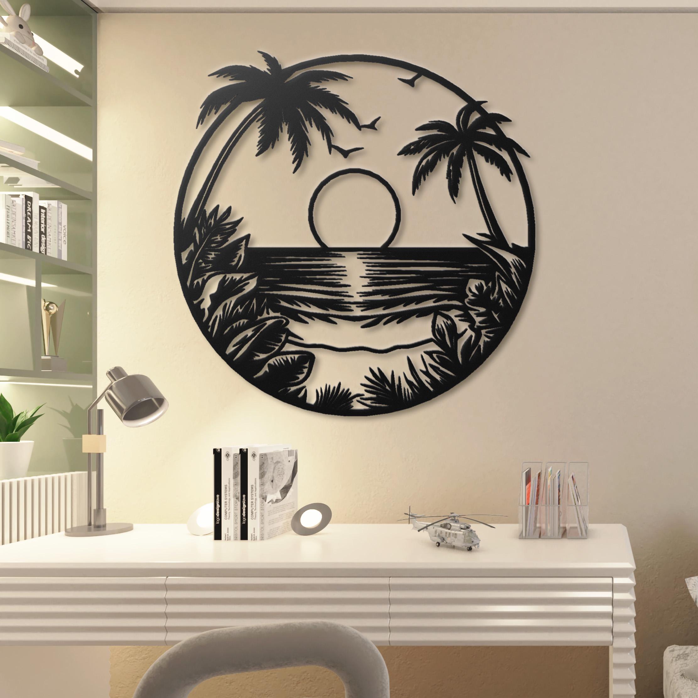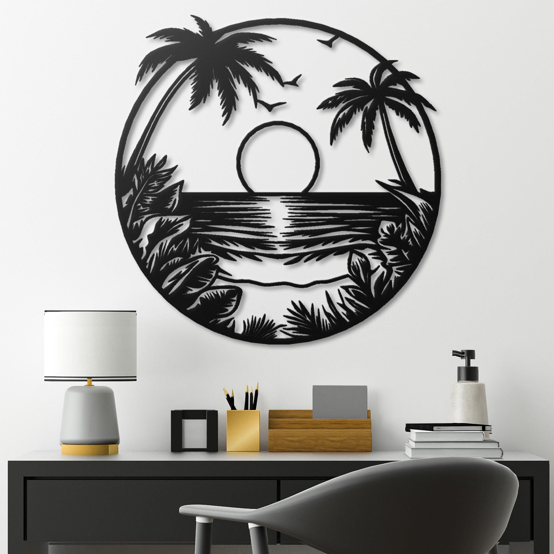 Tropical Sunset Metal Wall Art: Palm Tree Beach Decor, Coastal Accent