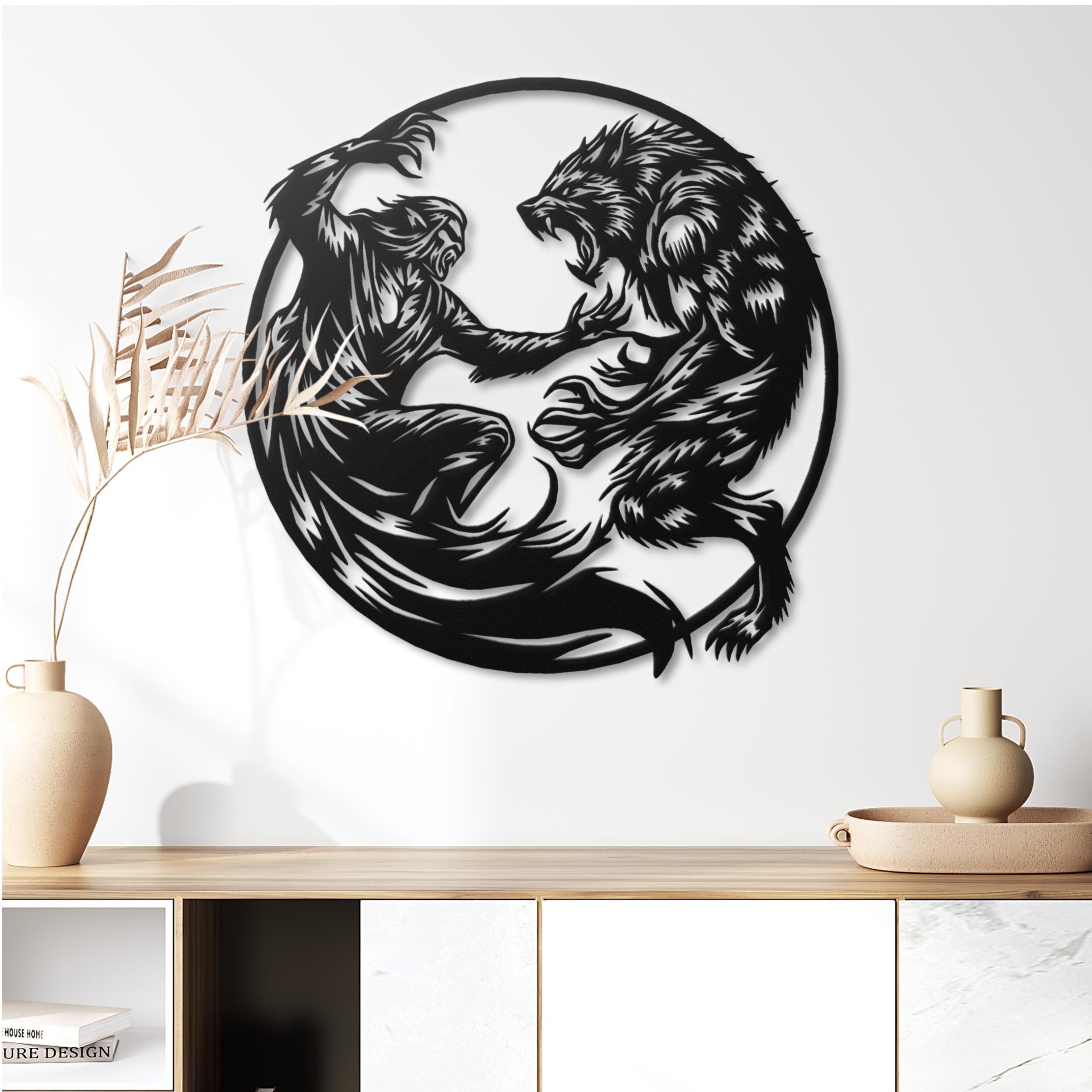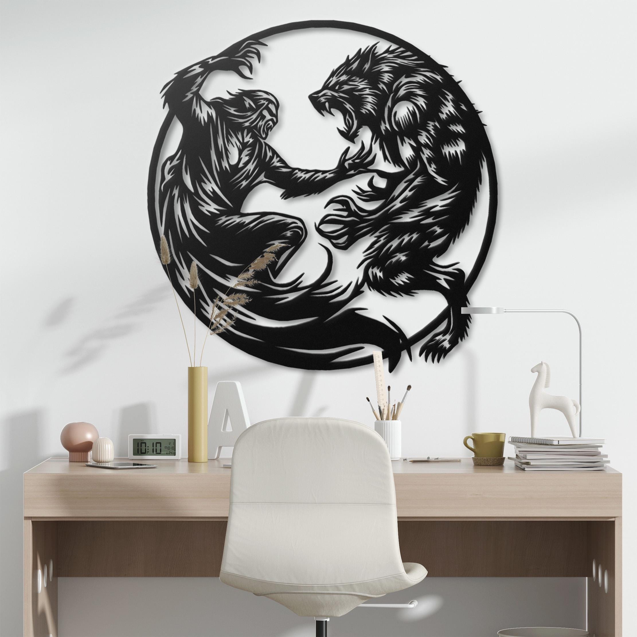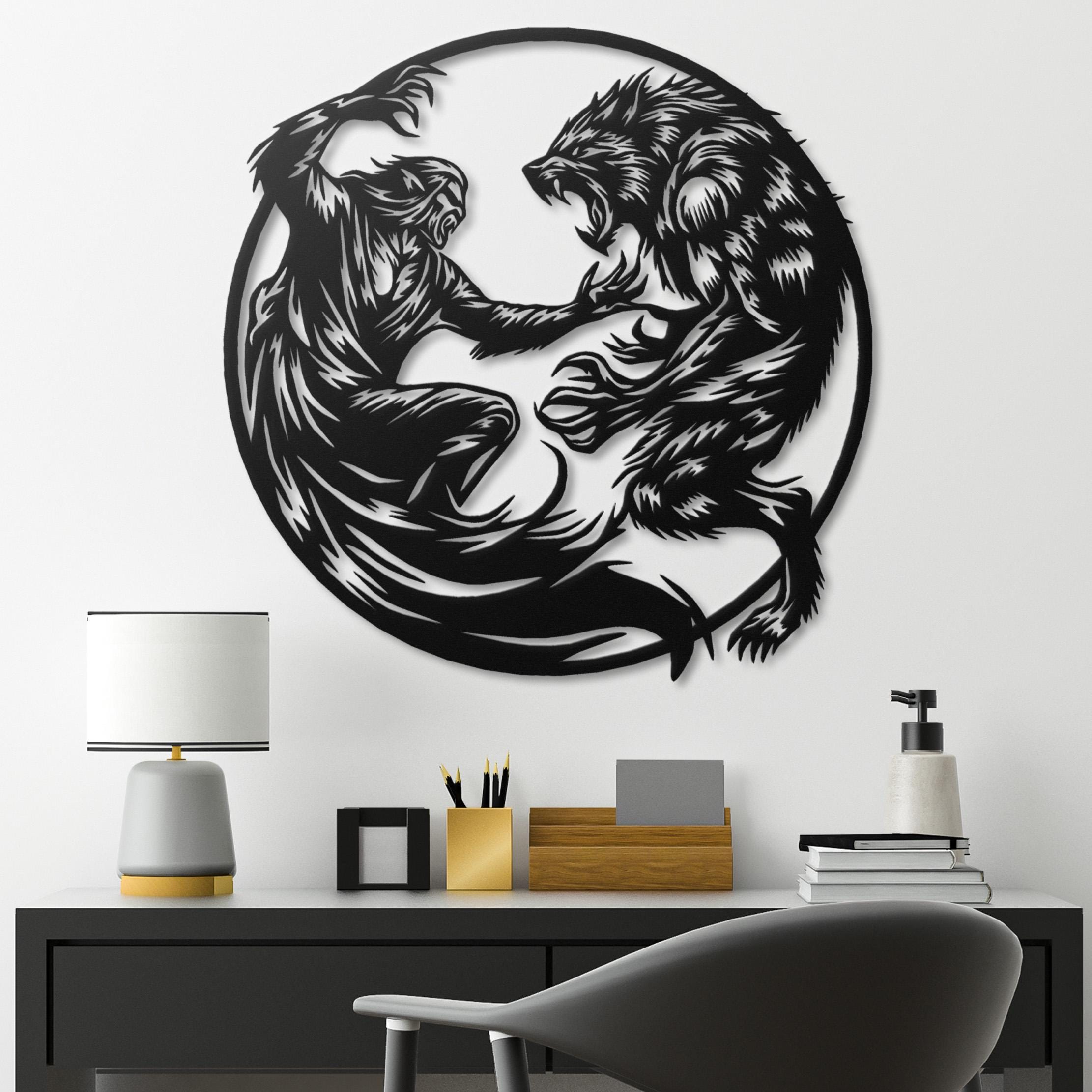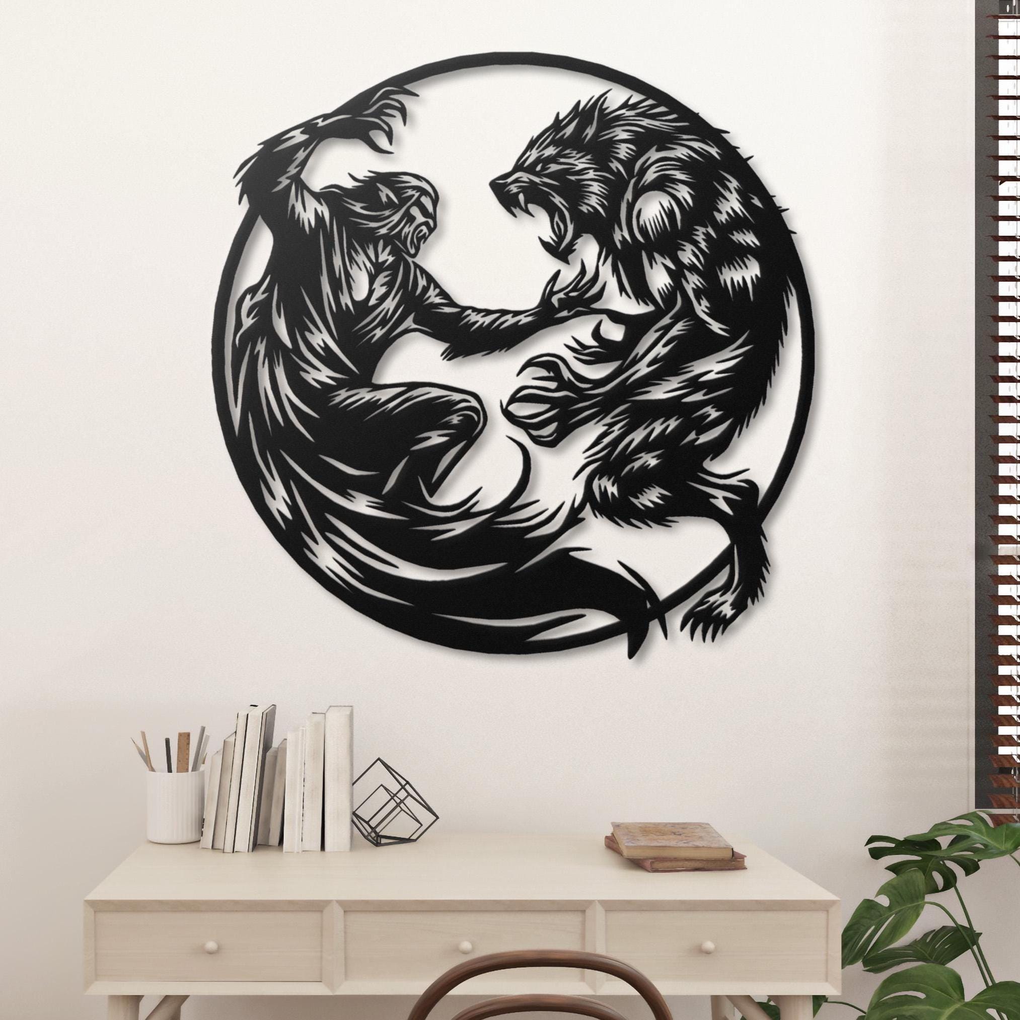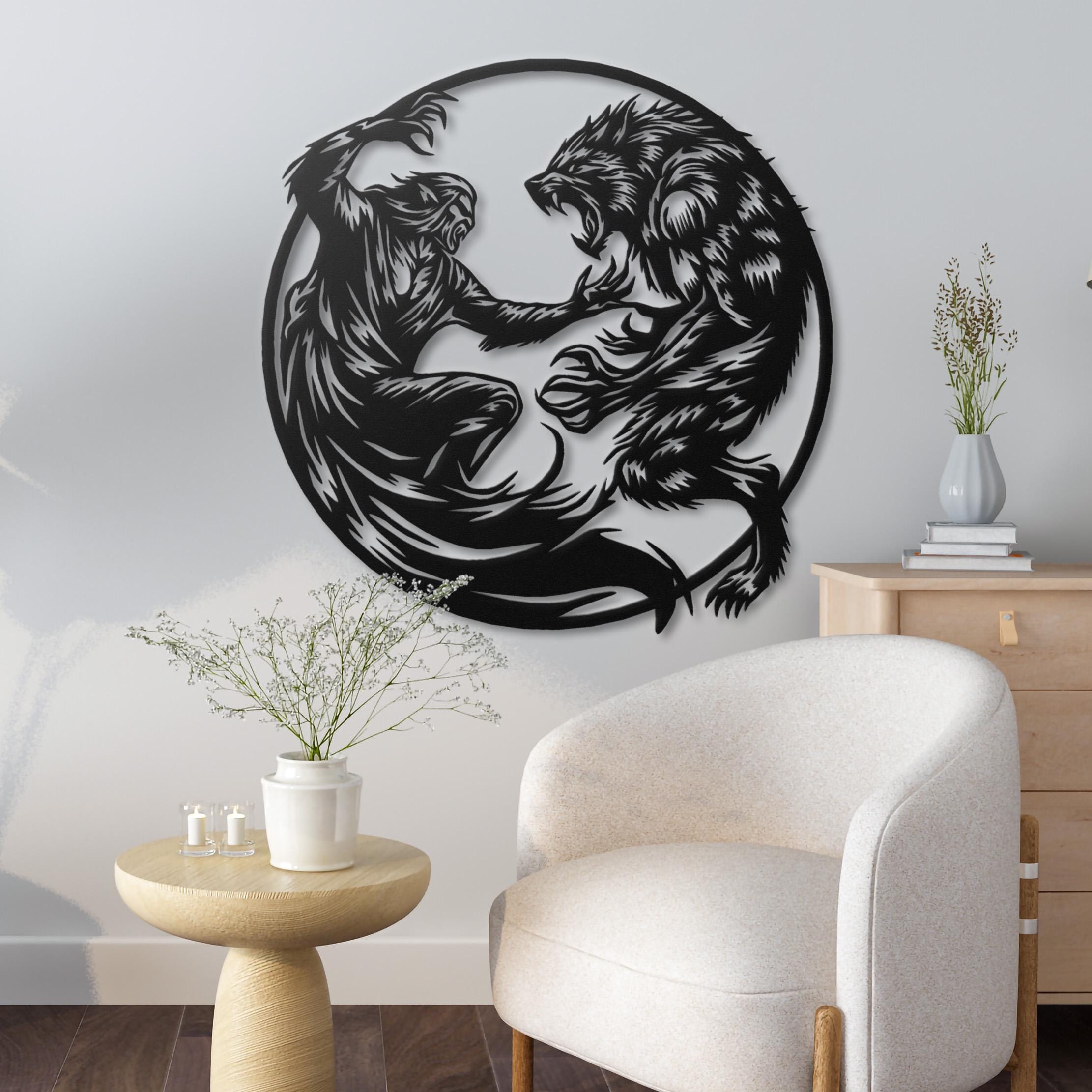 Vampire vs Werewolf Metal Wall Art β Gothic Fantasy Decor