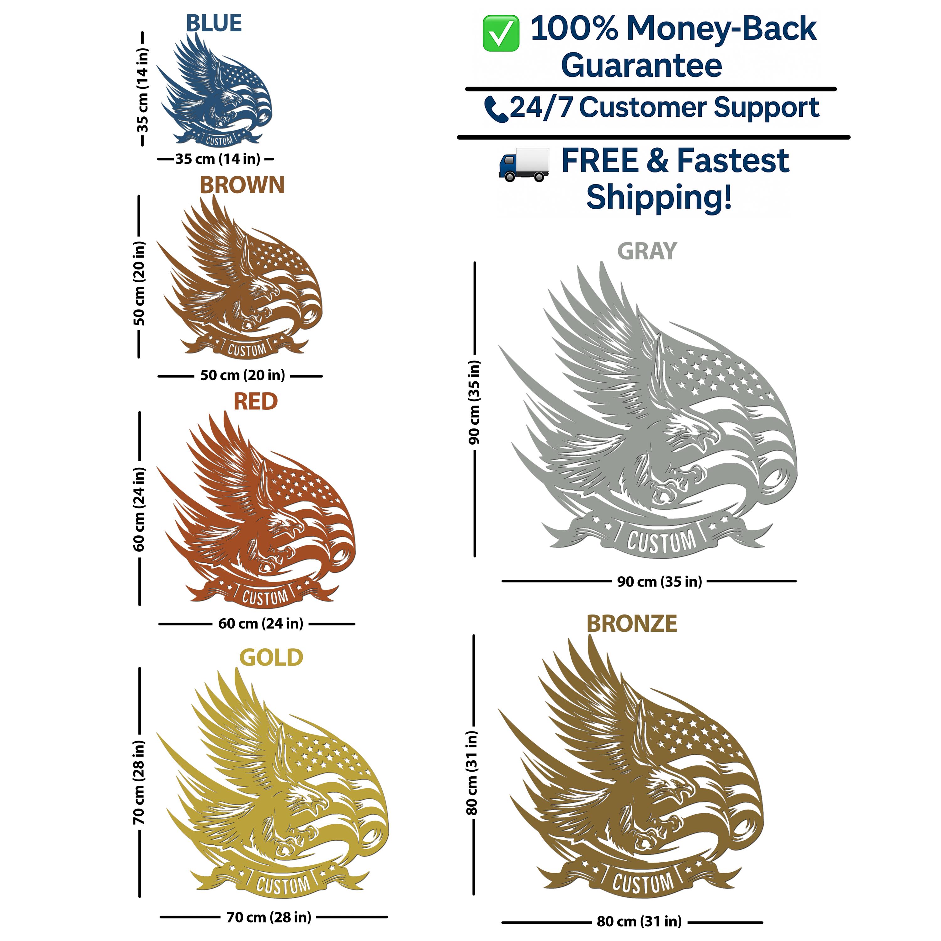 Unleash your patriotic spirit with this exquisite American Eagle Patriotic Metal Wall Art, featuring a majestic black and white eagle intertwined with a flowing USA flag. Ideal for those who cherish American values and wish to display them proudly in their homes or offices. π¦