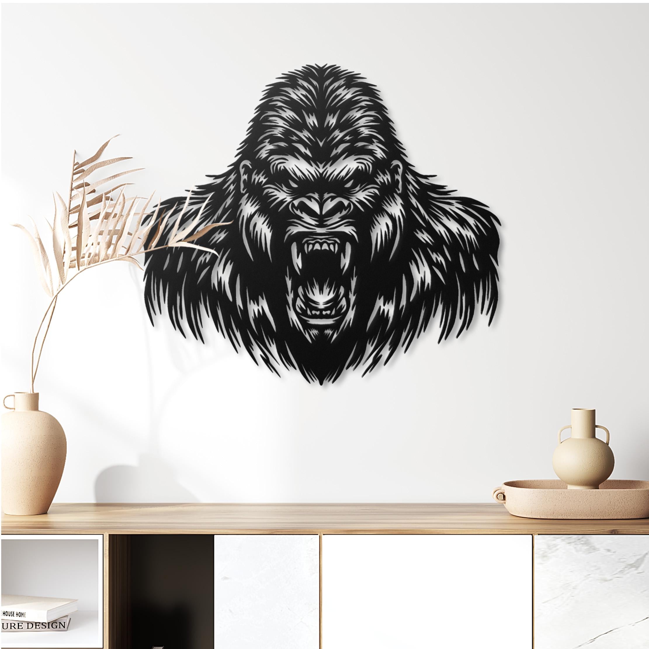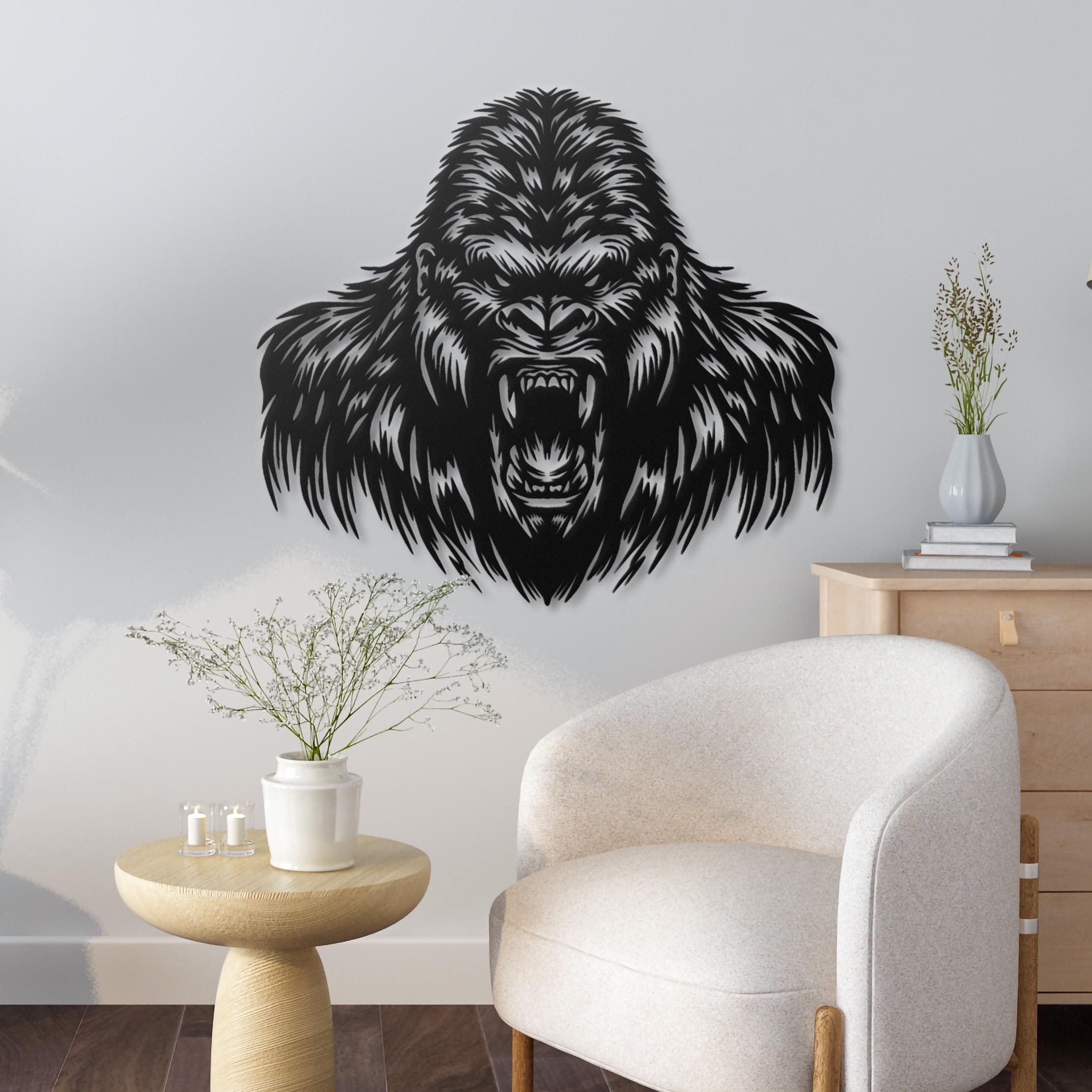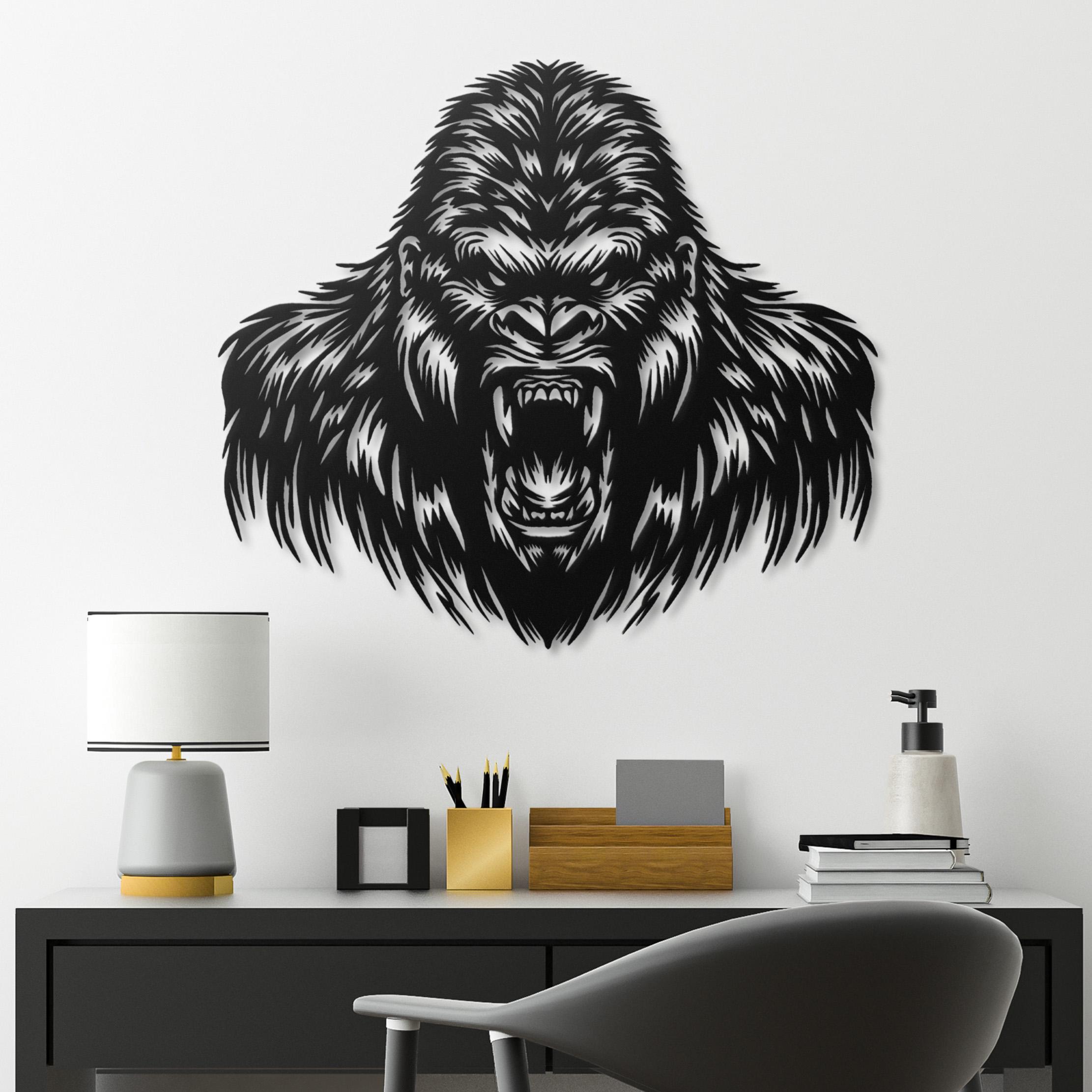 Fierce Gorilla Metal Wall Art: Powerful Animal Sculpture