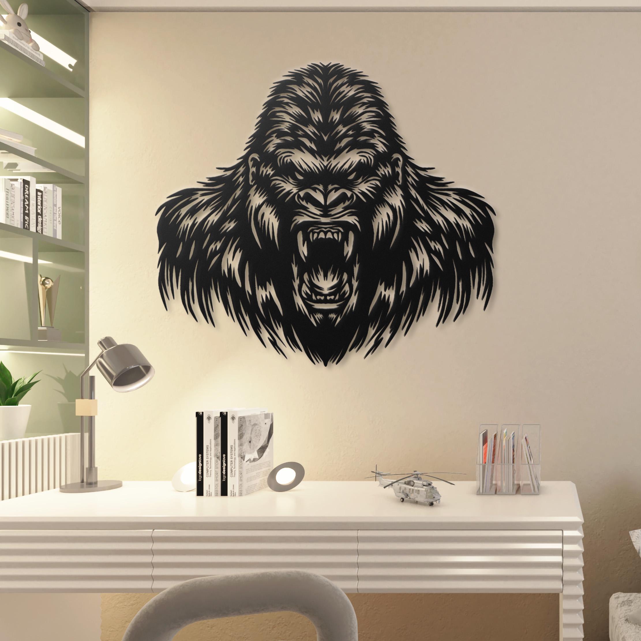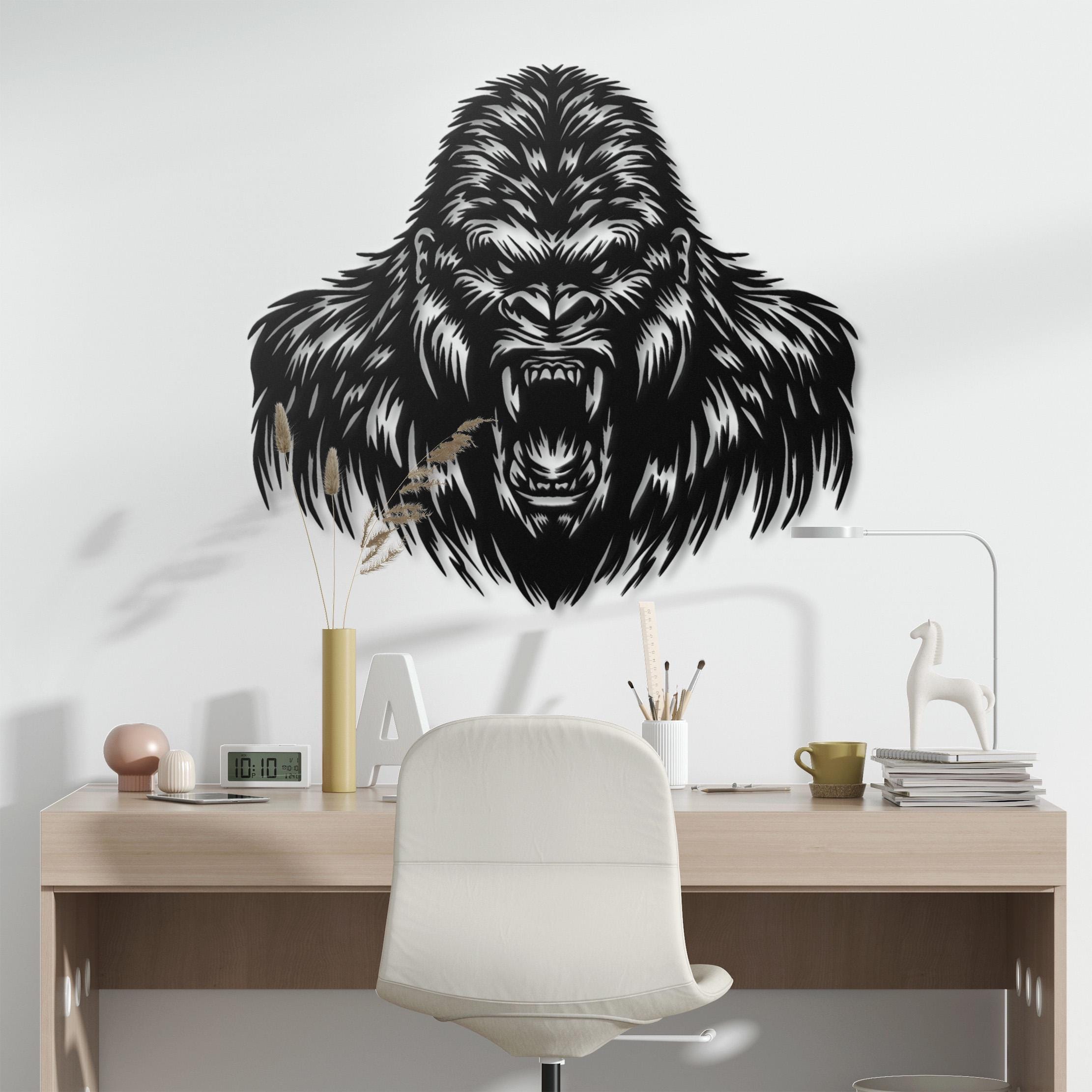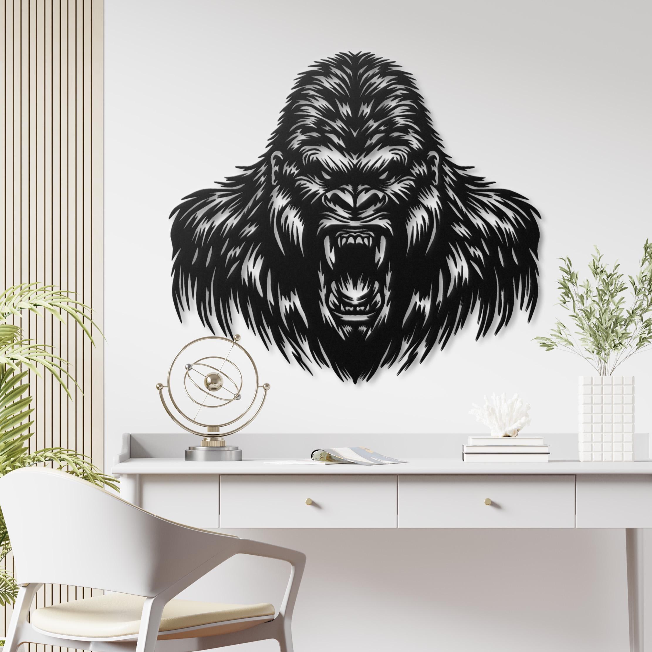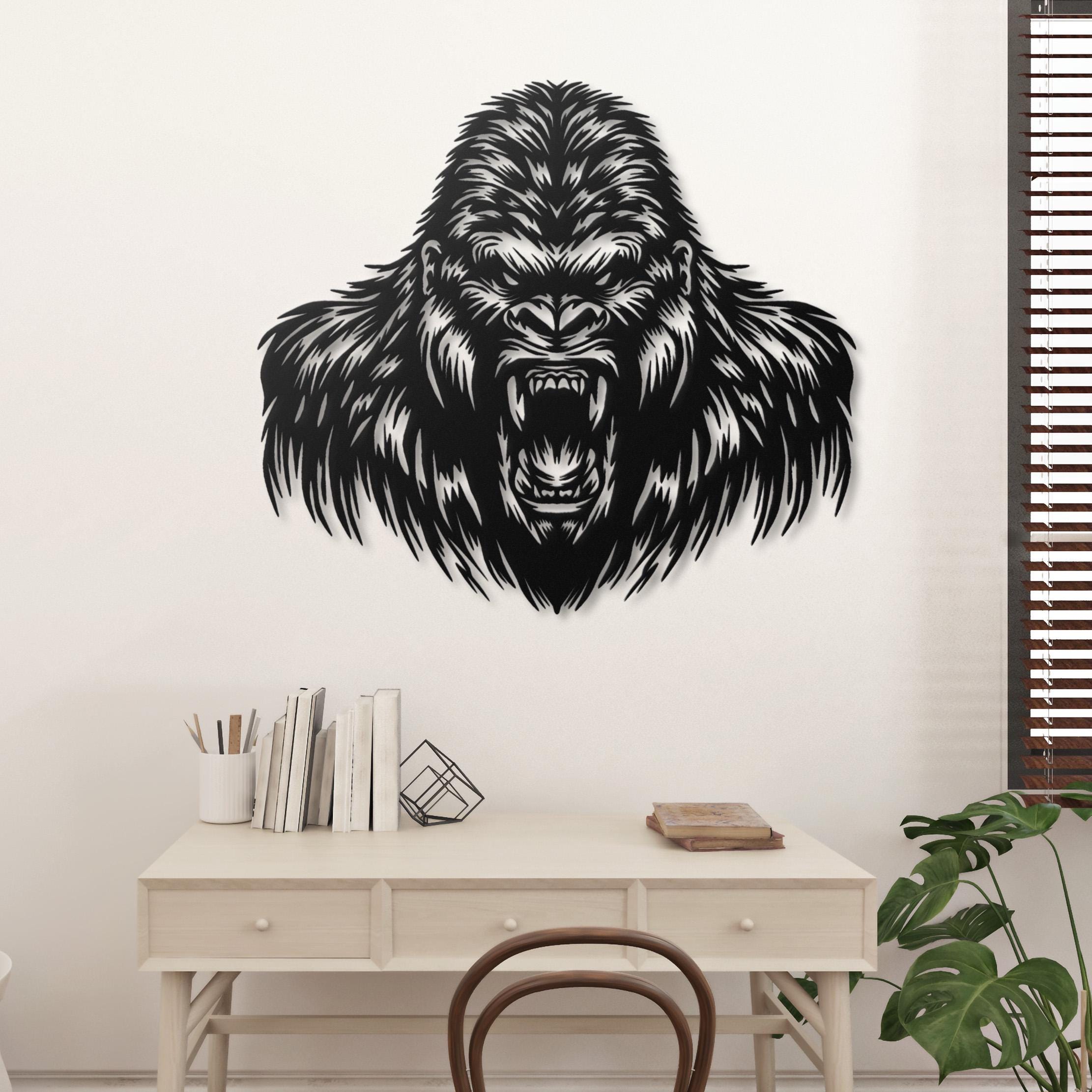 Fierce Gorilla Metal Wall Art: Powerful Animal Sculpture
