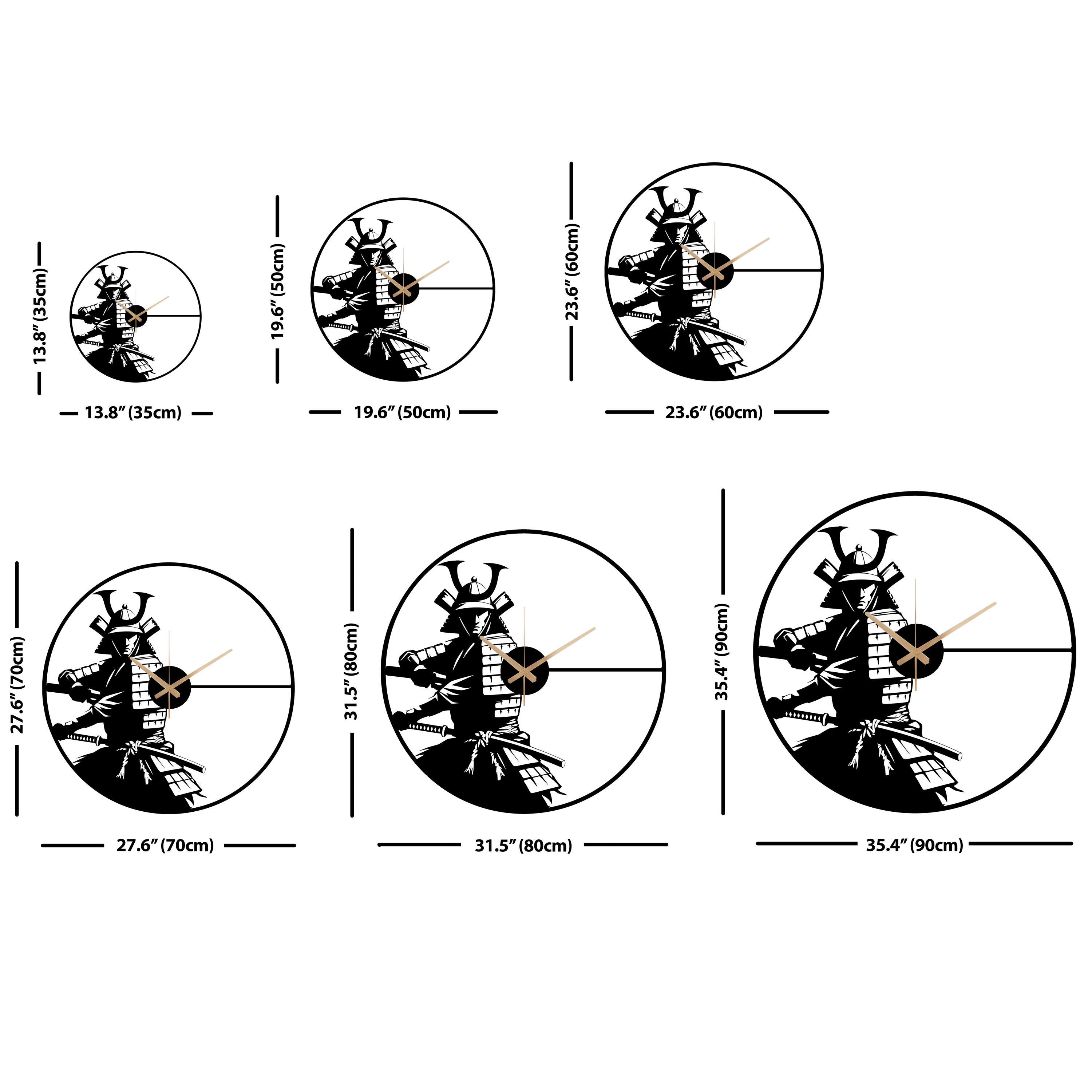 Samurai Warrior Metal Wall Clock - Japanese Wall Decor