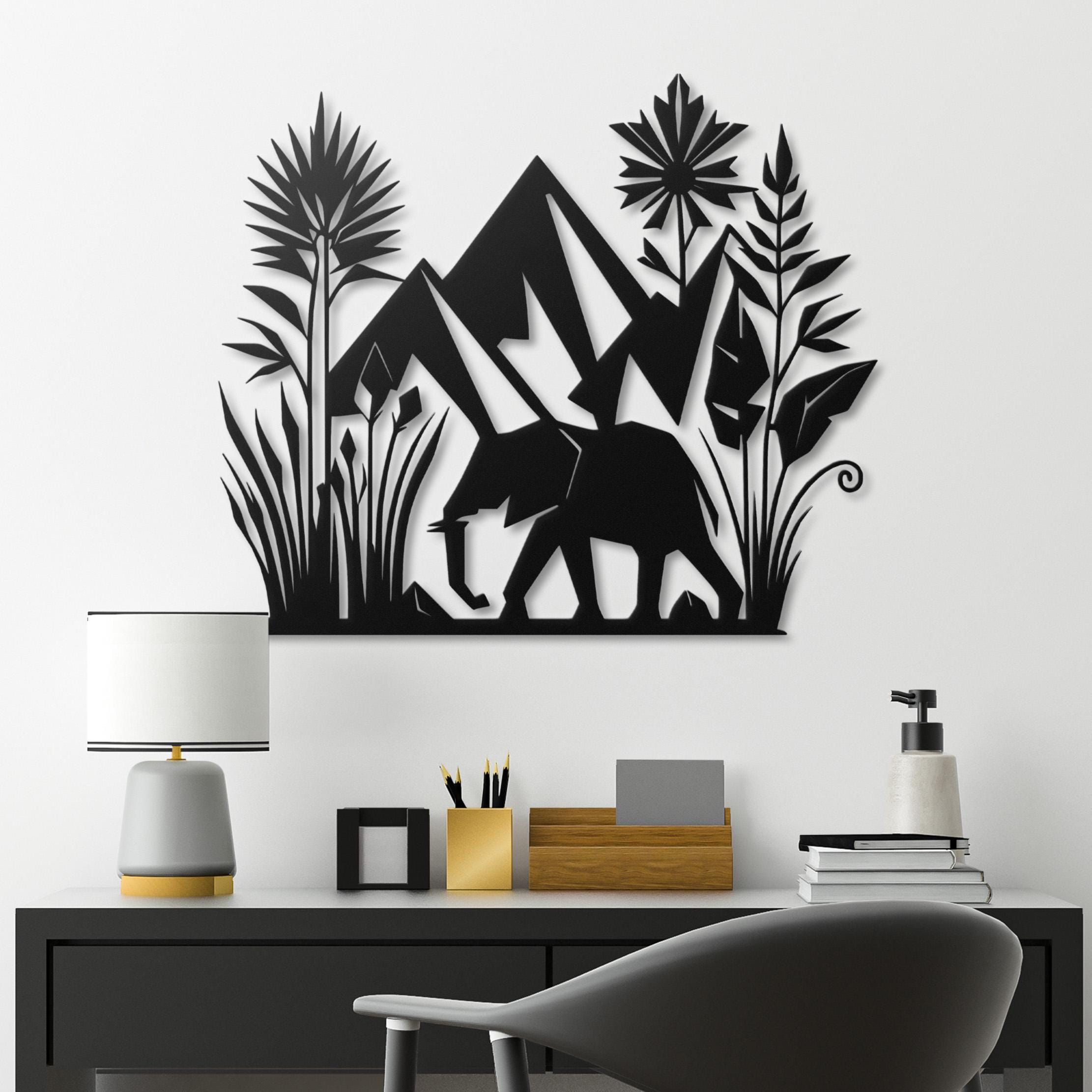Immerse yourself in the spirit of the wild with our Safari Silhouette Metal Wall Art, showcasing the majestic profile of an African elephant set against a backdrop of soaring mountains and tropical flora ππΏ. This piece brings the allure of an African safari into your home, capturing the essence of the continent's diverse landscapes and wildlife. It's an ideal choice for nature lovers and adventurers alike, seeking to infuse their space with the beauty of the natural world.