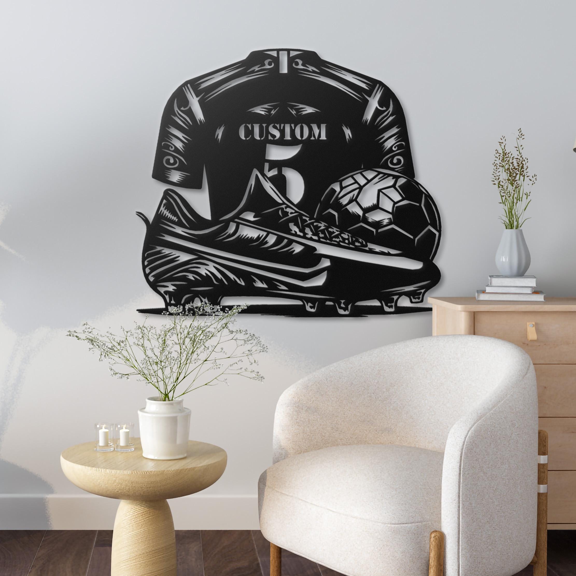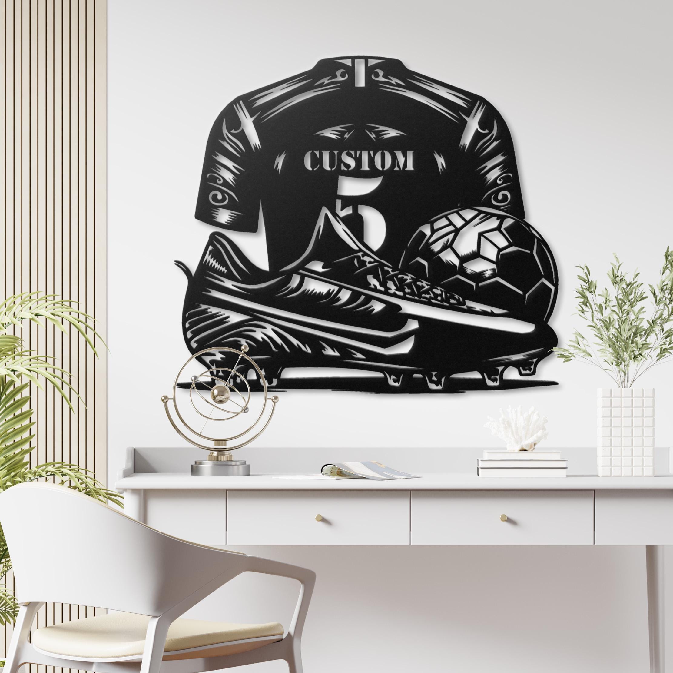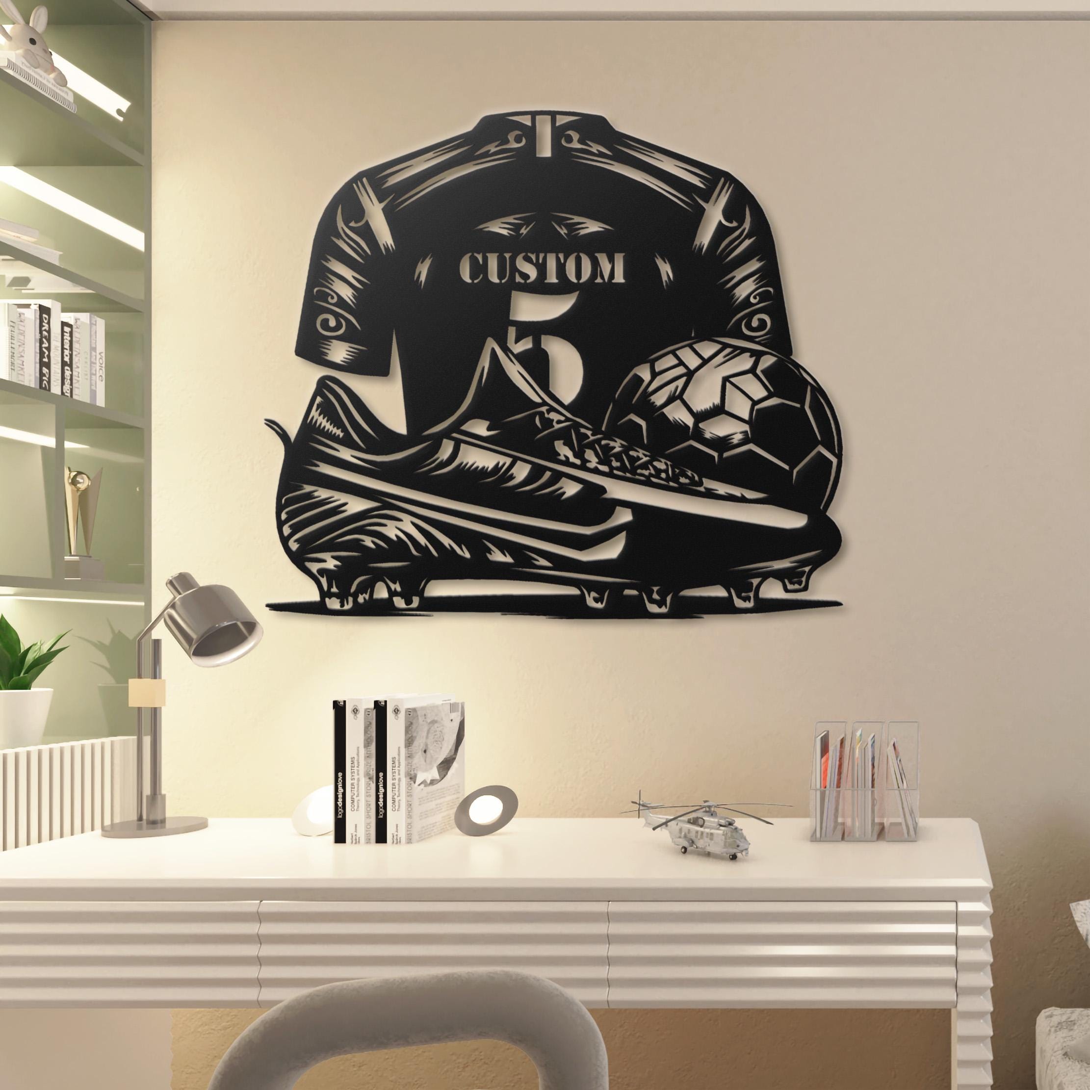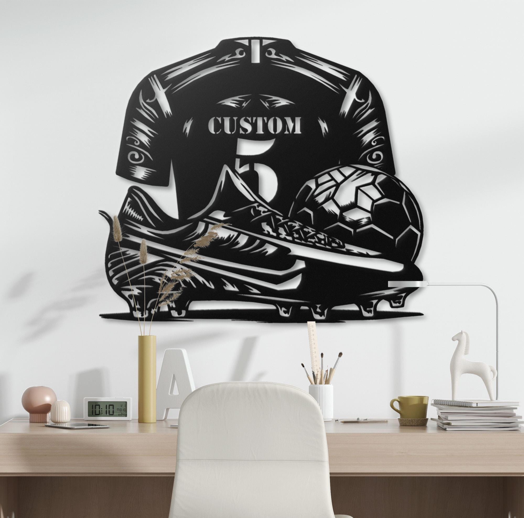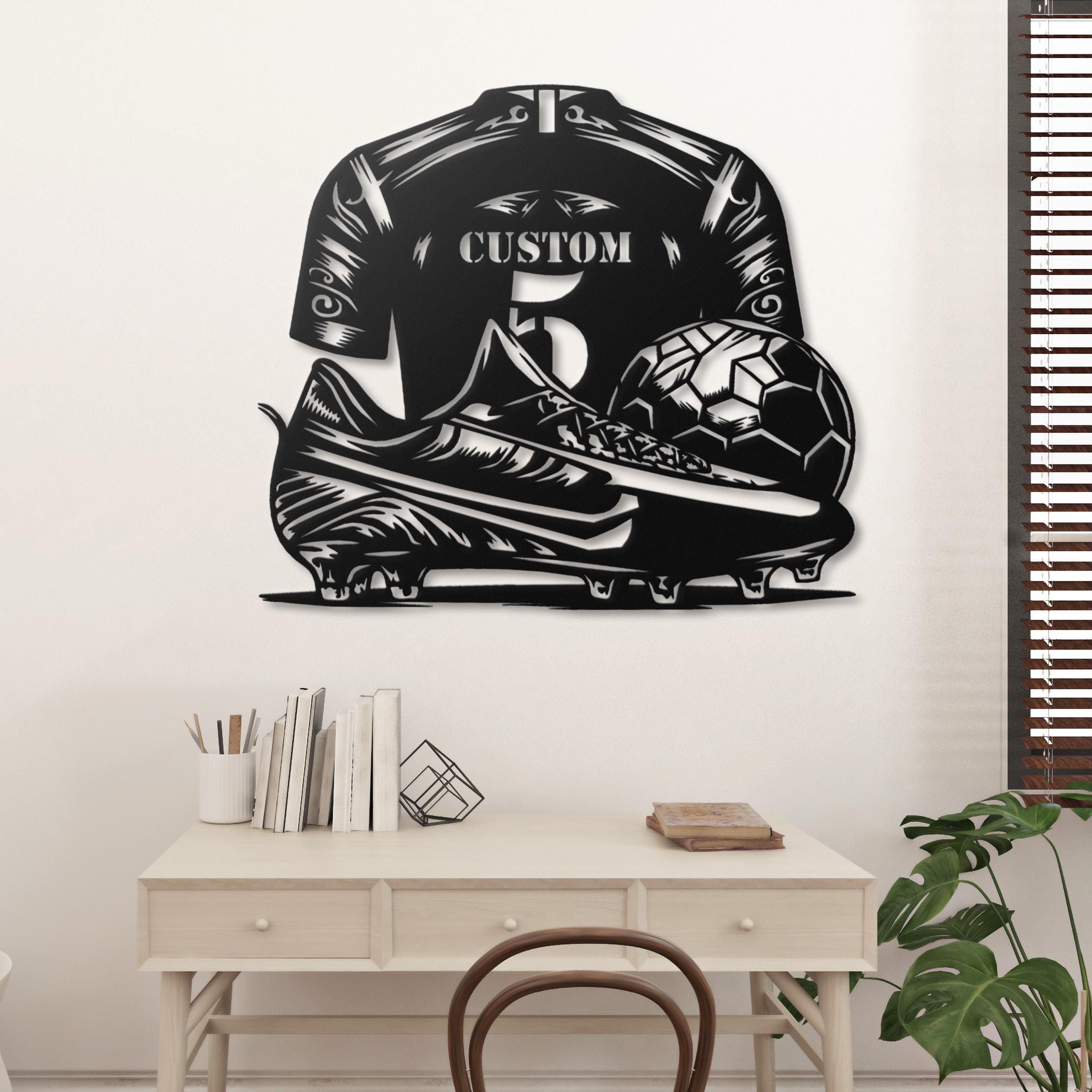 Personalized Soccer Jersey and Cleats Metal Wall Art – Customizable Football Decor, Sports Fan Gift