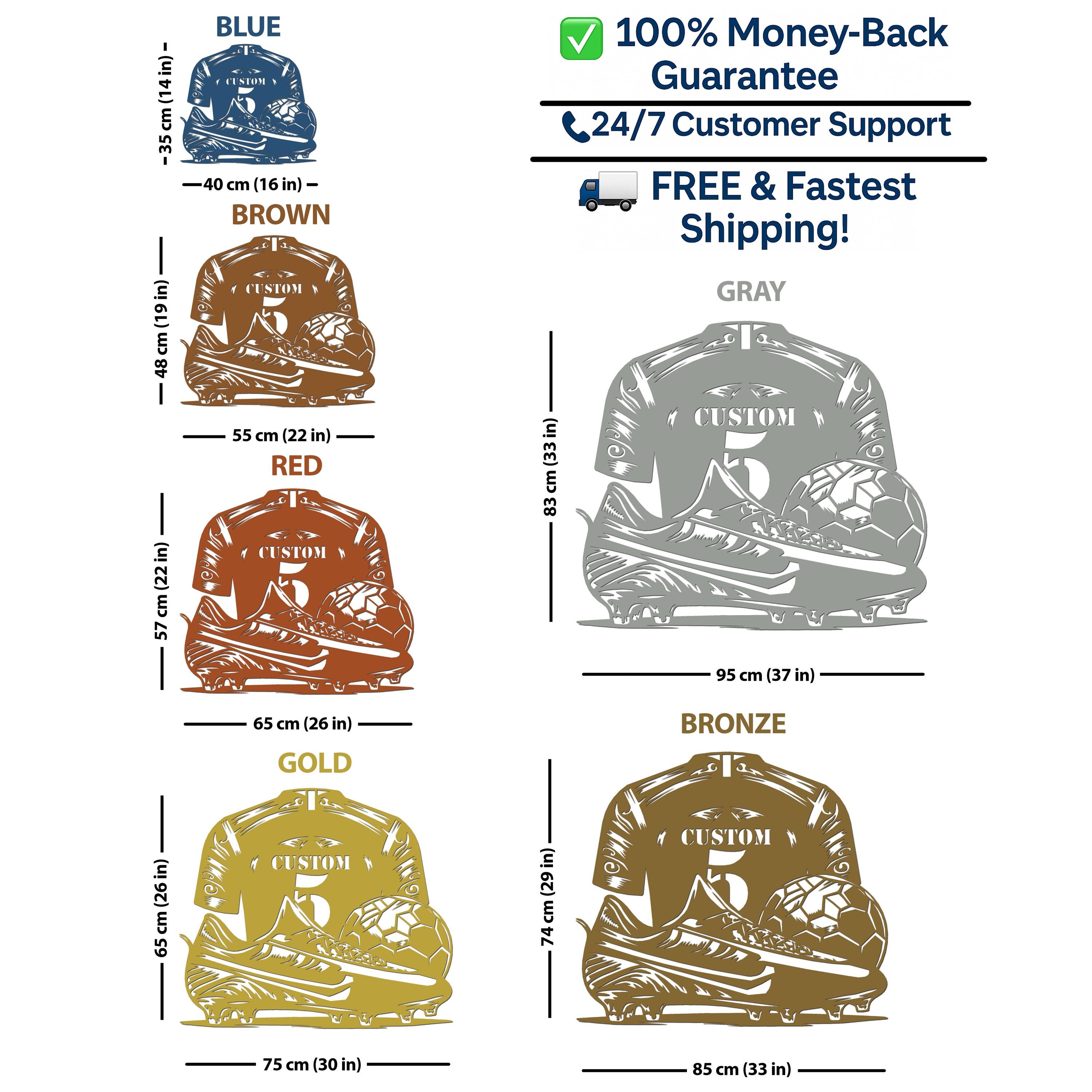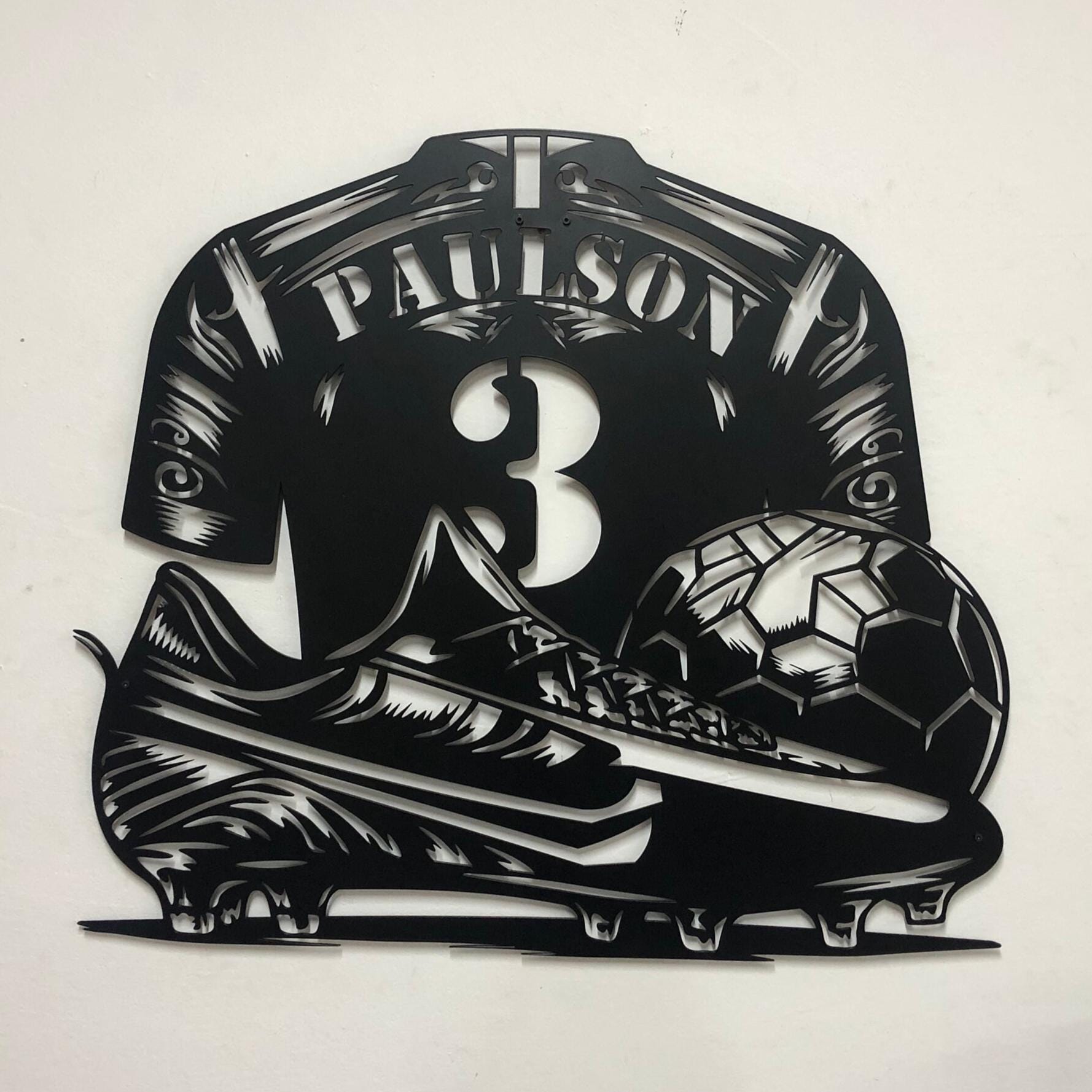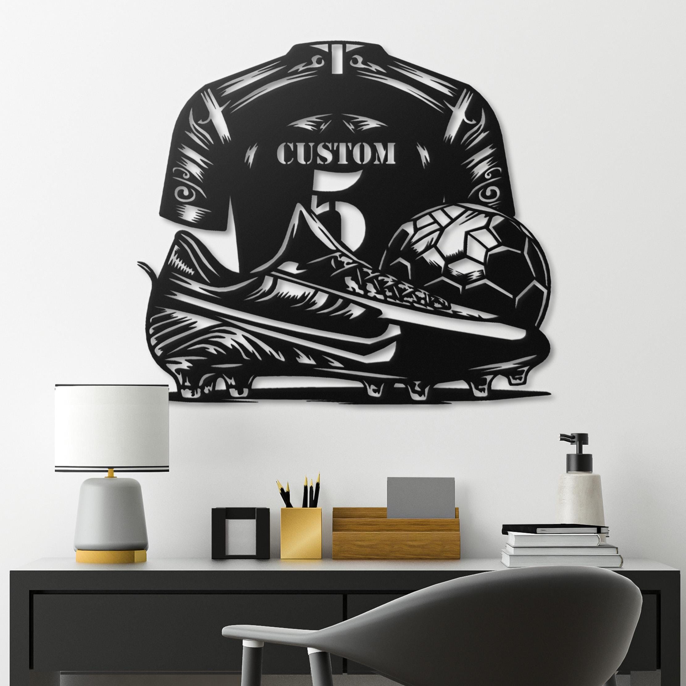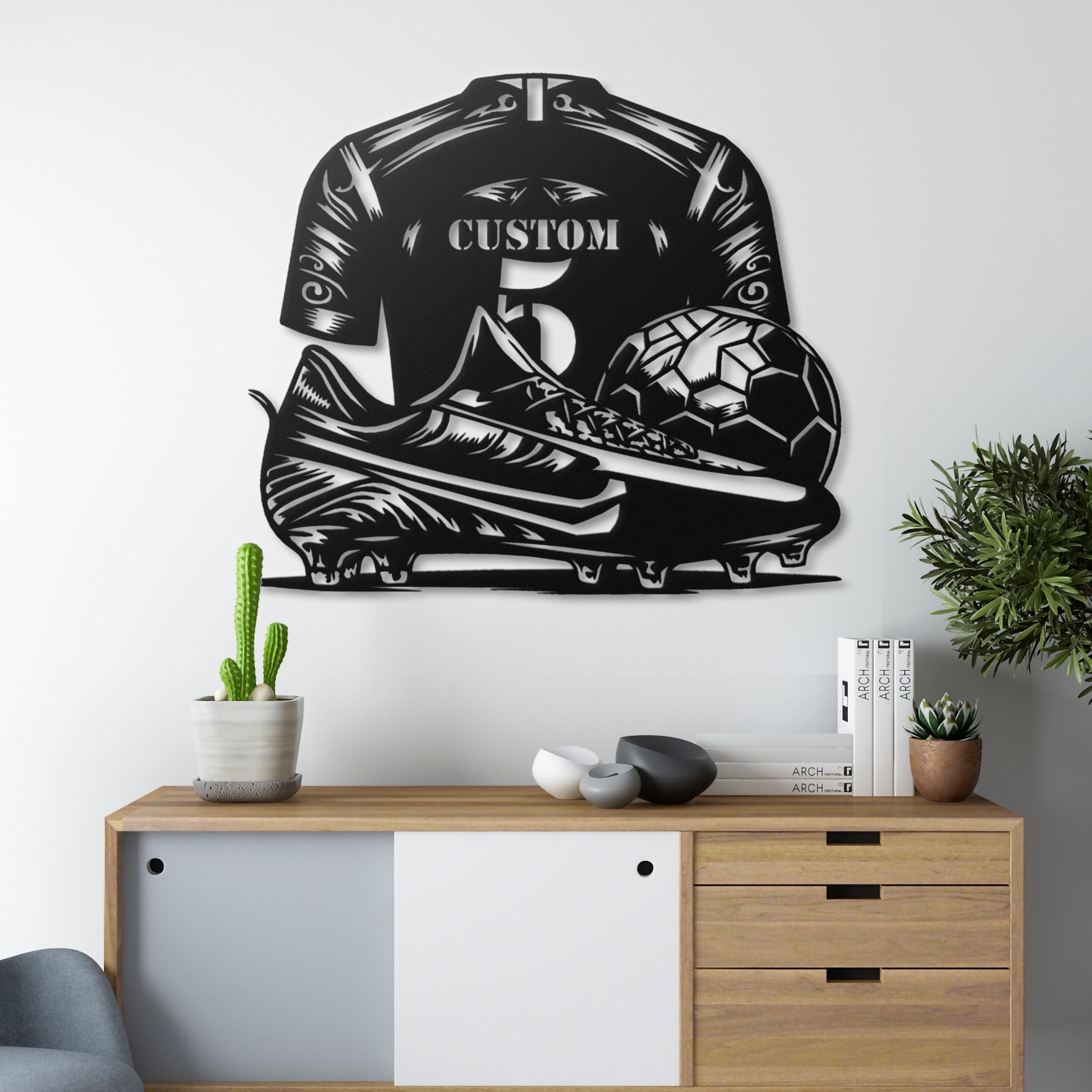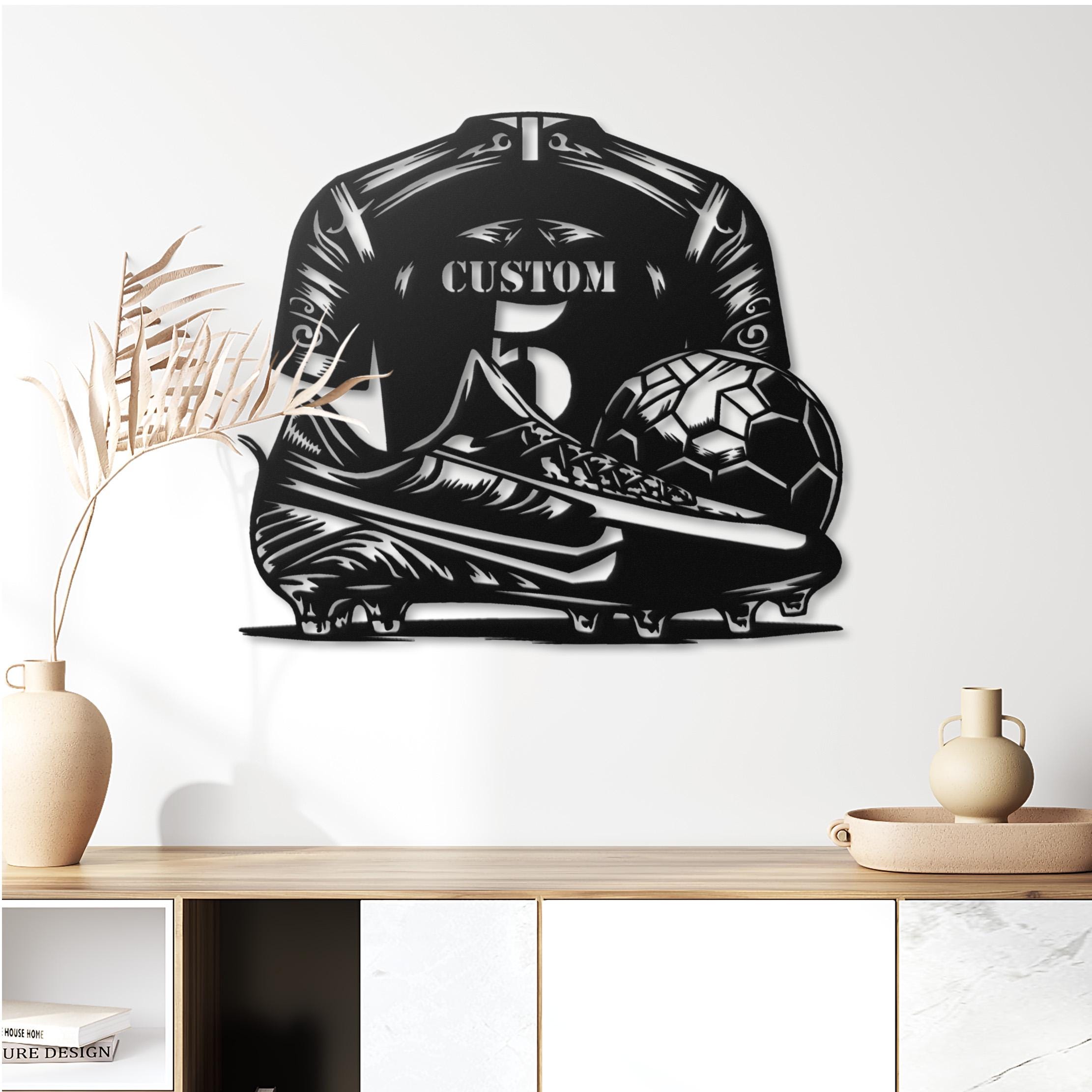 Personalized Soccer Jersey and Cleats Metal Wall Art – Customizable Football Decor, Sports Fan Gift