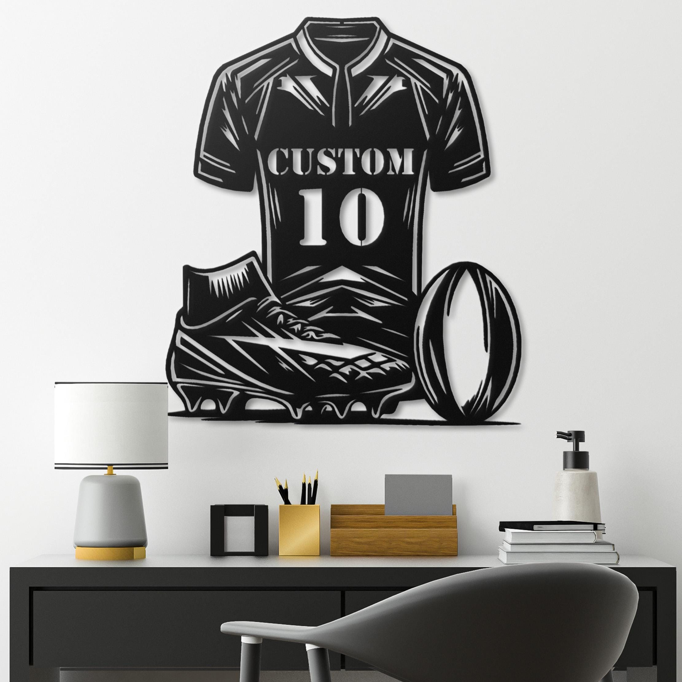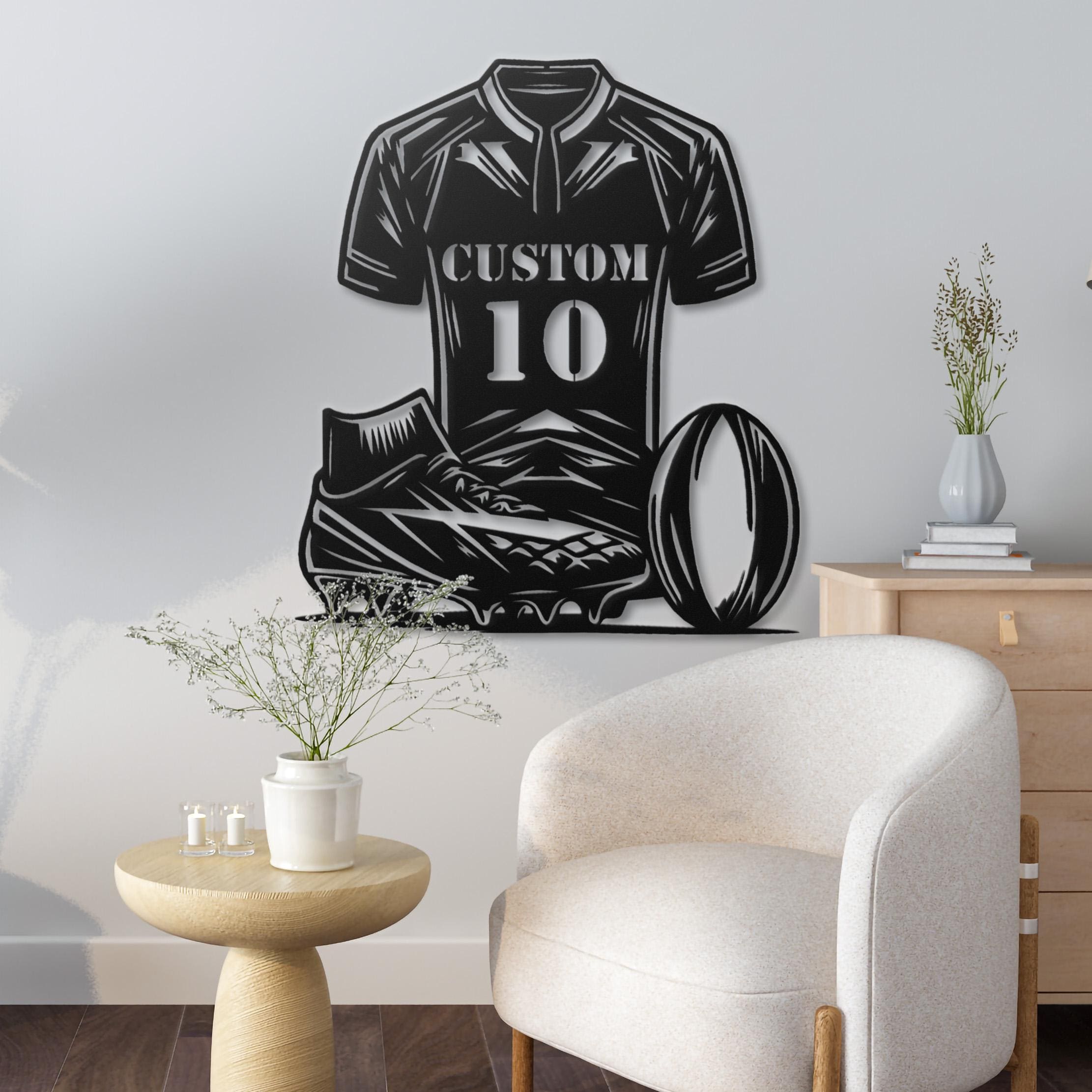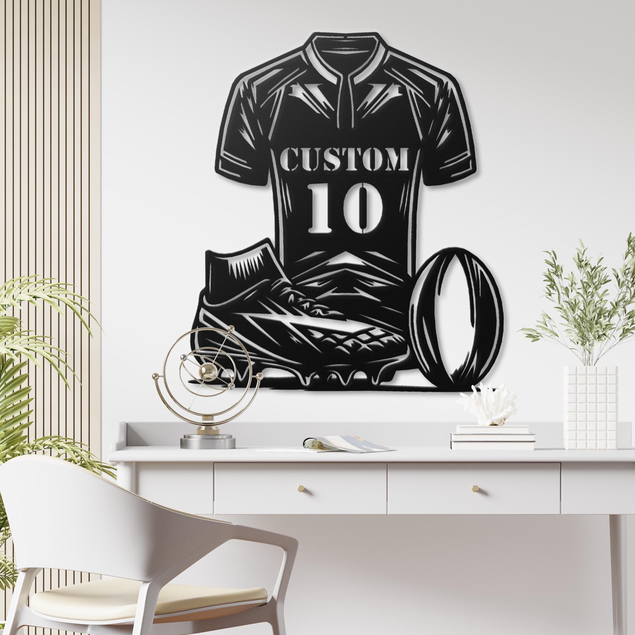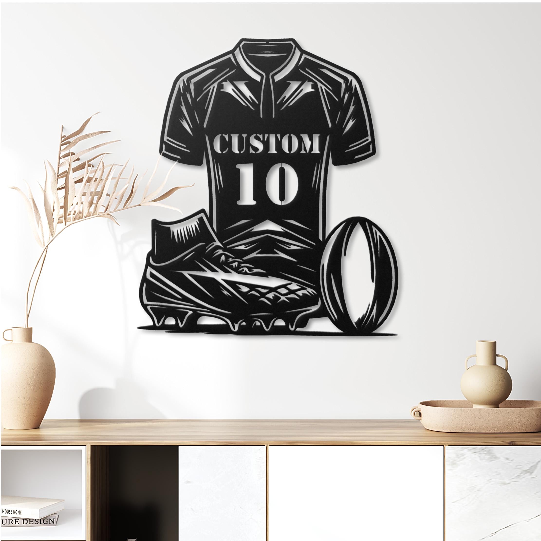 Show your love for rugby with our Custom Rugby Jersey, Cleats, and Ball Metal Wall Art π. This impressive piece features a personalized jersey, rugged cleats, and a detailed rugby ball, making it a standout addition to any fan's collection or a playerβs home.