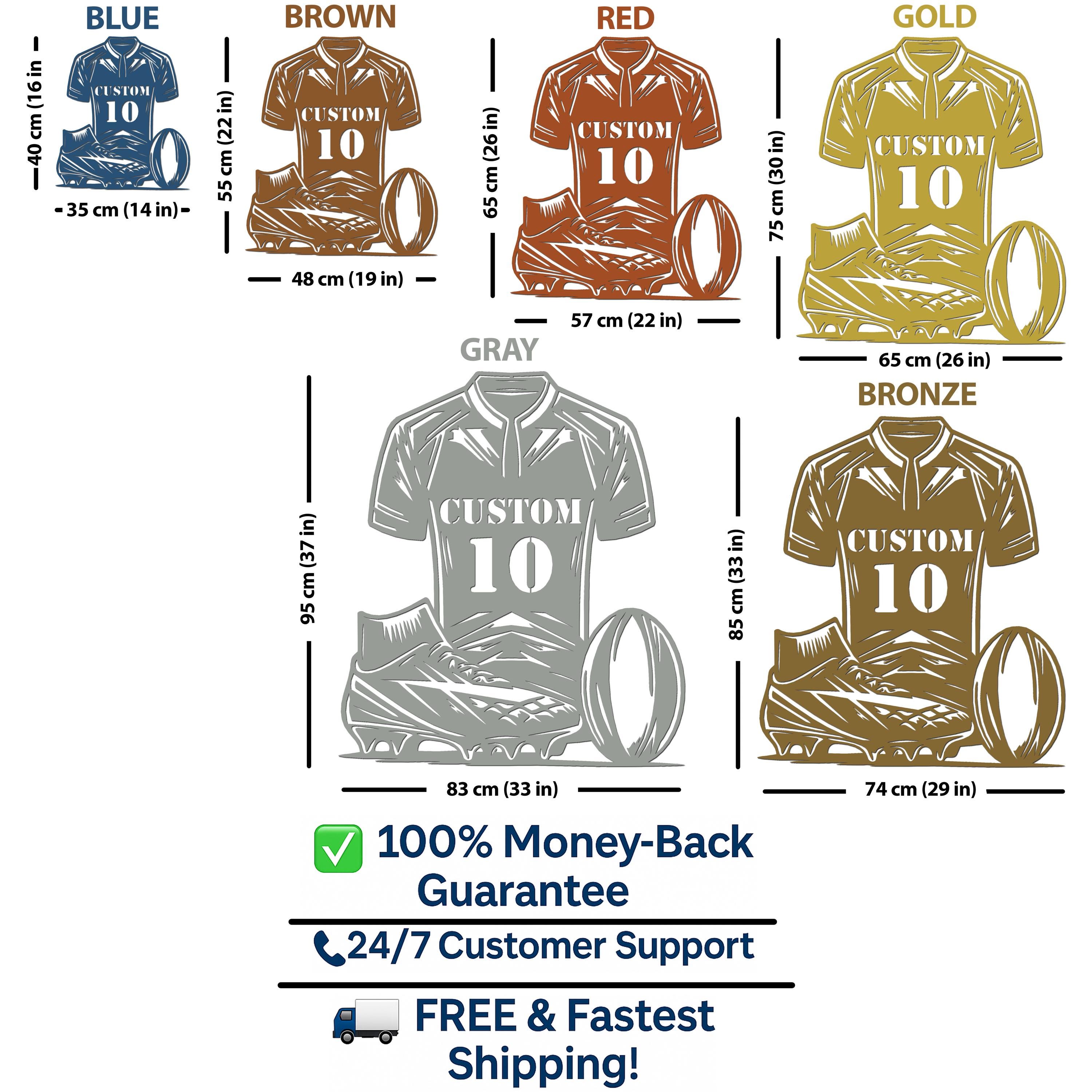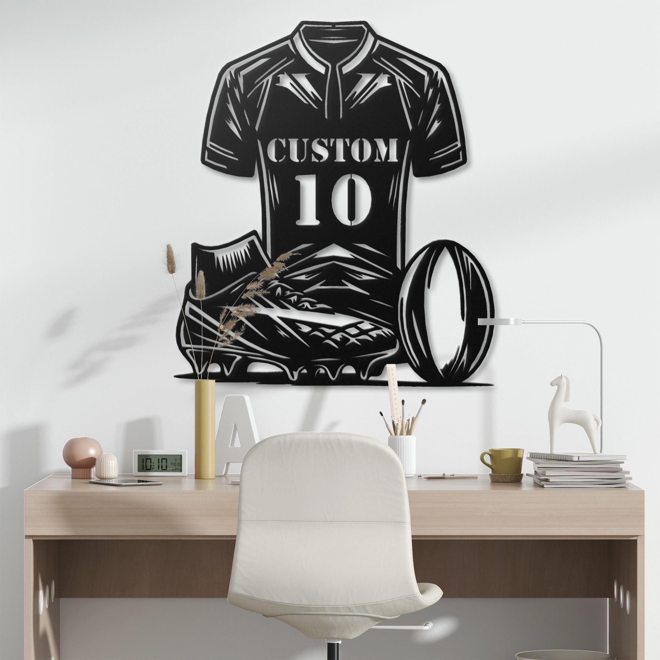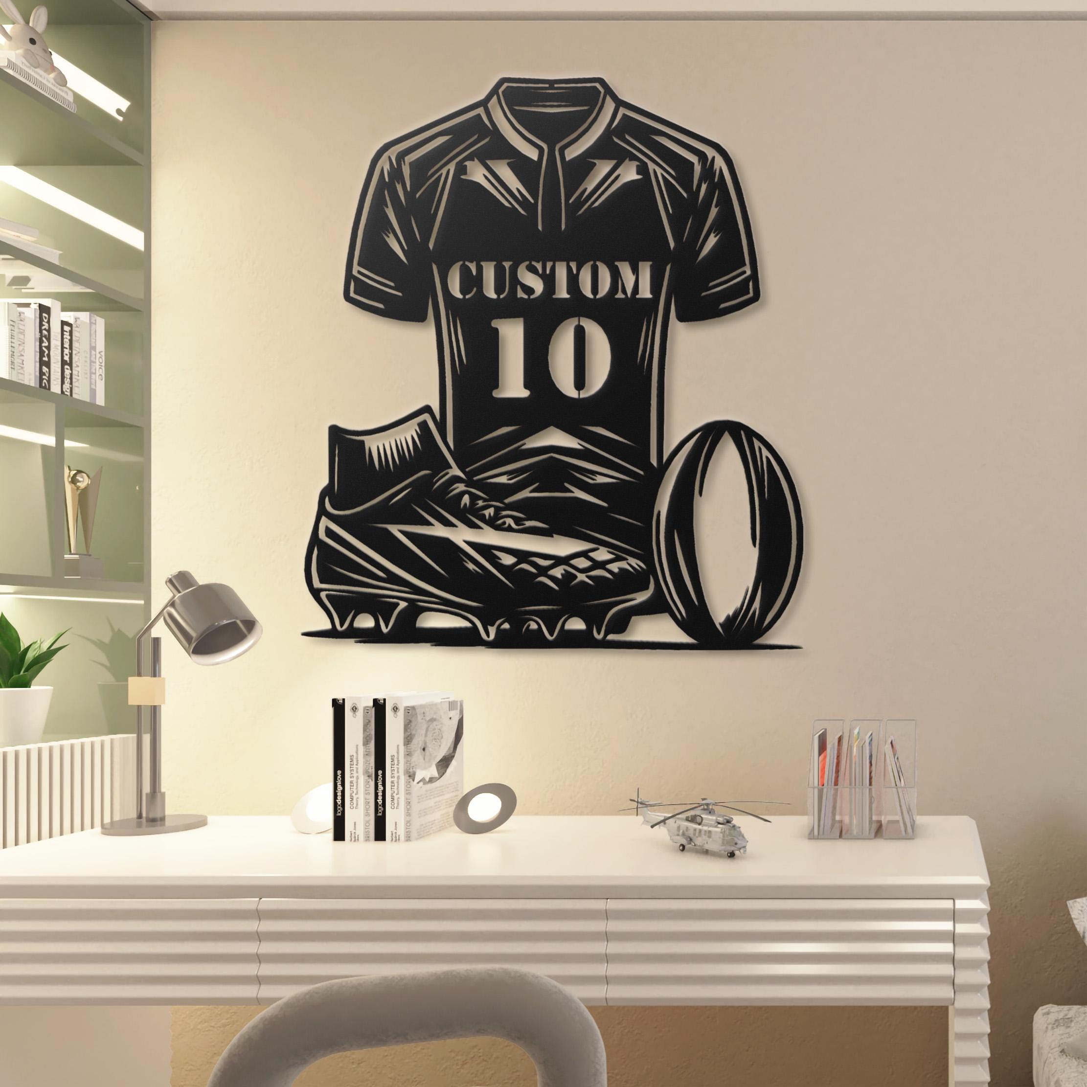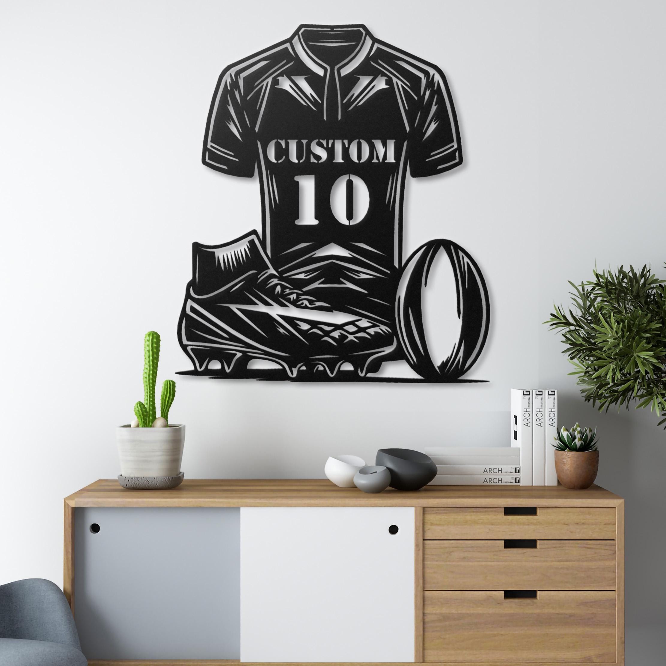 Show your love for rugby with our Custom Rugby Jersey, Cleats, and Ball Metal Wall Art π. This impressive piece features a personalized jersey, rugged cleats, and a detailed rugby ball, making it a standout addition to any fan's collection or a playerβs home.