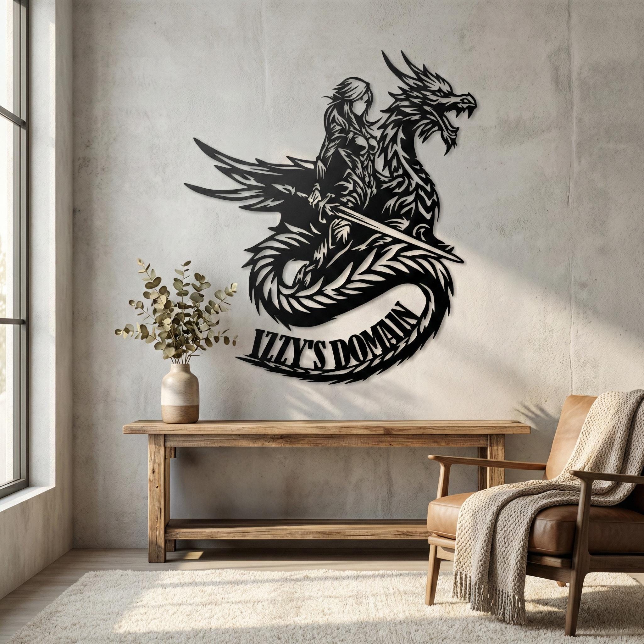 β¨ Bring the fierce spirit of a female knight and her dragon to your space with this stunning custom metal wall art. Perfect for lovers of medieval fantasy and epic tales! πβοΈ