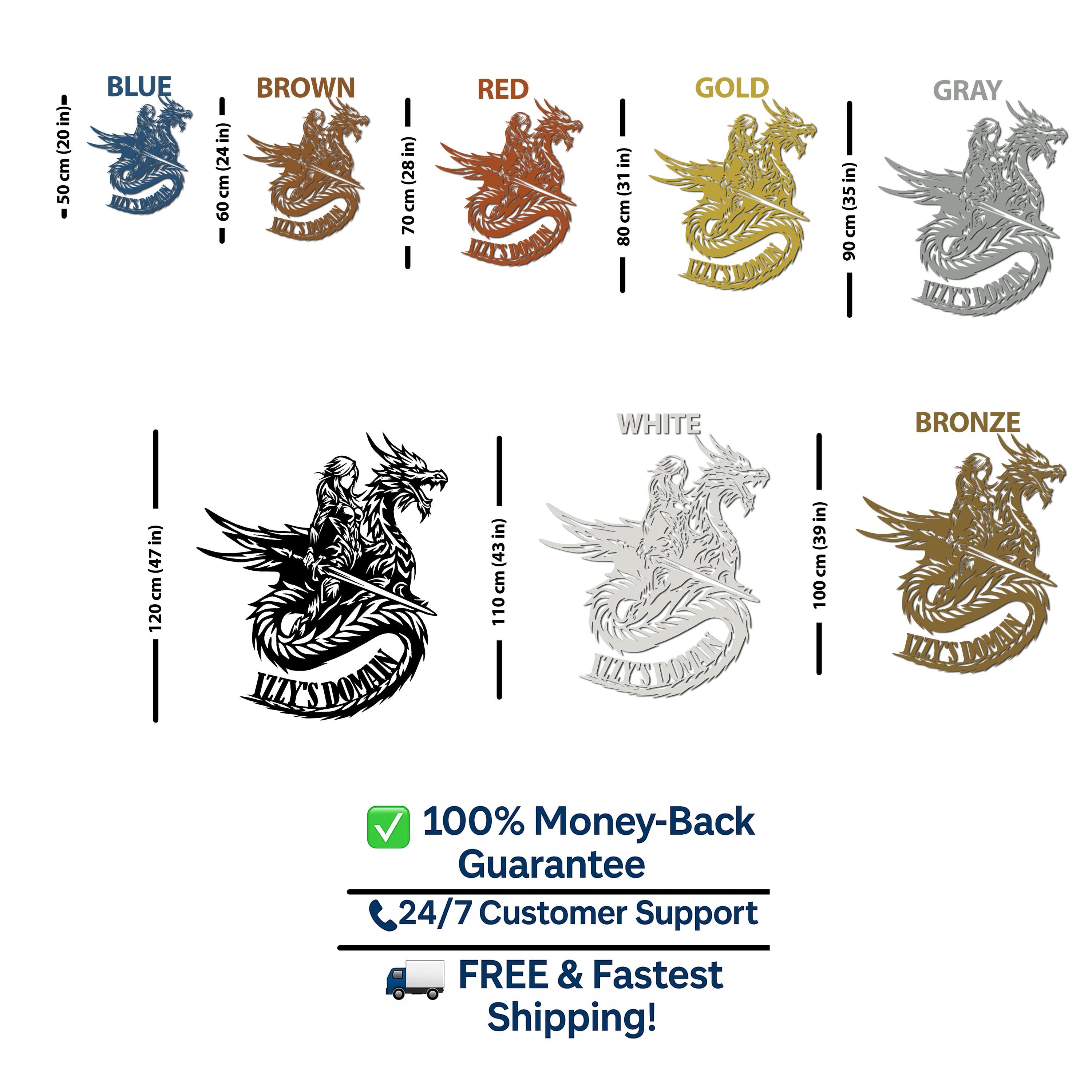Personalized Female Knight Riding Dragon Metal Wall Art | Fantasy Home Wall Decor