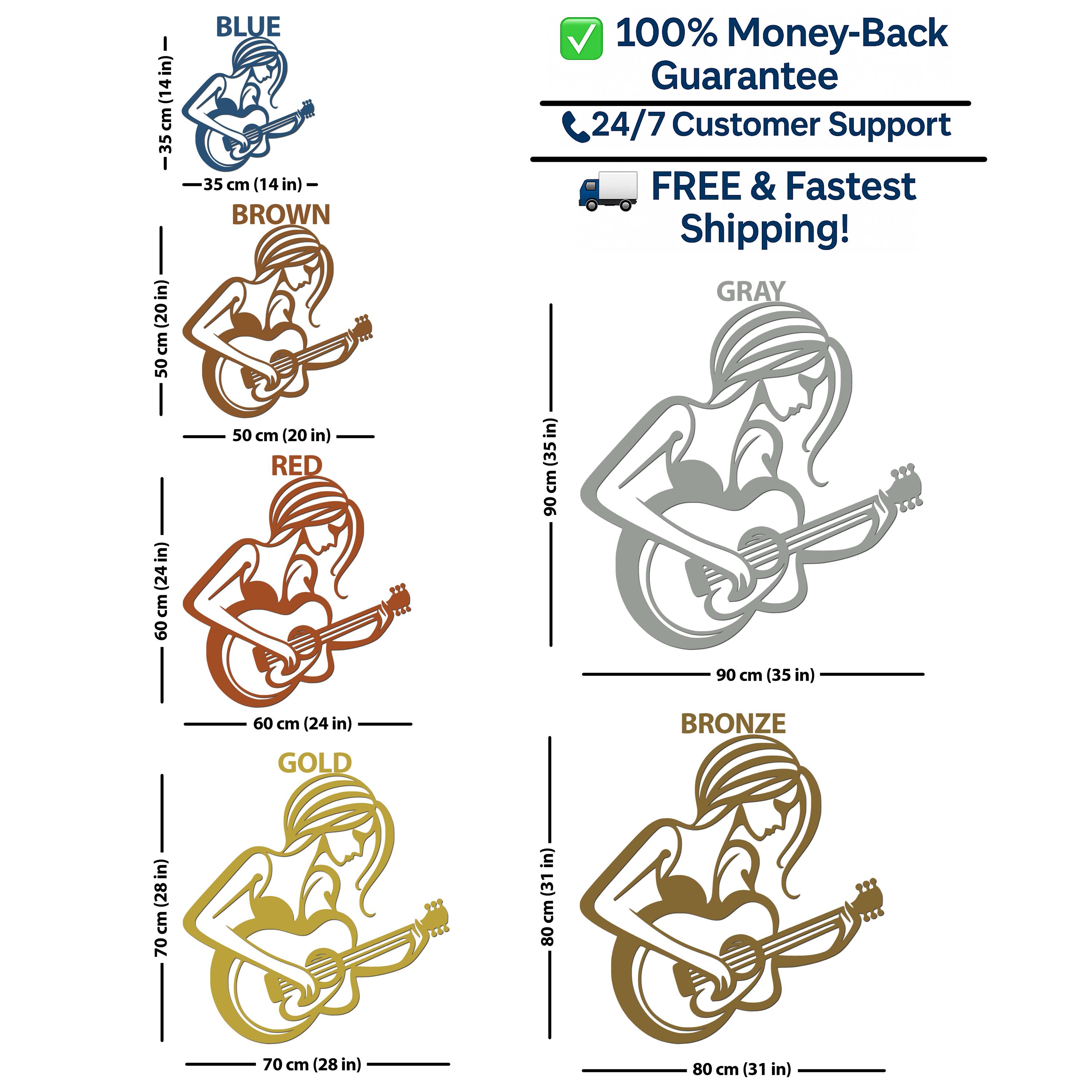 Enhance your space with this stunning metal wall art featuring a female guitarist in a minimalist design. Perfect for adding a touch of elegance to your home, studio, or office. This unique piece is not just a decoration but a statement of your love for music. ๐ต