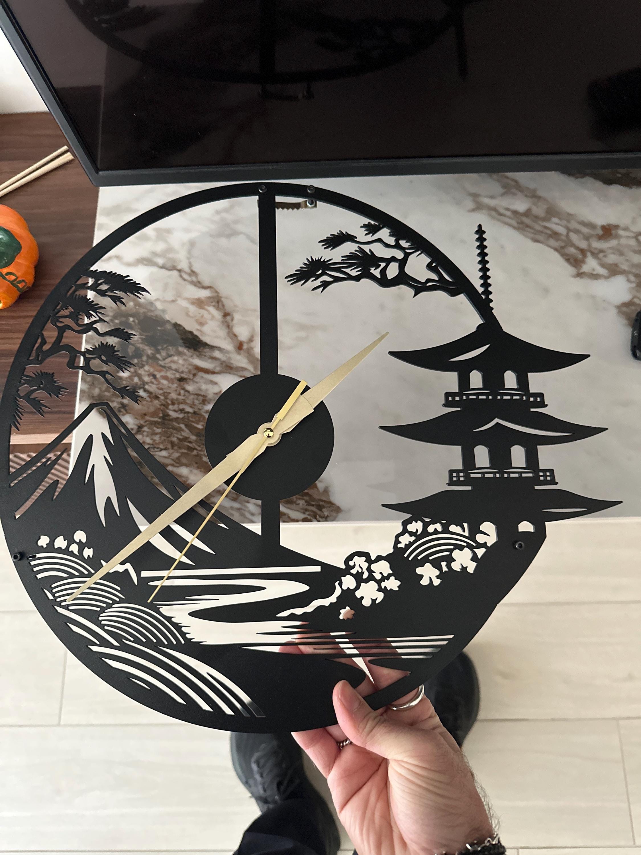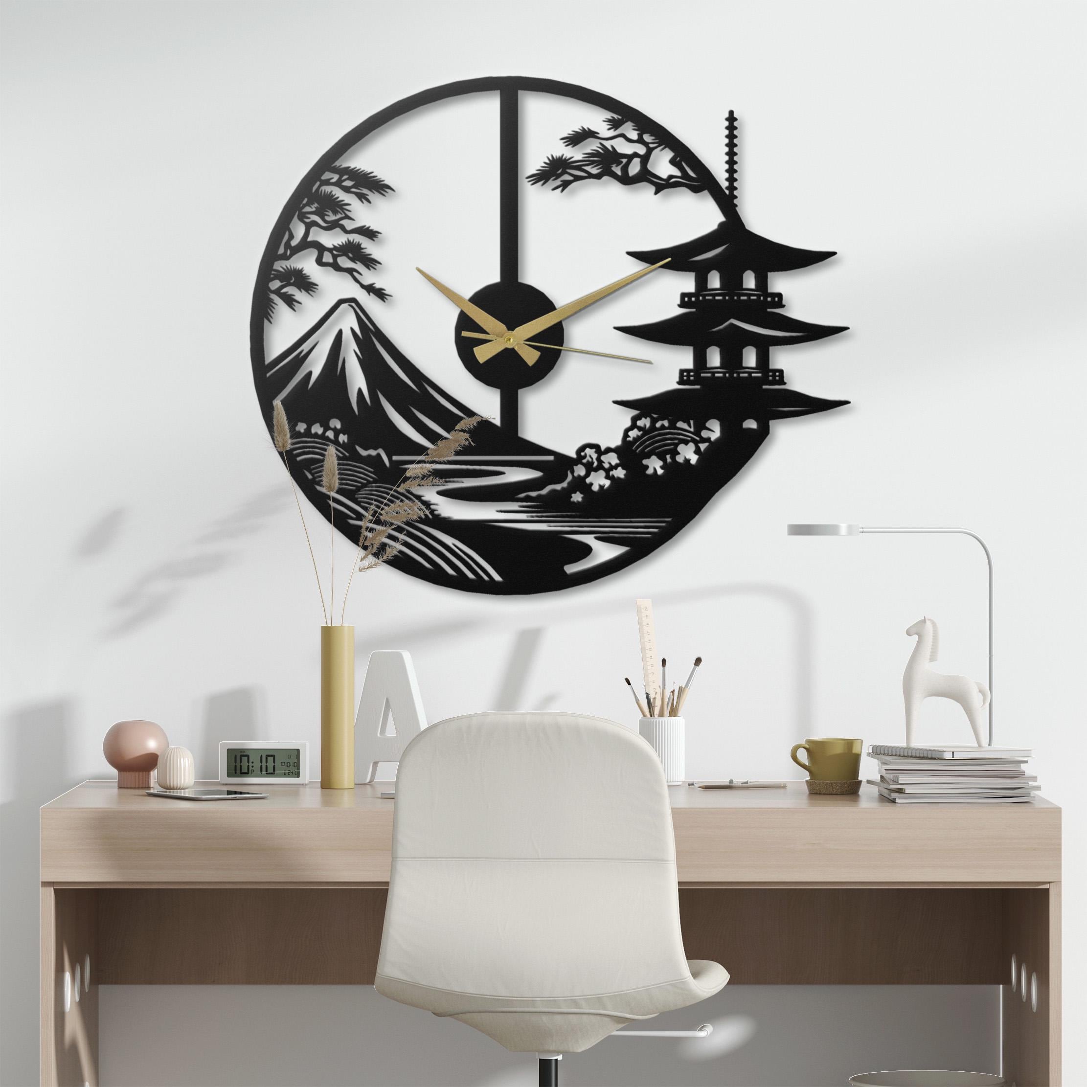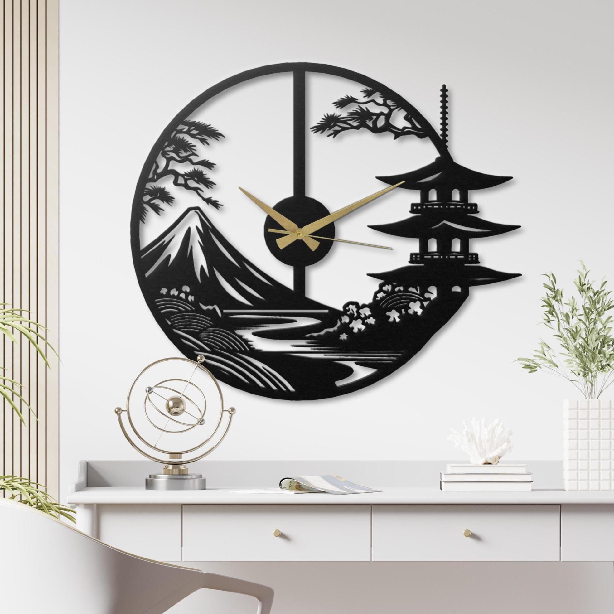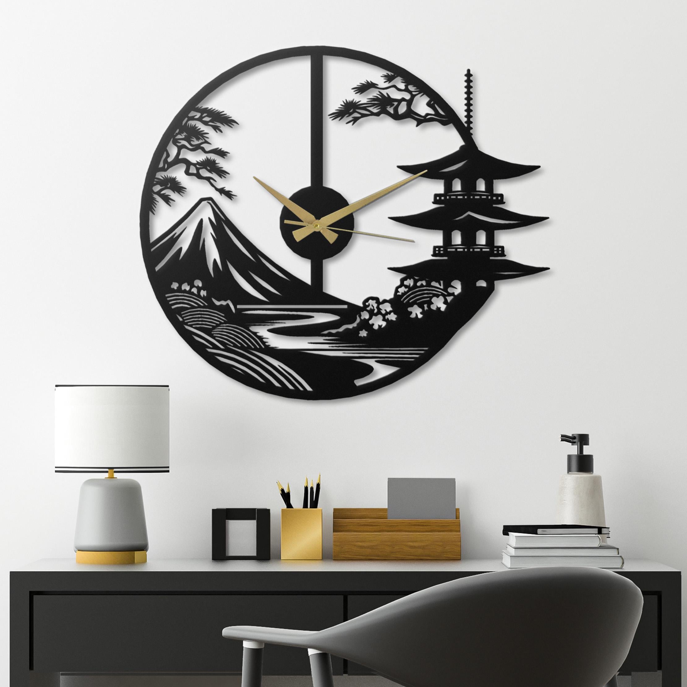 Japanese Landscape Metal Wall Clock - Zen Wall Decor