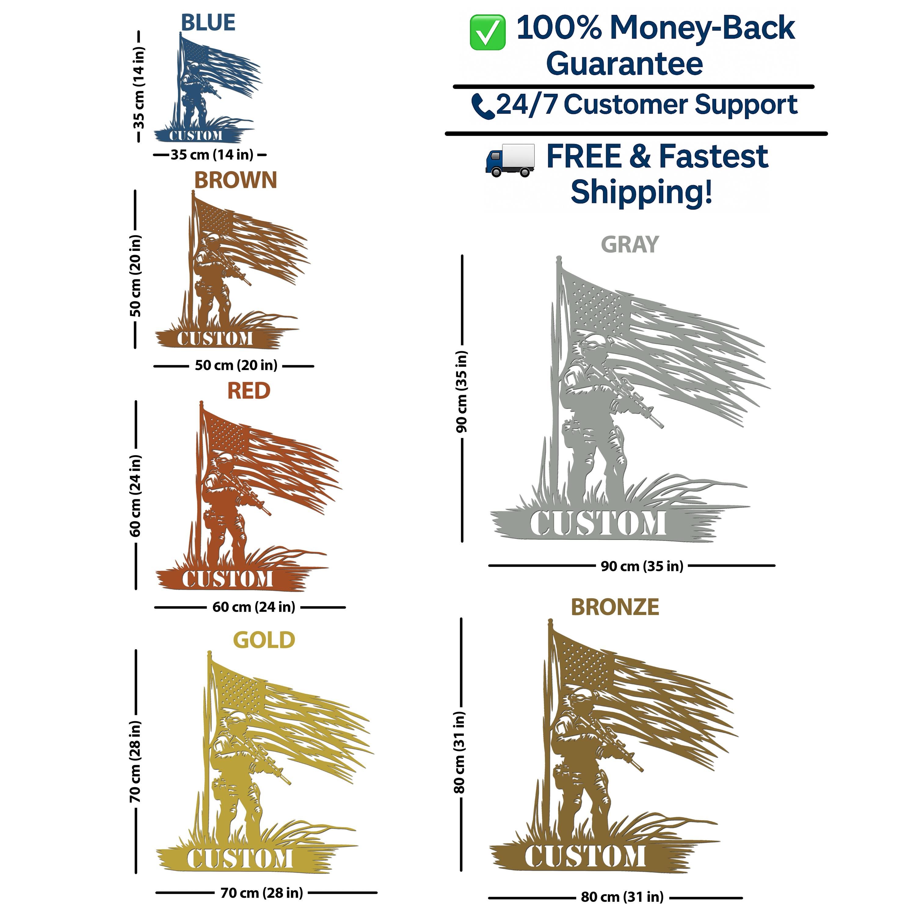 Patriotic Soldier Metal Wall Art with American Flag | Customizable Military Home Decor | Veteran Gift
