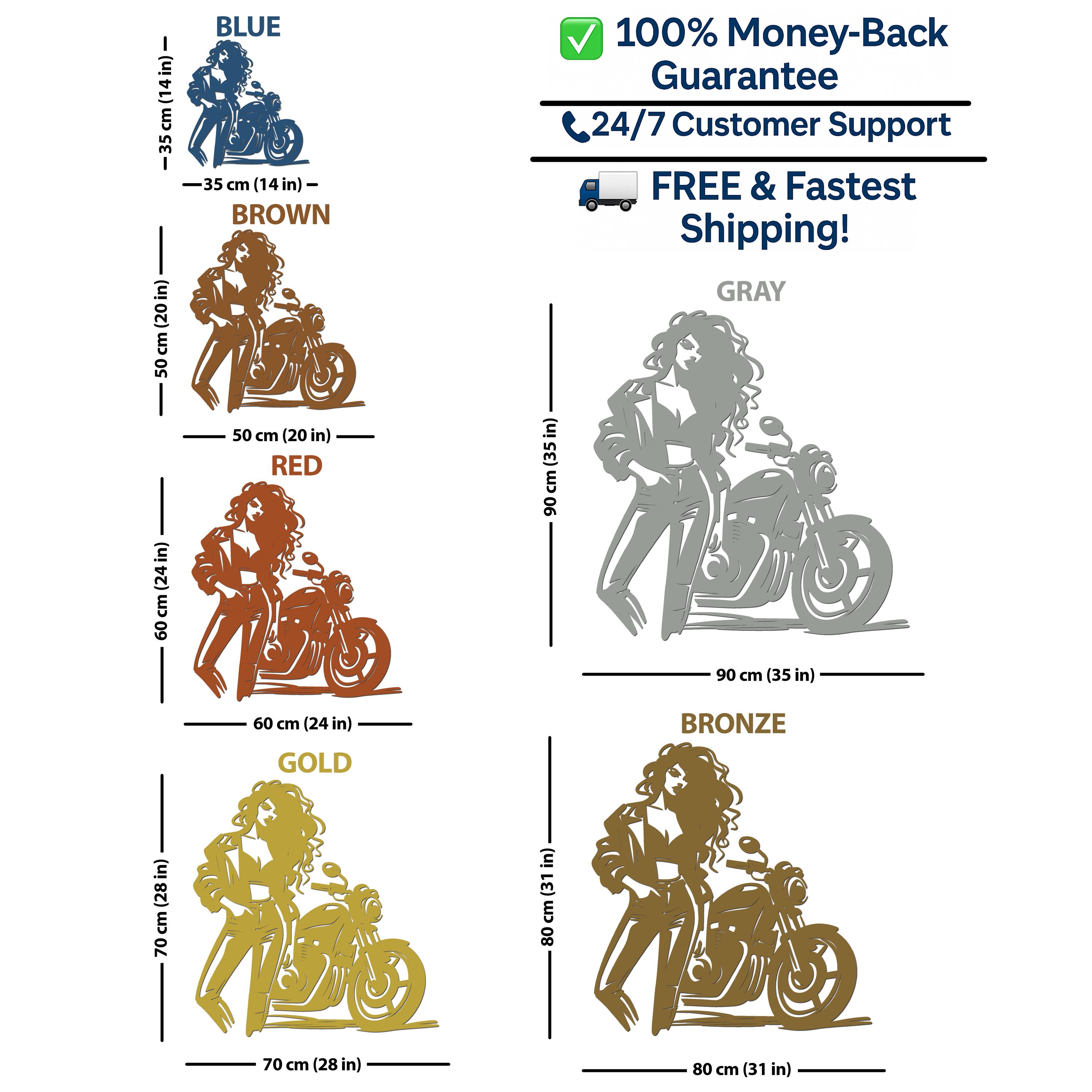Celebrate the spirit of adventure with this Biker Girl Metal Wall Art, featuring a confident female rider standing next to her motorcycle ποΈ. This bold and stylish metal sculpture adds a touch of rebellious elegance to any space, perfect for those who love the open road and edgy decor.