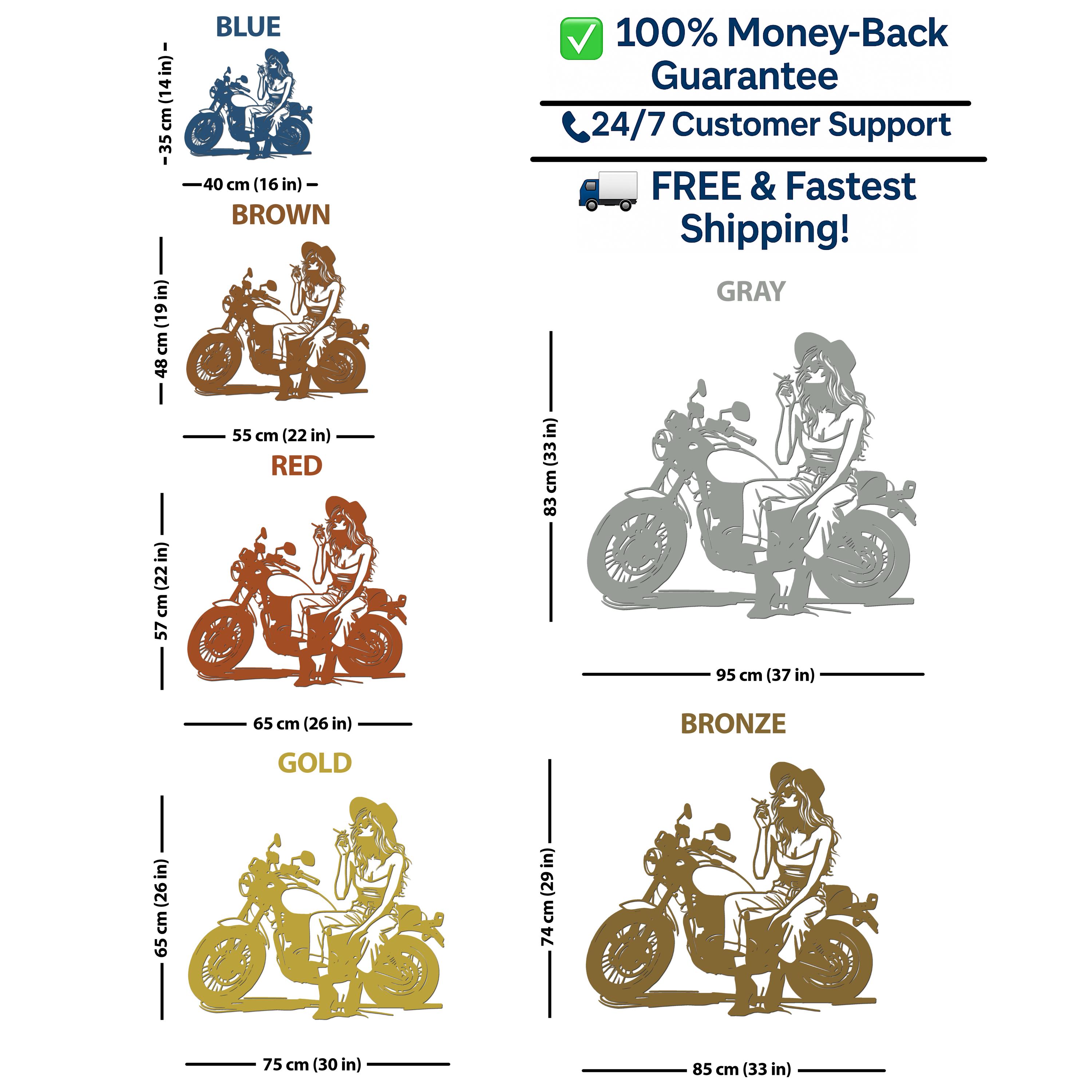 Biker Girl Metal Wall Art, Woman on Motorcycle Decor, Man Cave Sign, Garage Wall Art for Him, Custom Biker Gift, Sexy Bar & Game Room Decor