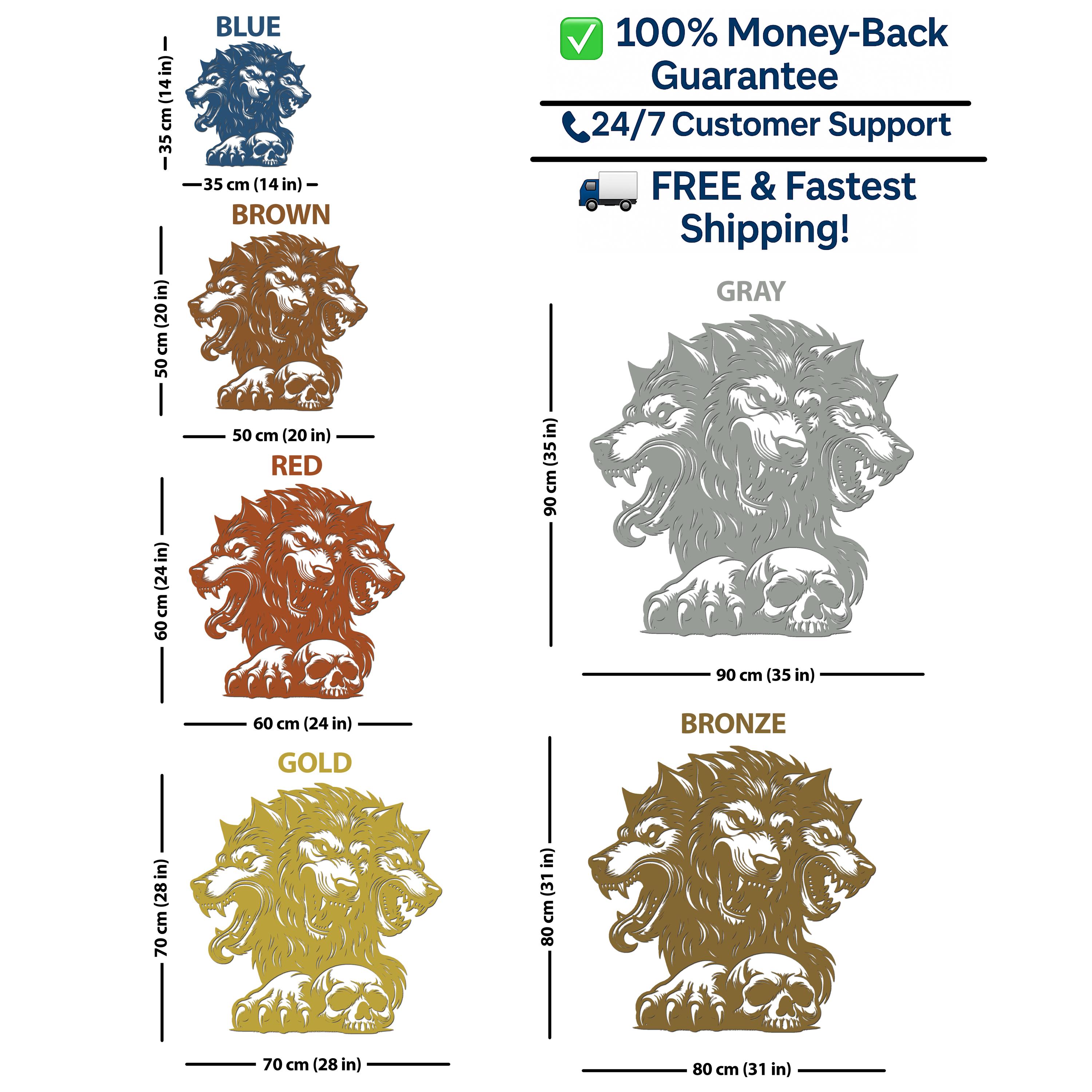 Fierce Cerberus Metal Wall Art - Three-Headed Mythical Beast Decor