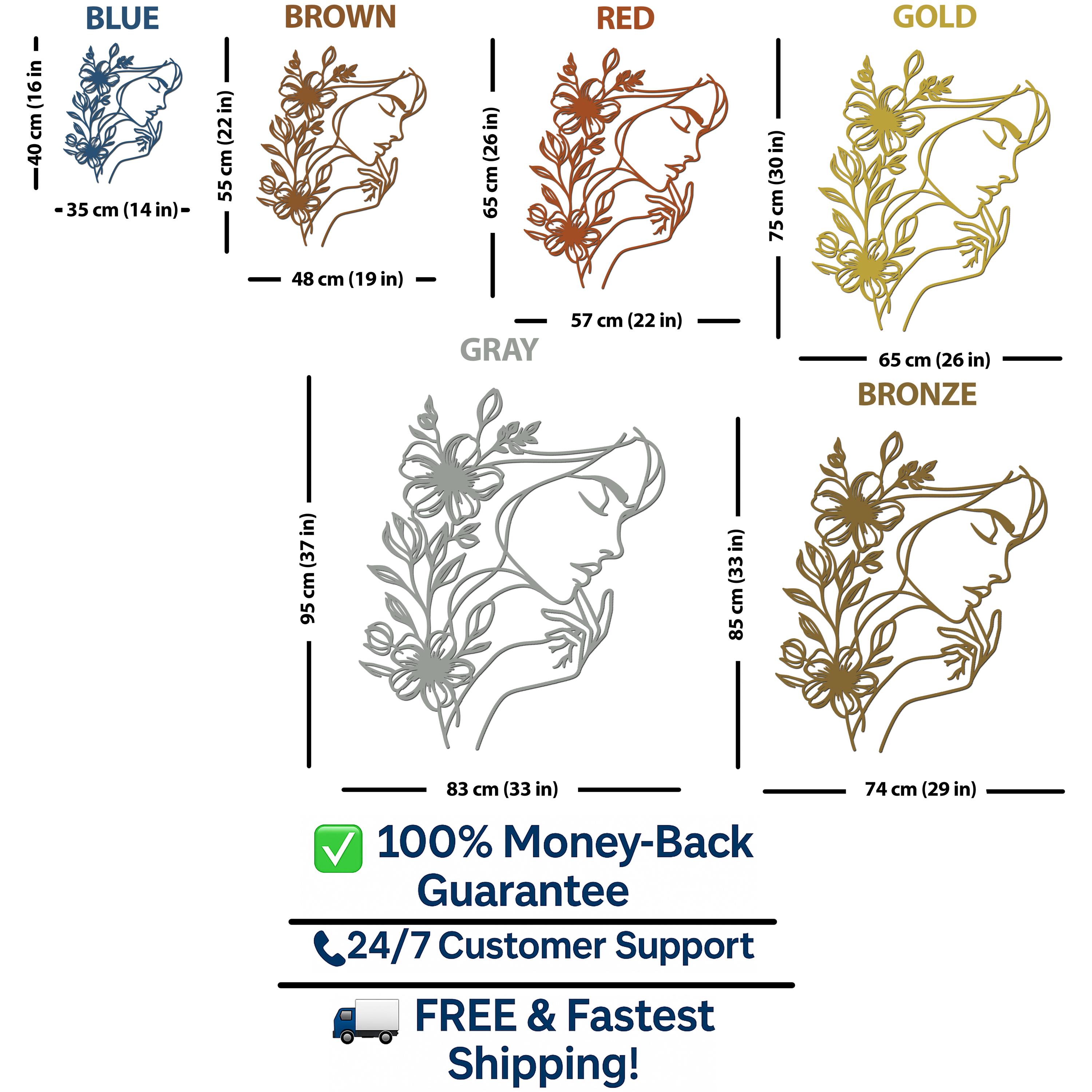 Elegant Woman & Floral Line Art - Minimalist Metal Wall Art for Home Décor