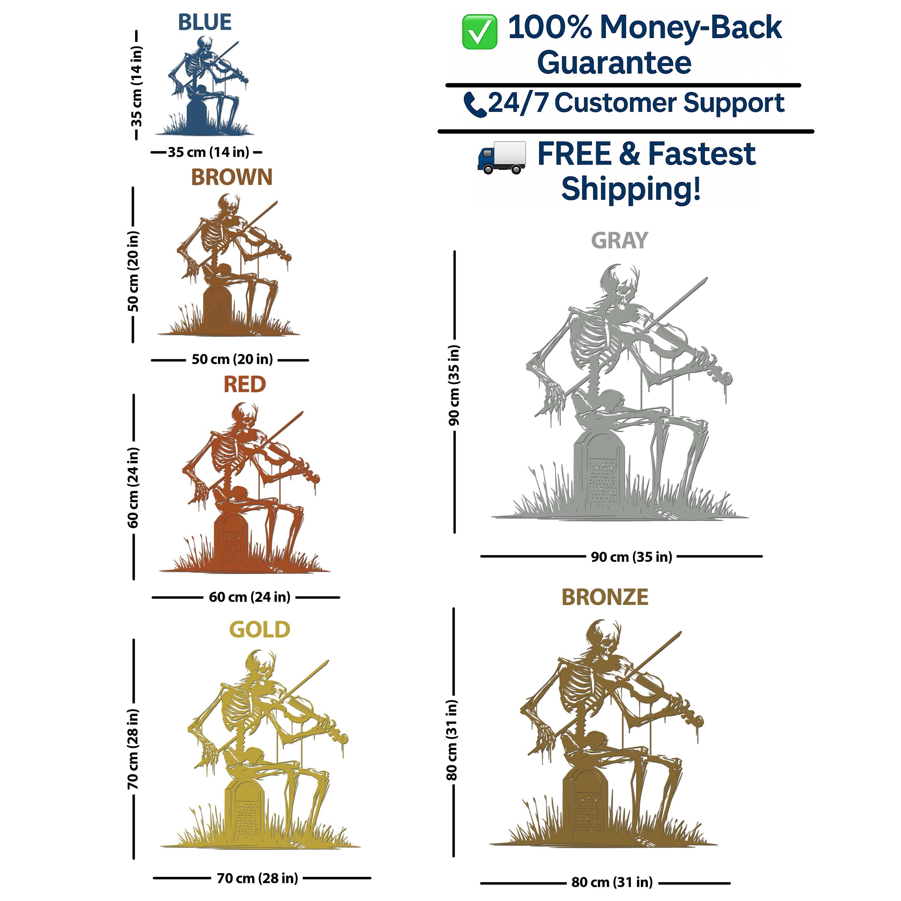 Skeleton Violinist Metal Wall Art - Gothic Skeleton Decor for Halloween