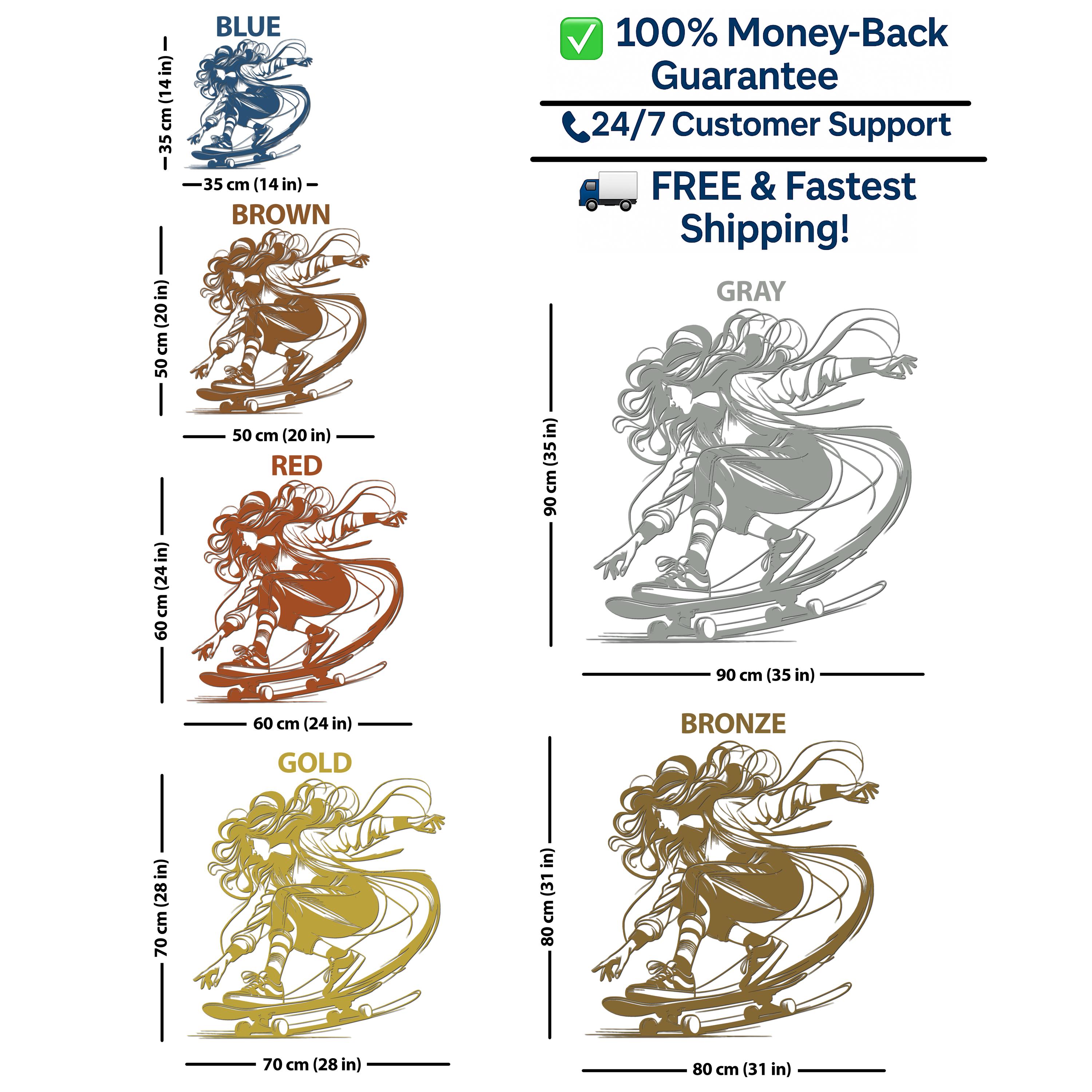 Enhance your space with this dynamic and modern skater girl metal wall art, perfect for adding a cool, energetic vibe to any room. This unique piece of metal artwork is crafted with precision and designed to capture the thrill of skateboarding in an artistic silhouette. Ideal for teens, skateboarding enthusiasts, or anyone looking to bring a trendy edge to their decor. Whether itโs for your living room, bedroom, or even a gift for a loved one, this artwork is sure to be a standout!