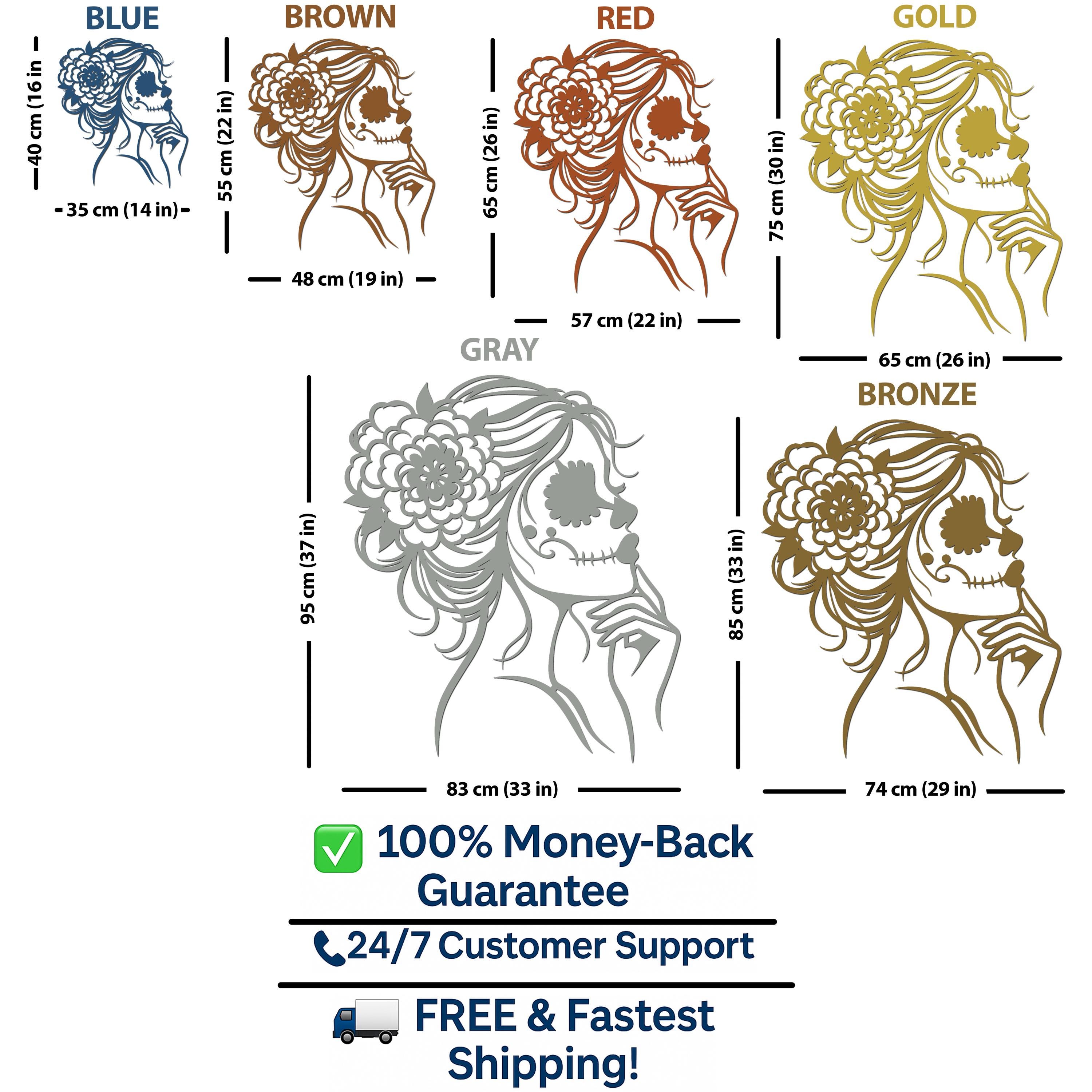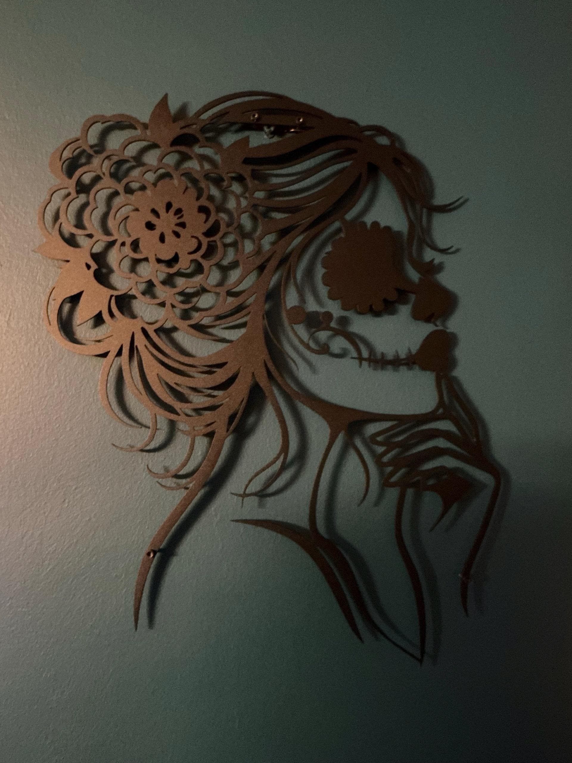 Bring a touch of mystery and elegance to your home with this beautiful metal art featuring a Sugar Skull woman, perfect for celebrating Dia de los Muertos or simply adding a boho-chic vibe to your decor! π€