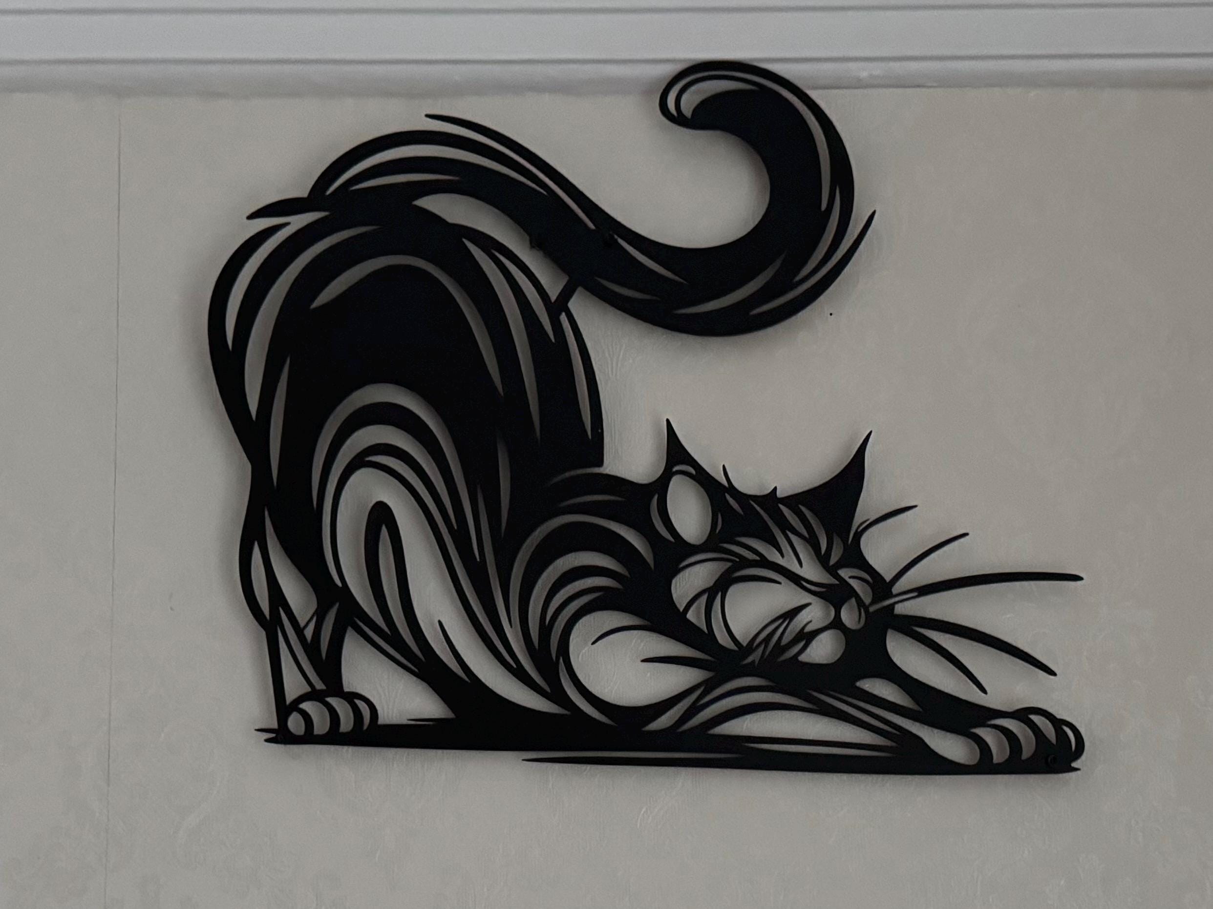 Stretching Cat Metal Wall Art: Playful Feline Decor
