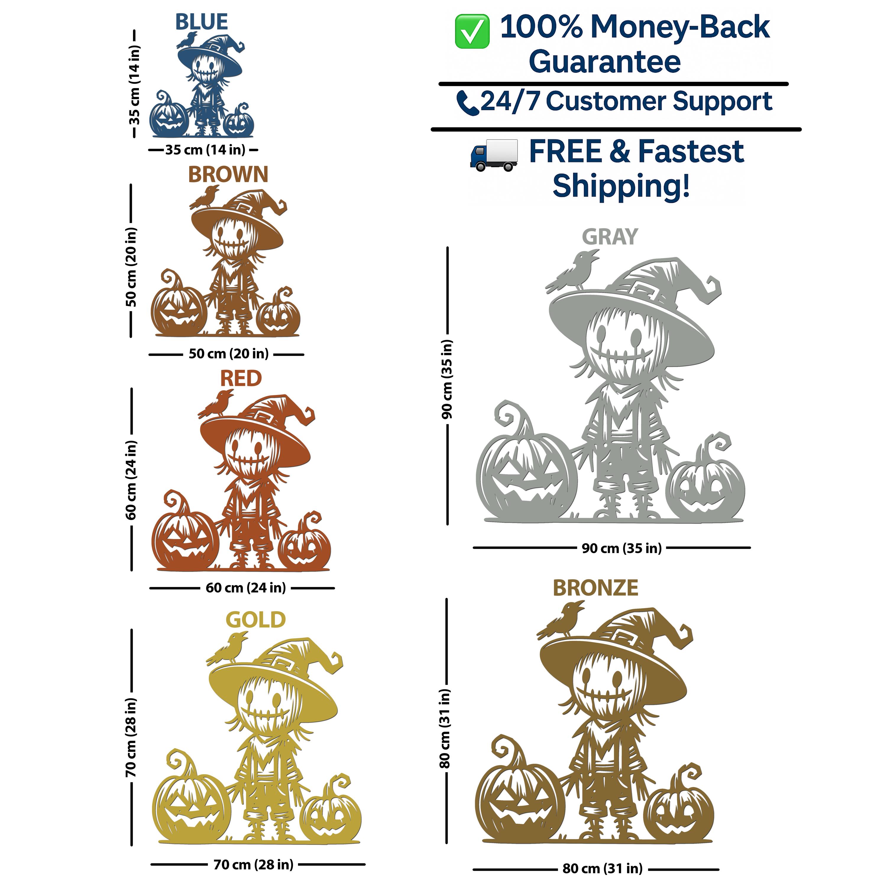 π Add a touch of Halloween magic to your home with this charming Scarecrow Metal Wall Art! Featuring a cute scarecrow, two smiling jack-o'-lanterns, and a perched crow, this piece is the perfect addition to your fall and Halloween dΓ©cor. Itβs a great way to bring a playful yet spooky vibe to your space, whether indoors or outdoors.