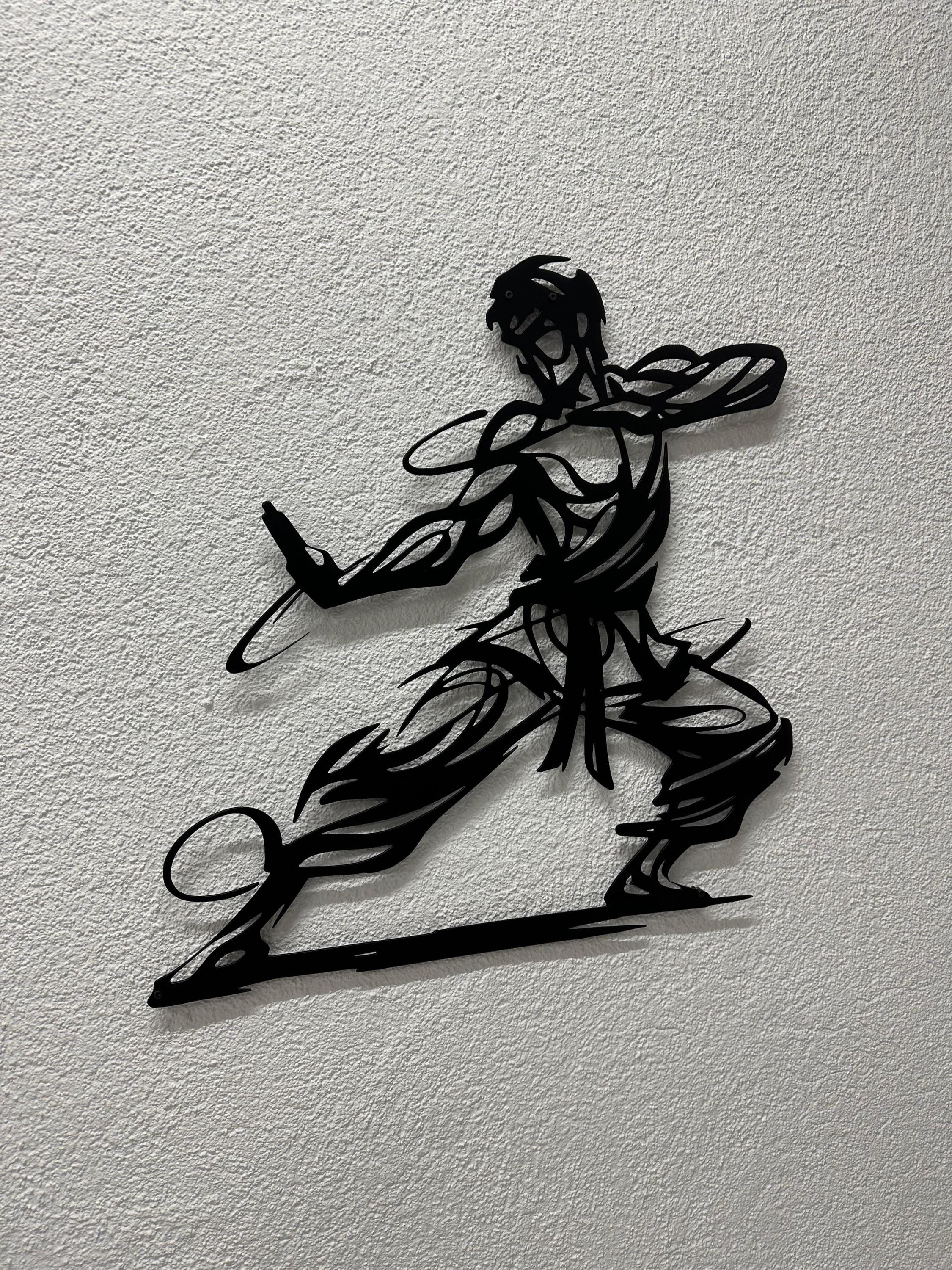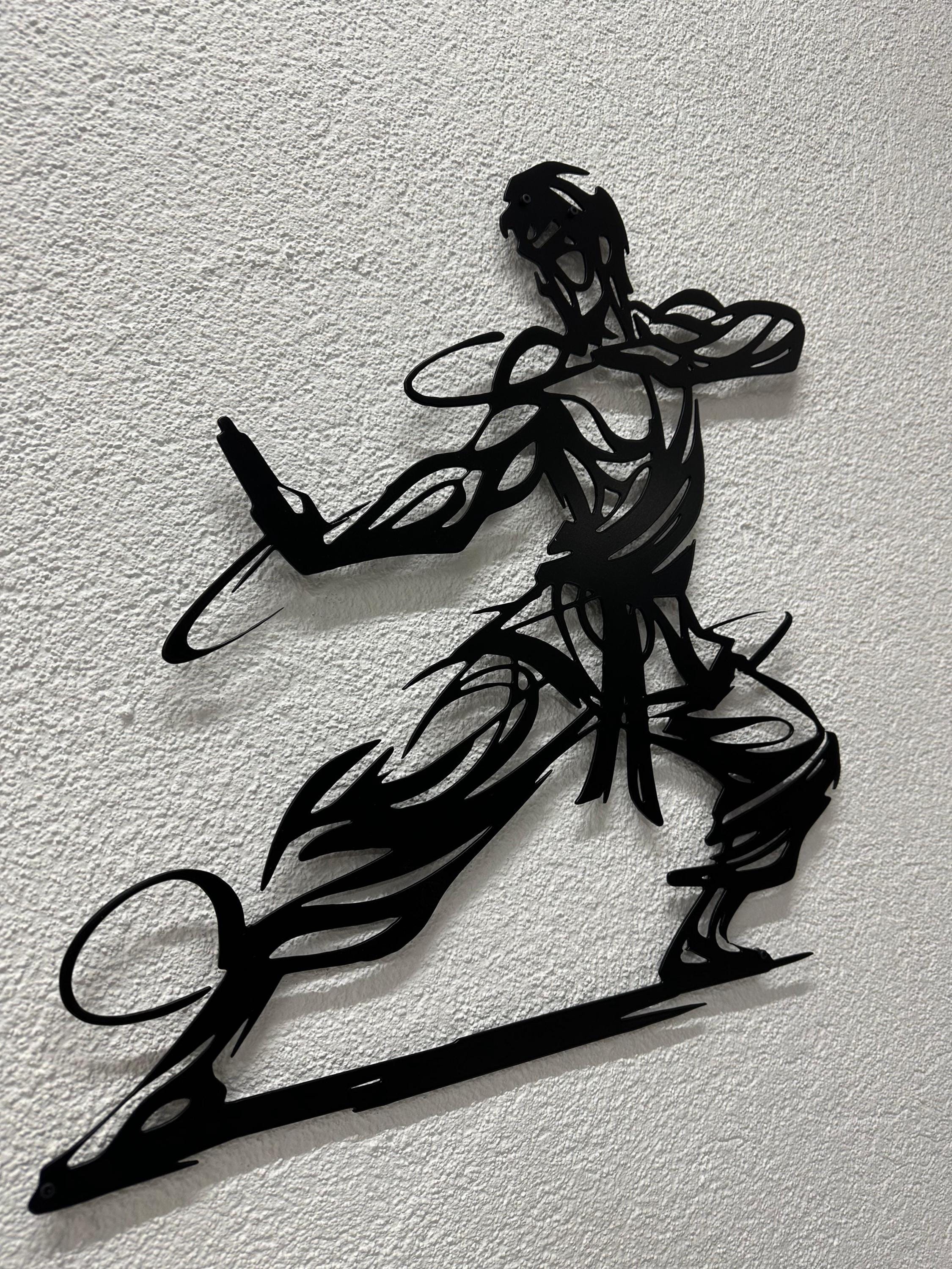 Kung Fu Fighter Metal Wall Art: Martial Arts Home Gym Wall Decor