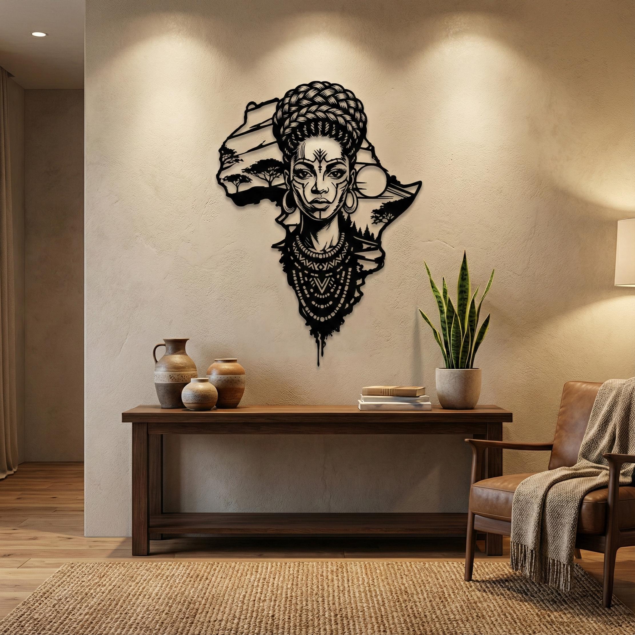 Key Search Trends: "African Map Wall Art", "Afrocentric Decor", "Black Woman Art", "Motherland Sign".