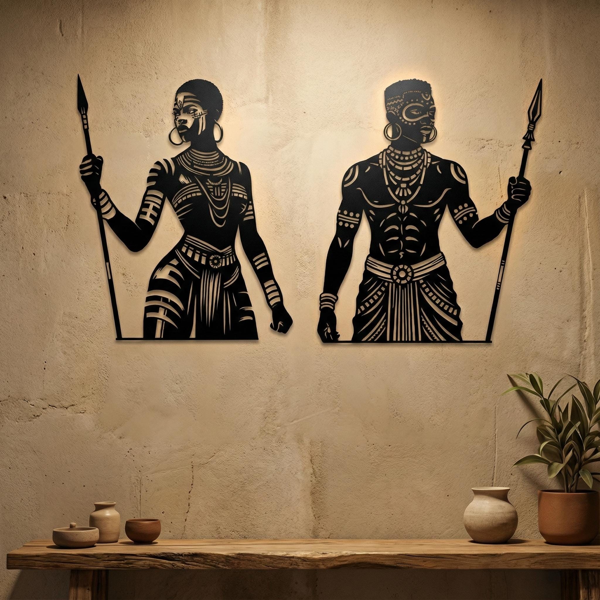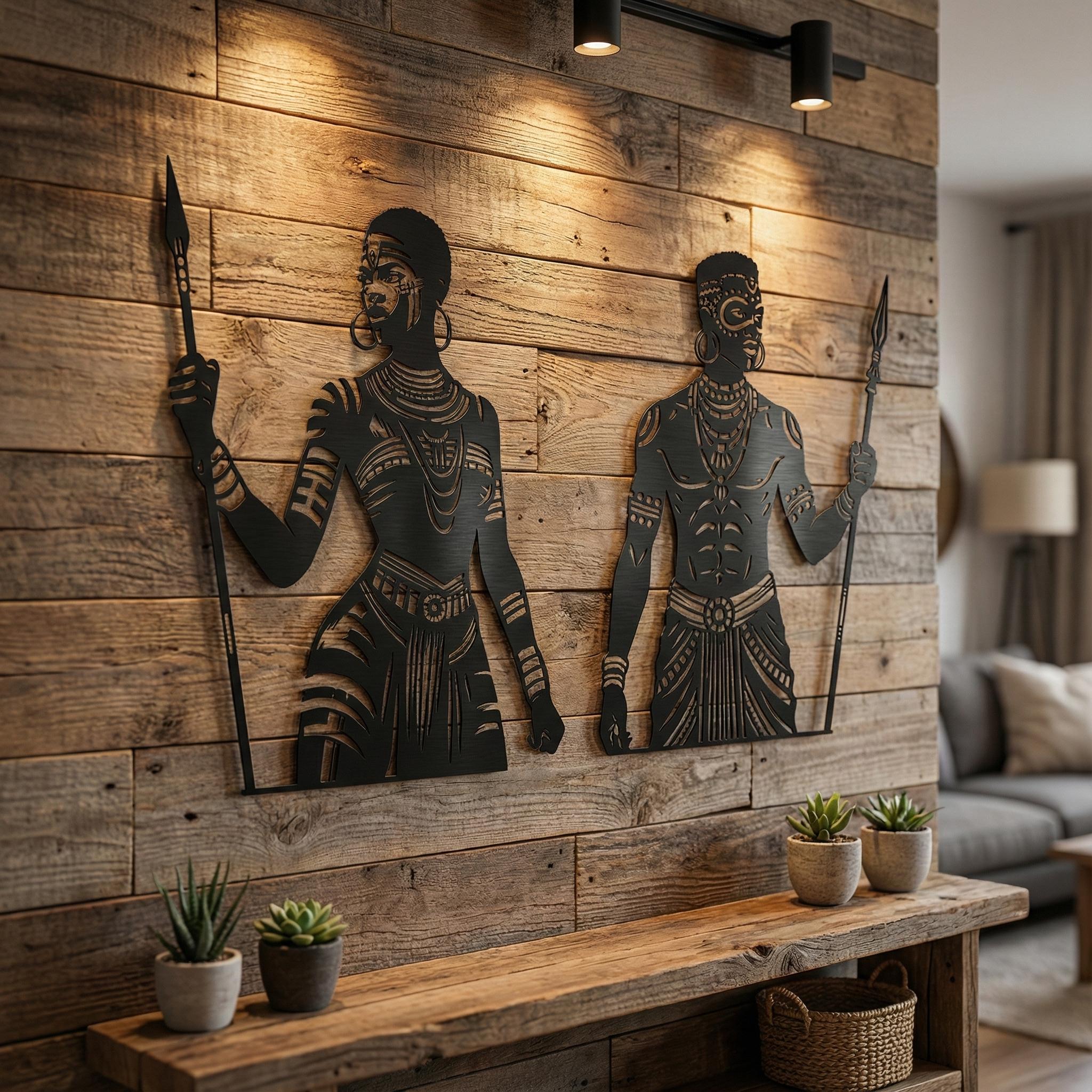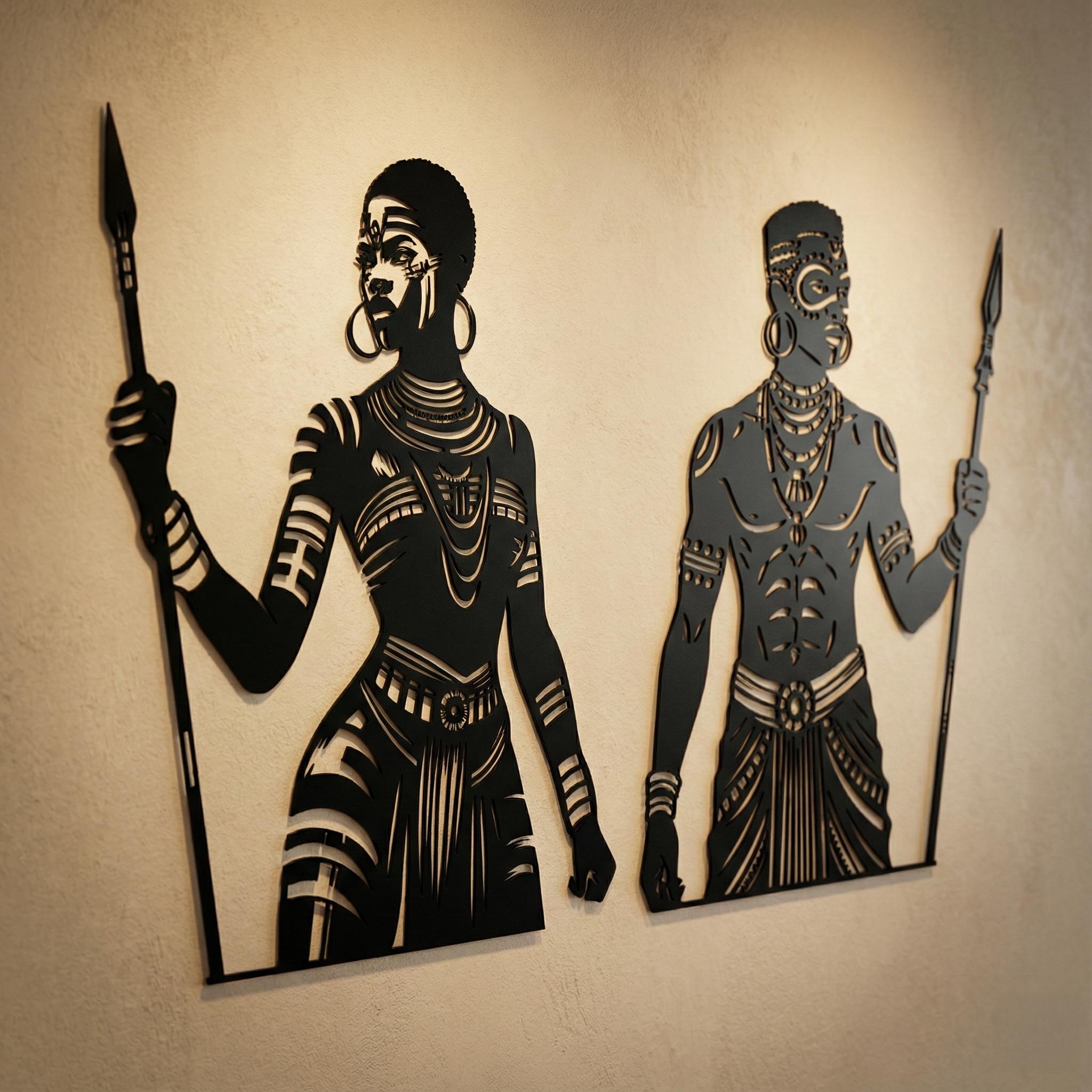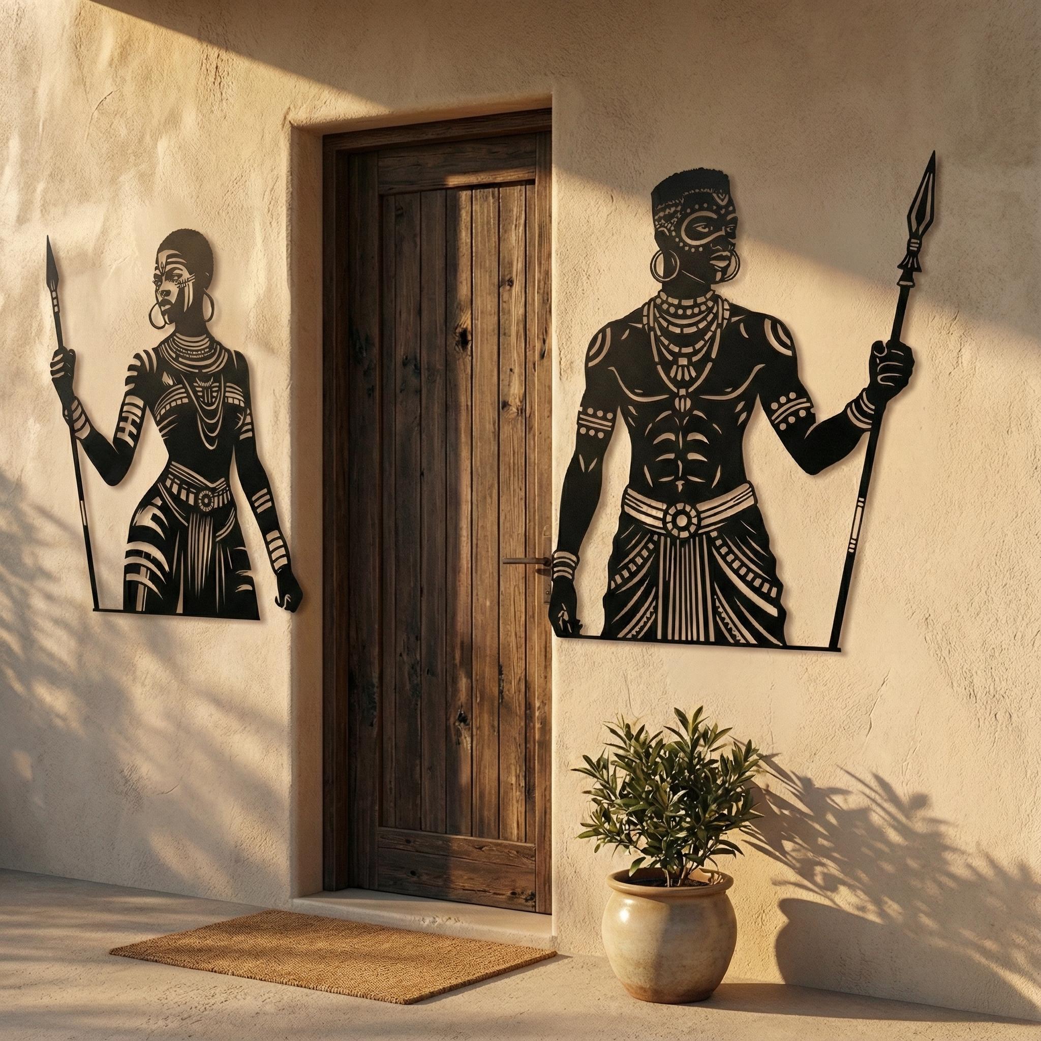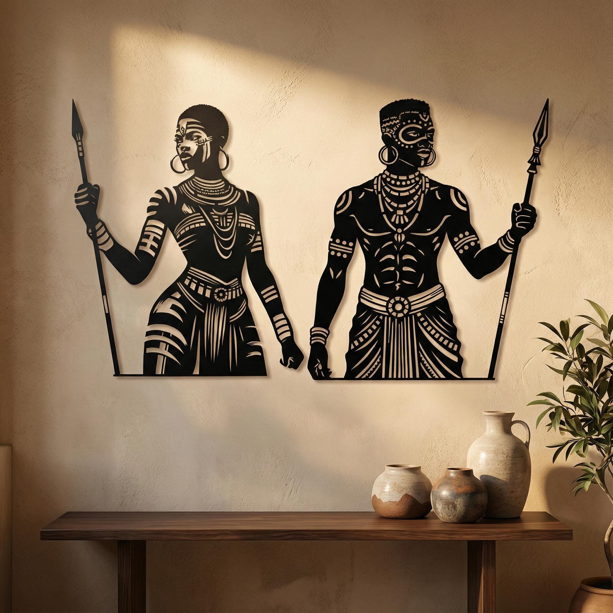 African Warrior Woman Metal Wall Art | Tribal Home Decor