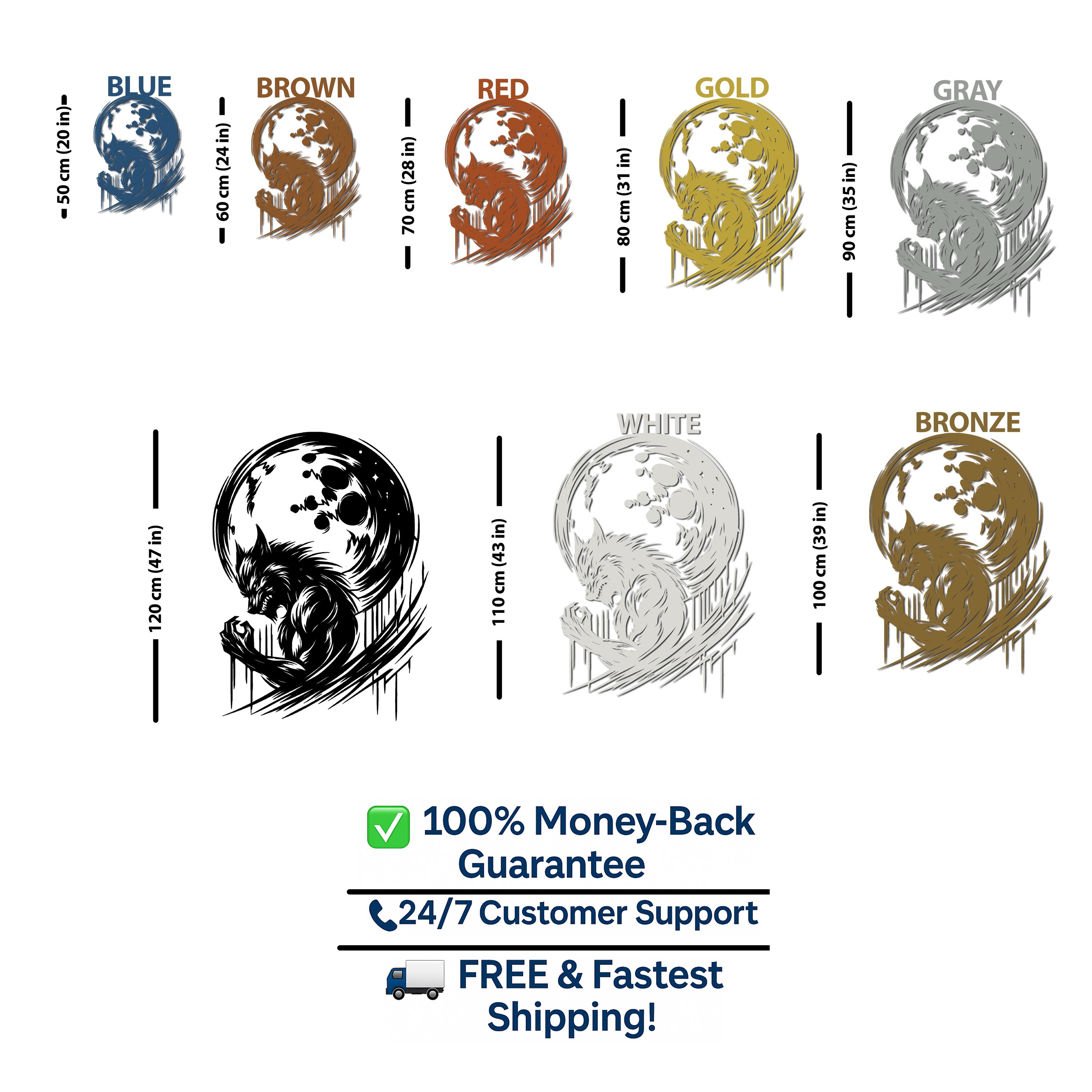 Bring the fierce and mystical energy of the werewolf into your home with this bold metal wall art, perfect for creating a thrilling atmosphere! π