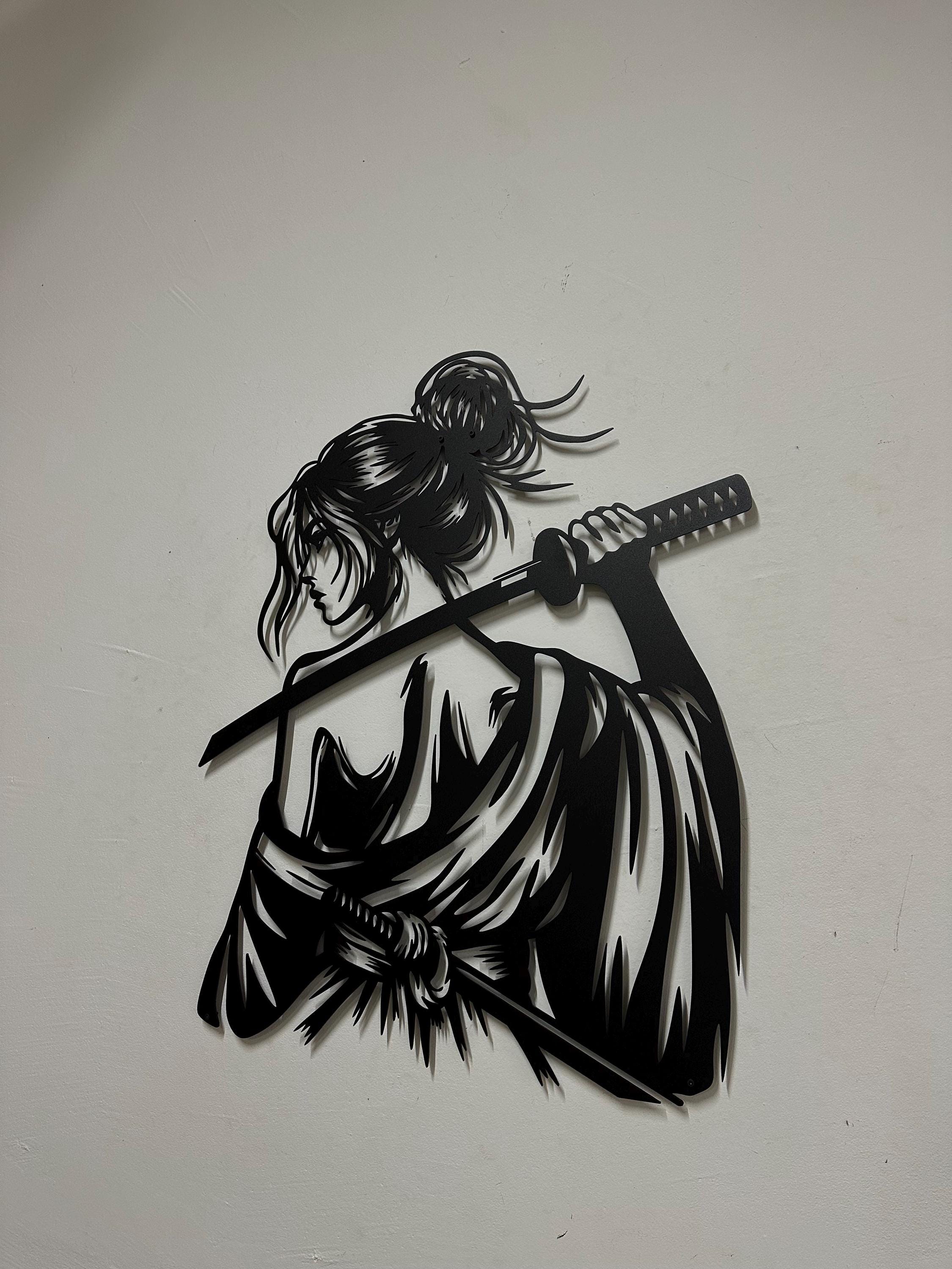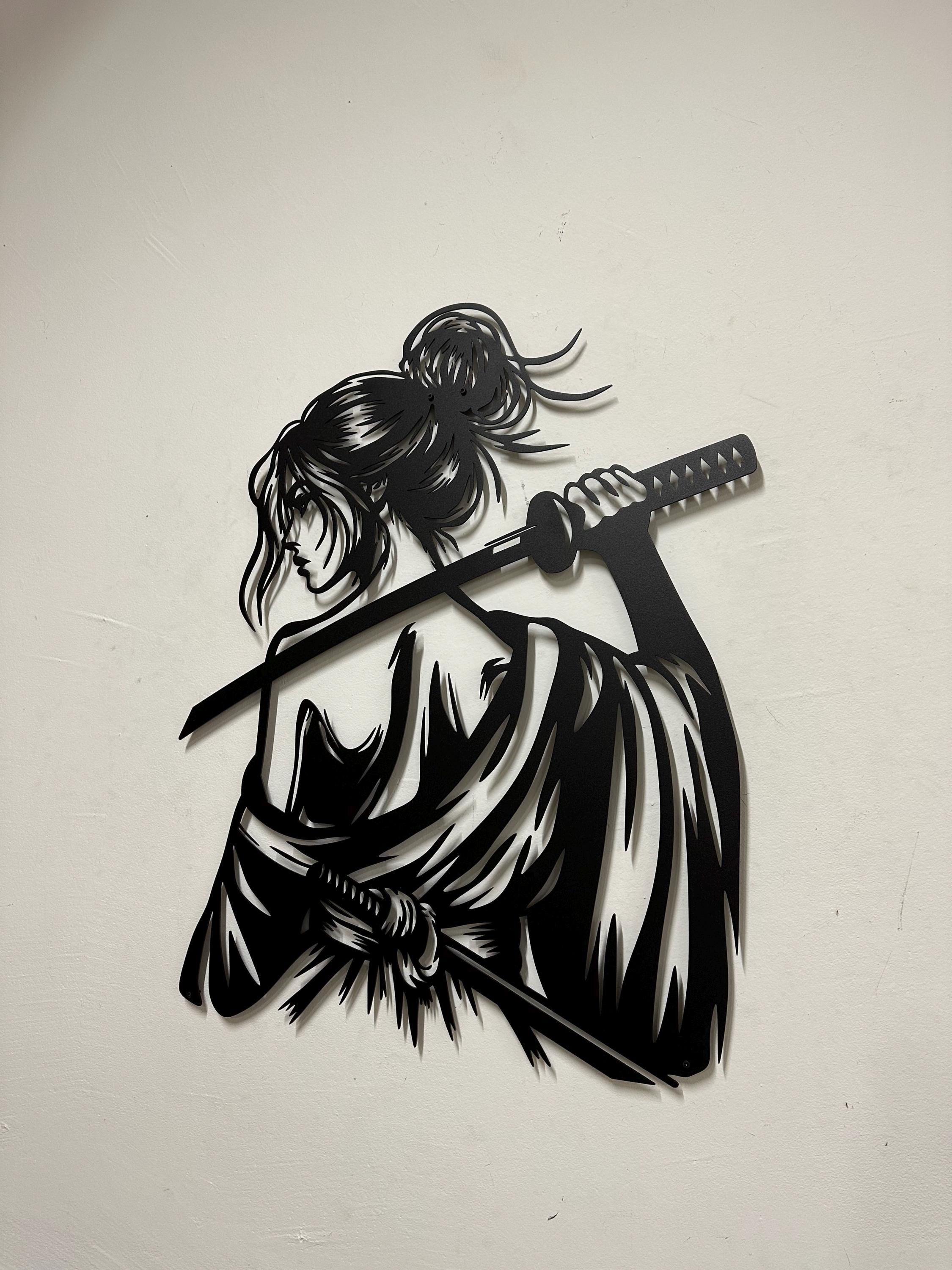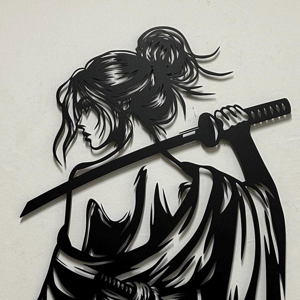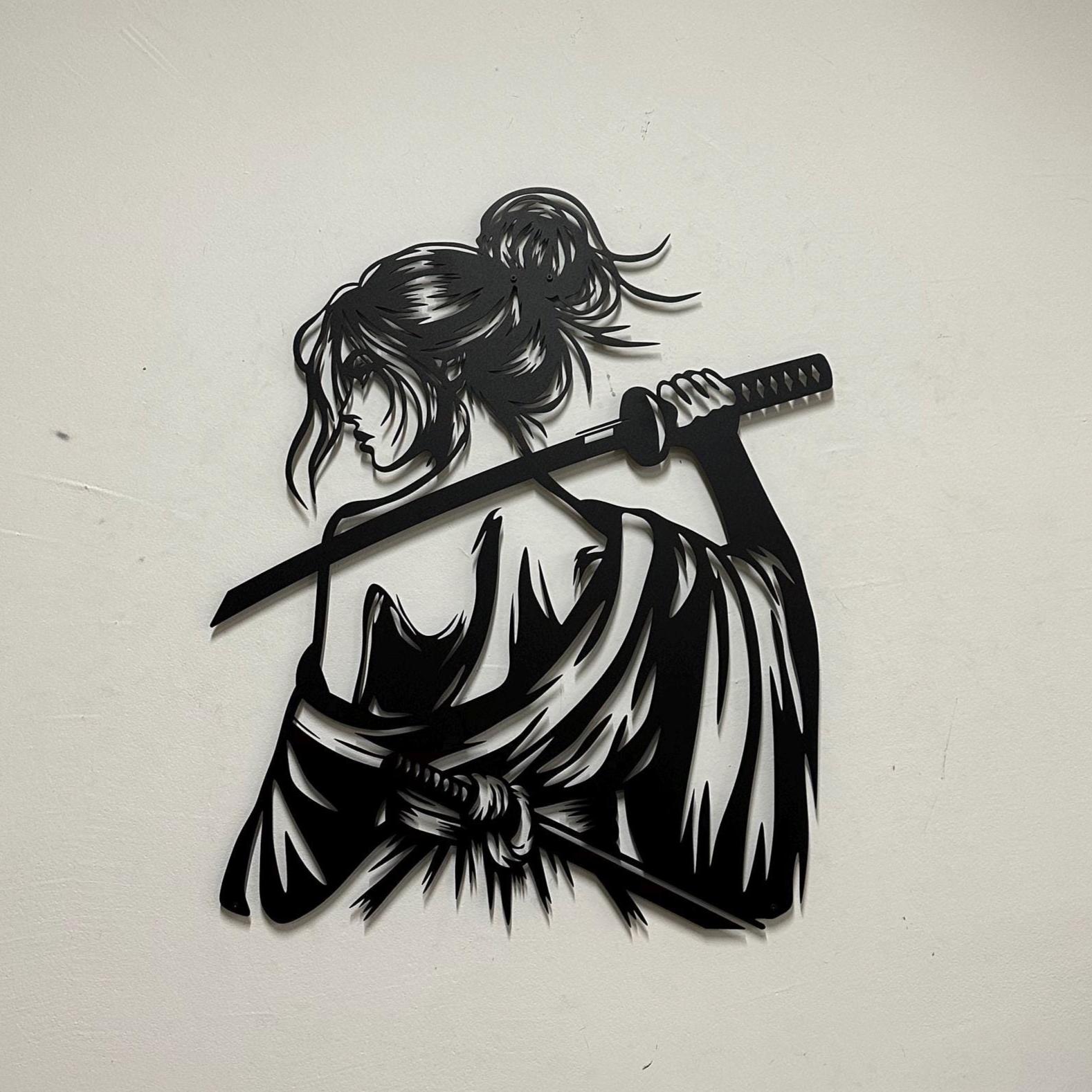 Samurai Woman Metal Wall Art: Japanese Katana Home Decor