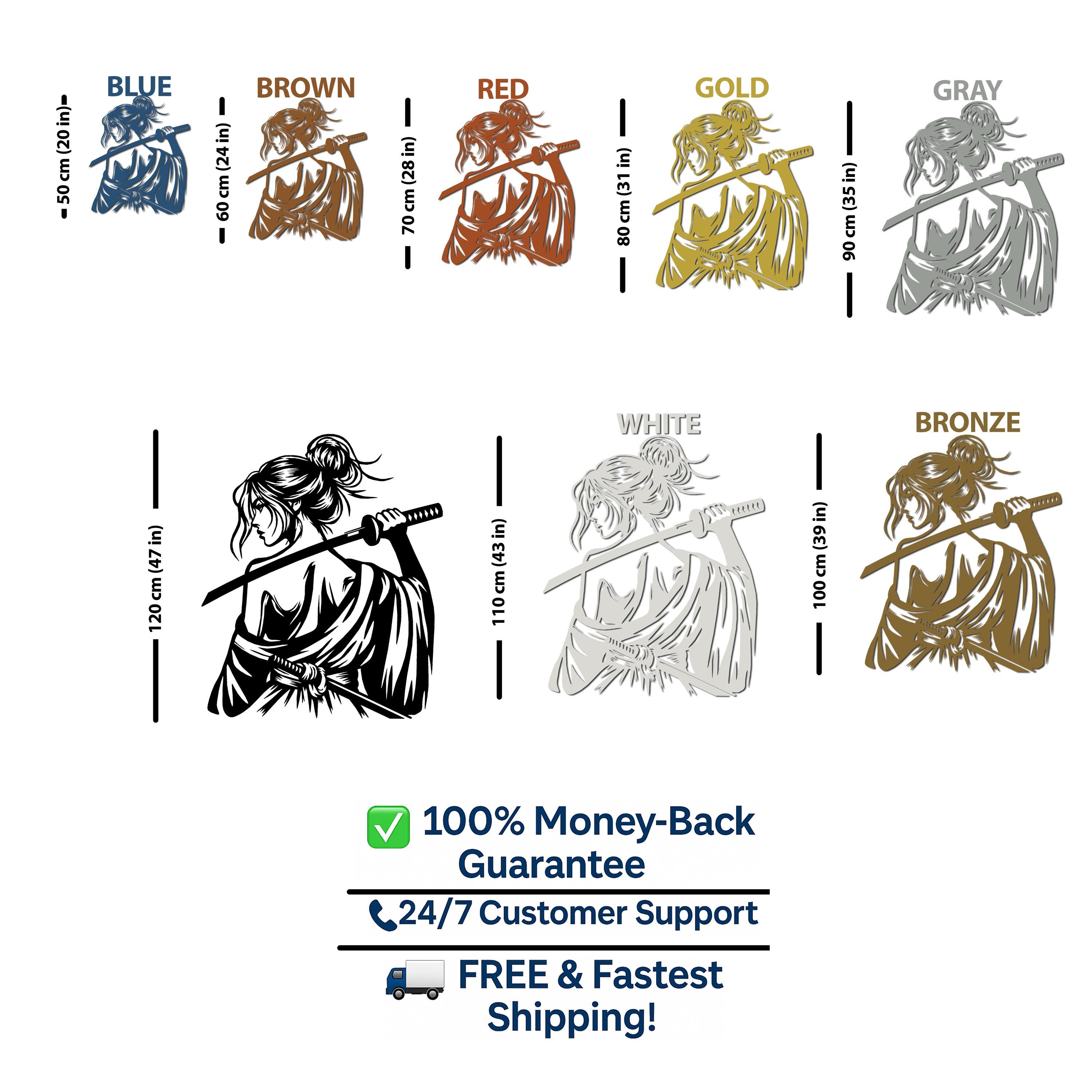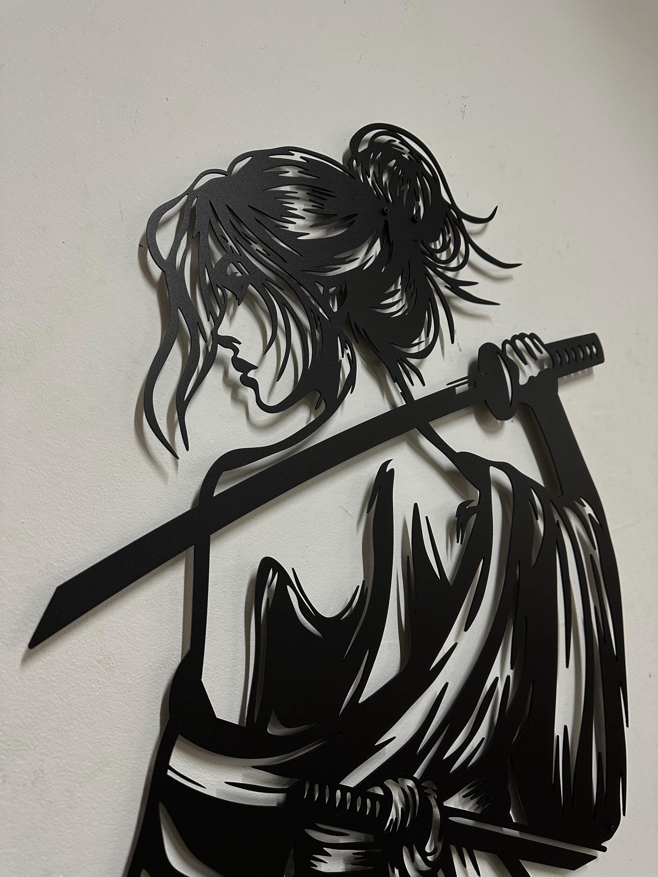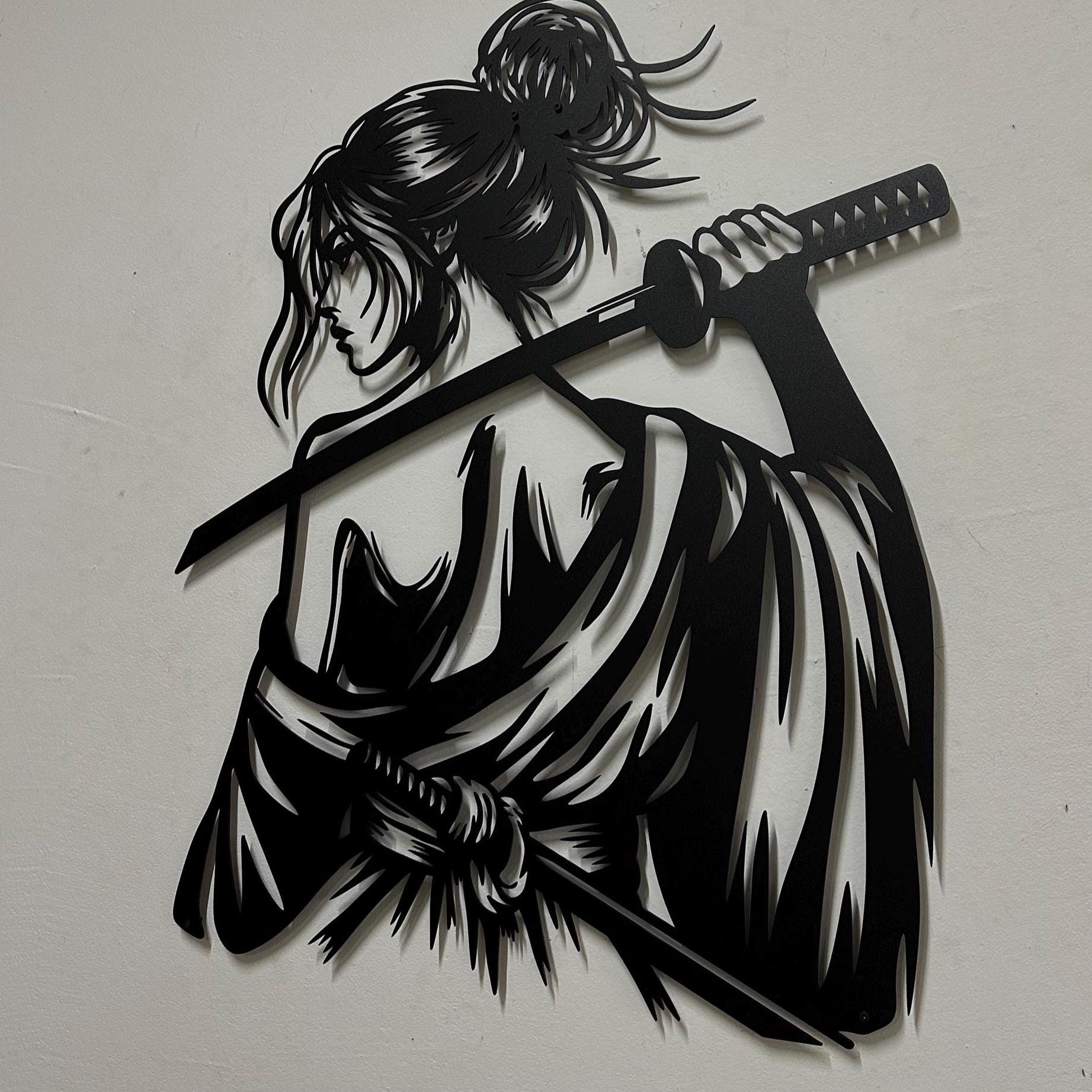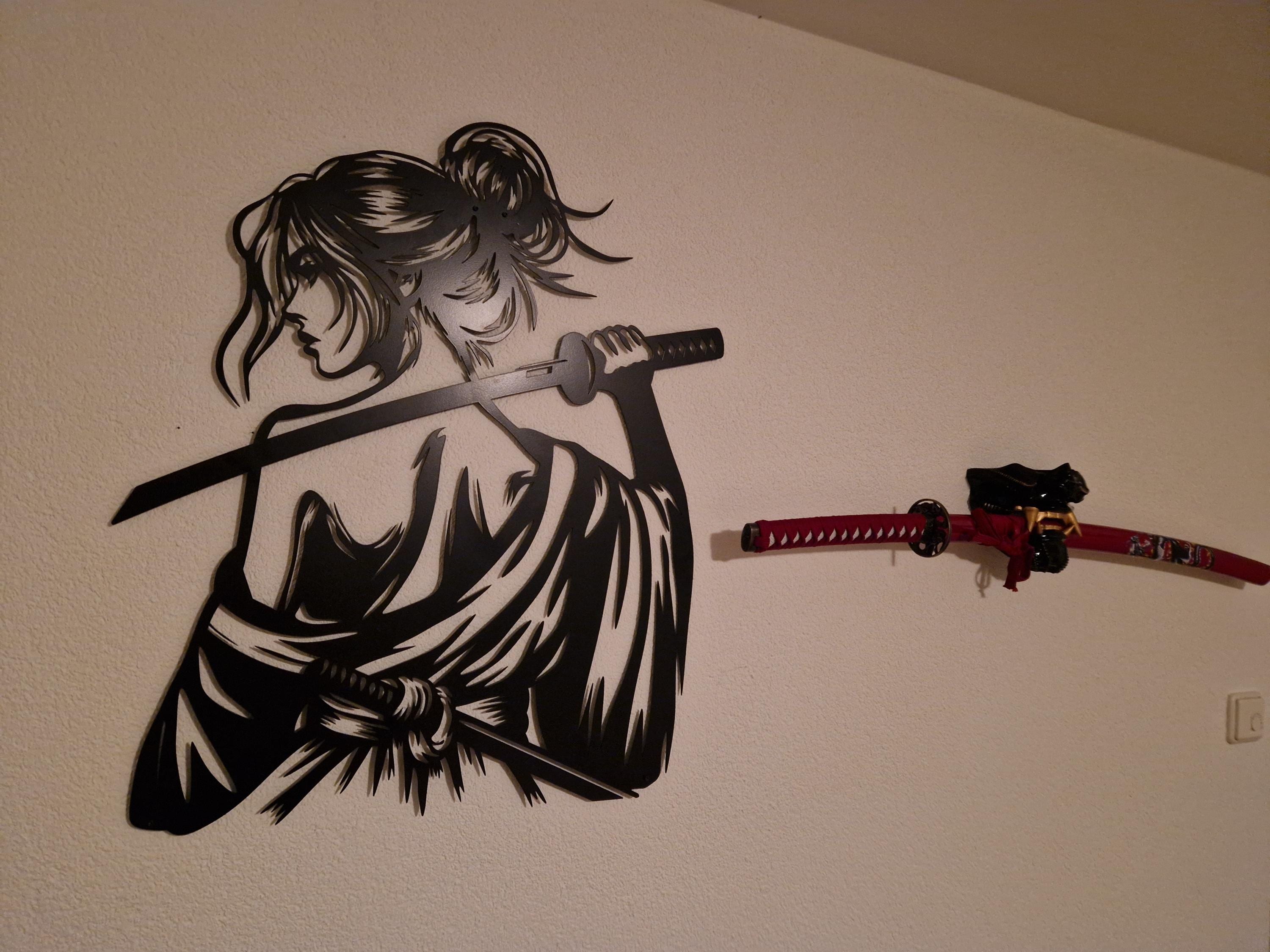 Samurai Woman Metal Wall Art: Japanese Katana Home Decor